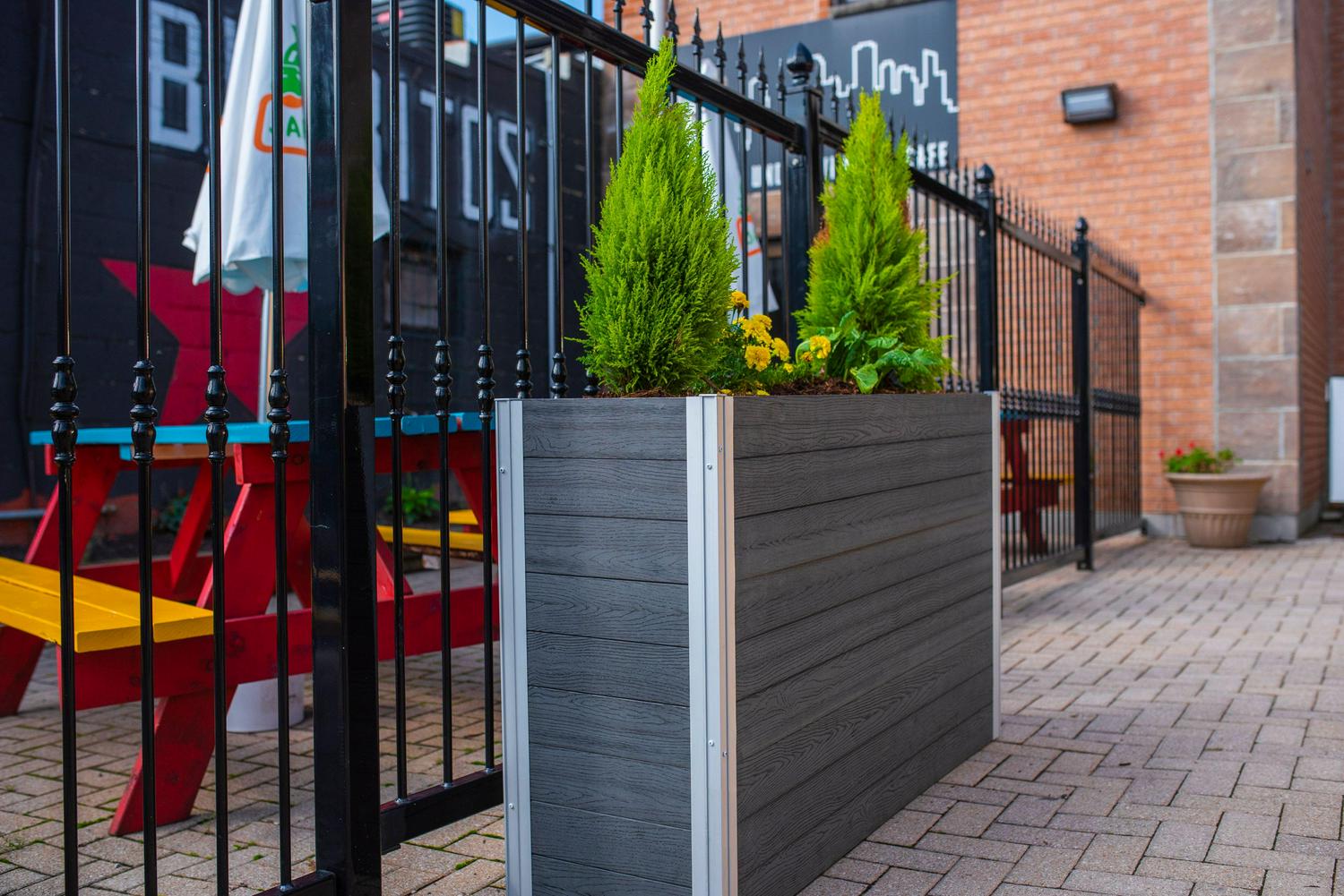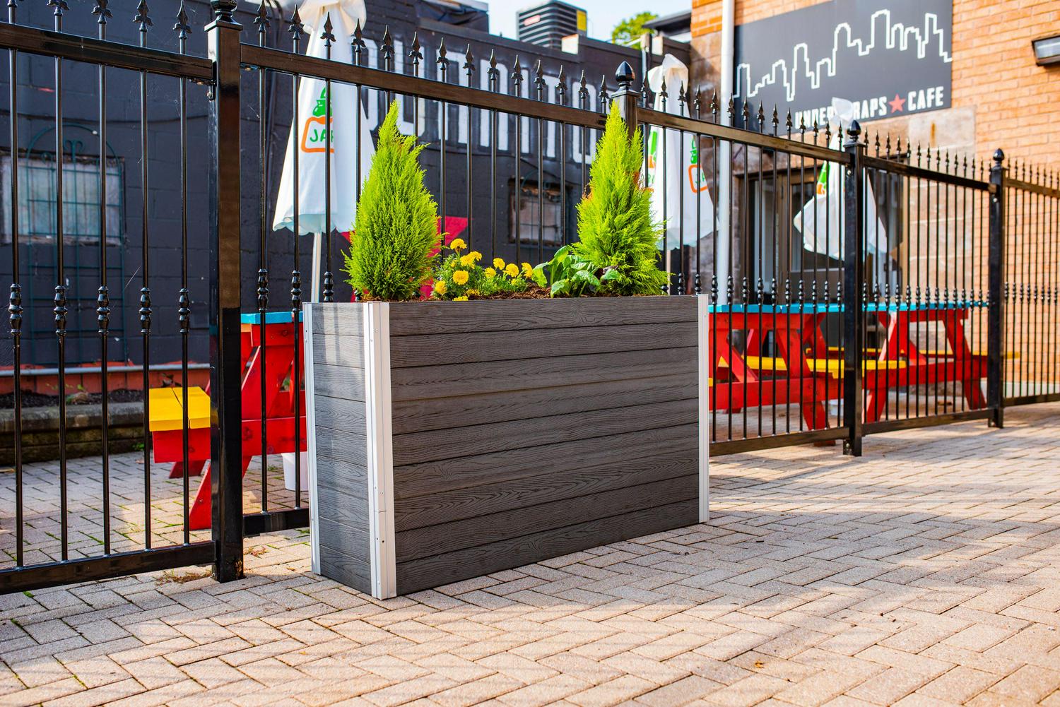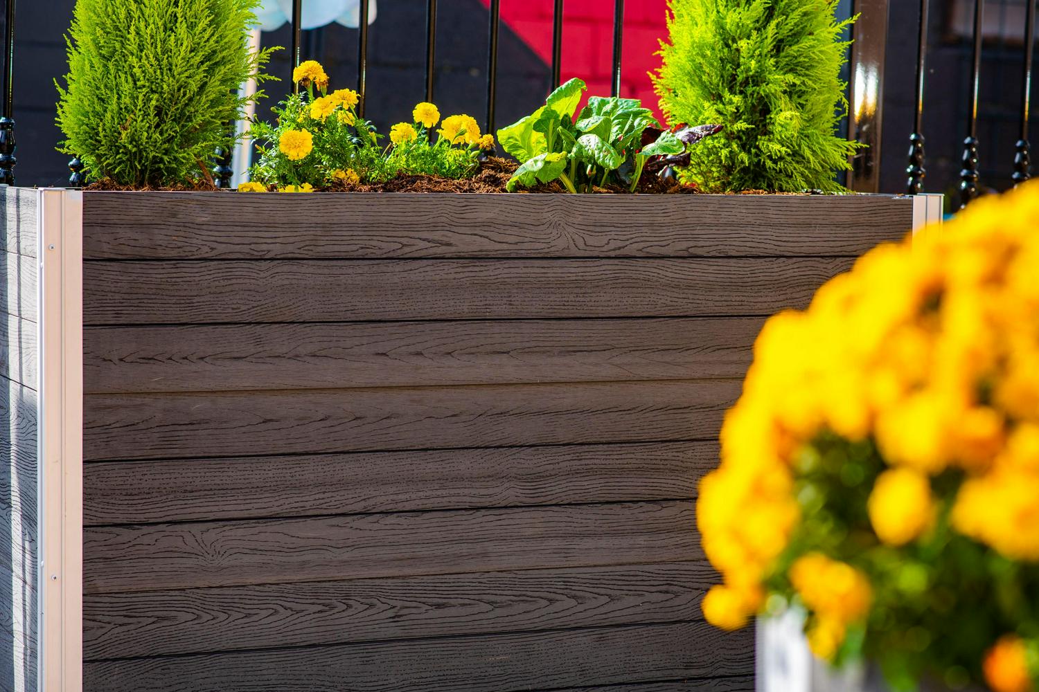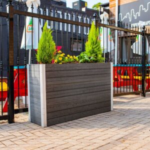 Distinctive design and effortless functionality, the Urbana Large Parklette Planter delivers a sophisticated aesthetic and dynamic presence to any home, business or outdoor space. Ideal for growing herbs or displaying decorative plants and flowers. Crafted from an embossed PVC material that offers the natural look of wood, but with the lightweight durability of vinyl. It s BPA and phthalate free, ensuring healthy, safe food production and a long product lifespan. Boards slide into posts easily and conveniently and assembly can be completed quickly, with minimal tools and labor. Our innovative posts make for perfectly modular planters, allowing you to design and configure your own unique layout and size.