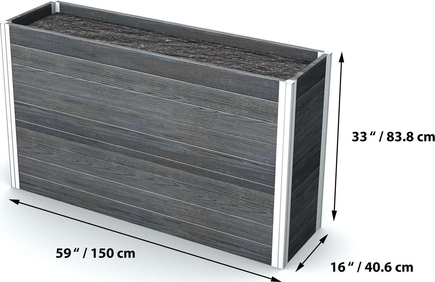 Vita Urbana 16 x59 x33 Vinyl Large Parklette Planter, Slate Gray, VT17613