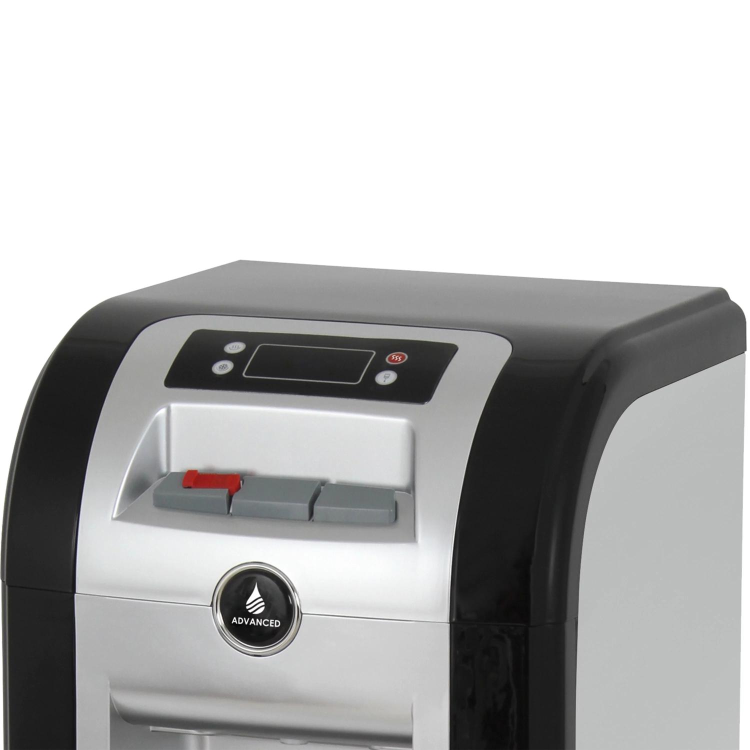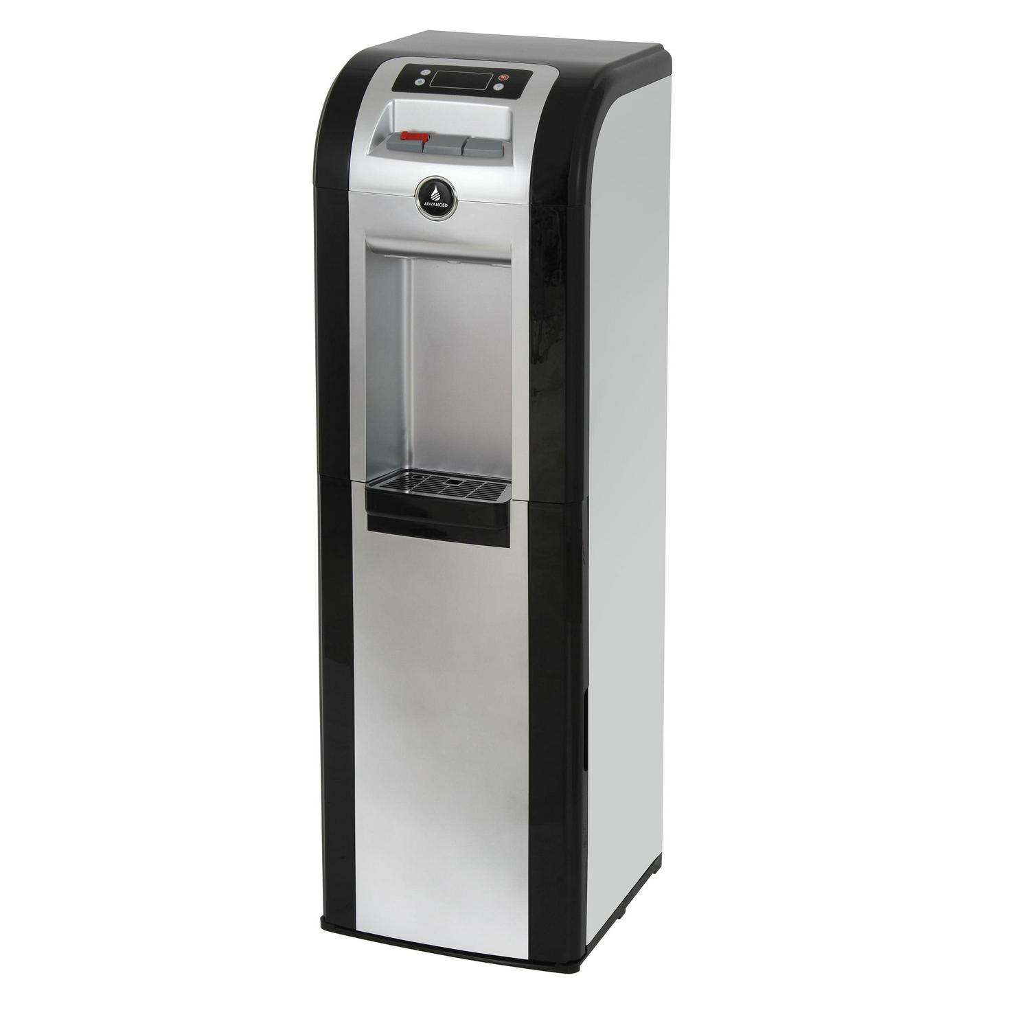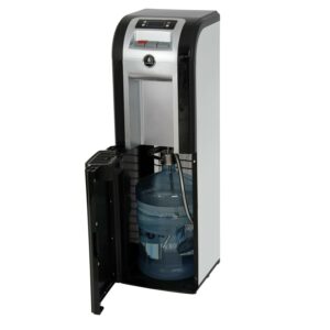 No more accidental spills from lifting heavy water jugs. The innovative bottom-load water dispenser makes adding new water easy, as the bottle is connected and stored in the bottom cabinet instead of needing to be carefully placed on top. With the jug hidden below and a rich black/platinum finish, this dispenser goes beyond filtering water to having a design that complements the room around it. It can be use with 3, 4 or 5 gallon water bottles.