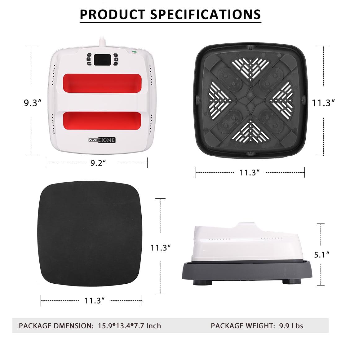 – Size of heating plate: 9″ x 9″