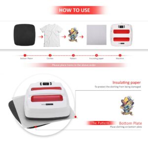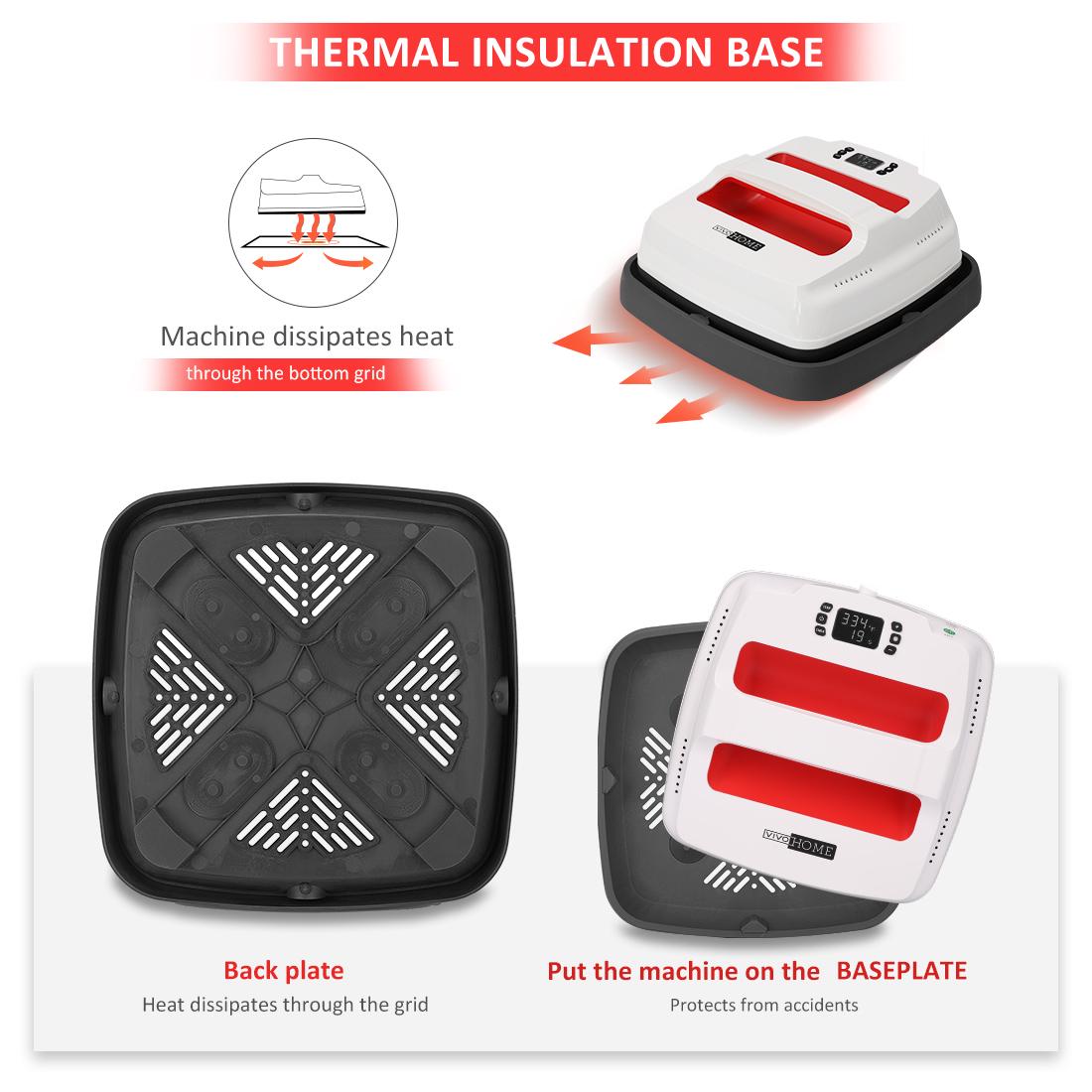 – Package Includes:1 x Heat press machine, 1 x Insulated Base, 1 x Silicone Mat, 1 x High-temperature insulation fabric , 1 x User Manual