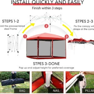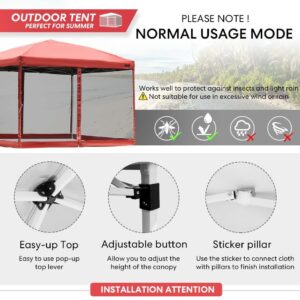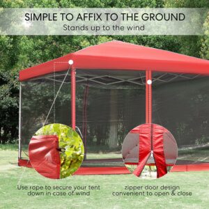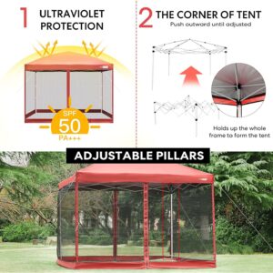 VIVOHOME 210D Oxford Outdoor Pop-up Canopy Screen Party Tent with Mesh Side Walls (8 x 8 ft, Red)