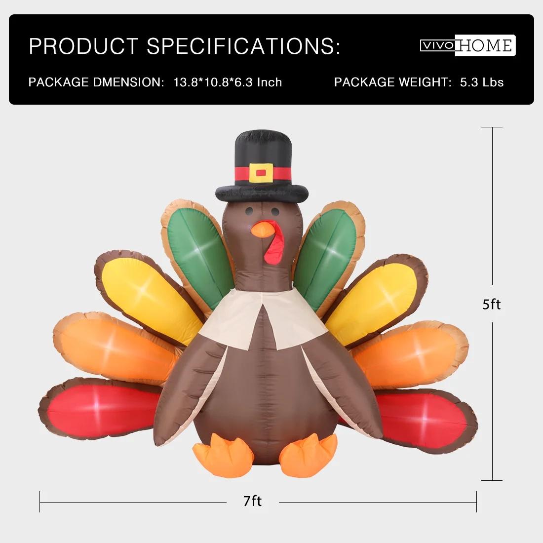 VIVOHOME 5ft Height Thanksgiving Inflatable LED Lighted Turkey with Hat Lawn Yard