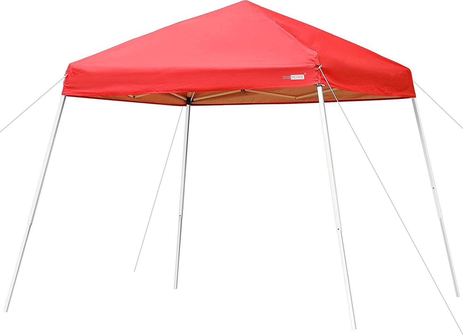 VIVOHOME Slant Leg Outdoor Easy Pop Up Canopy Party Tent Red 8 x 8 Feet