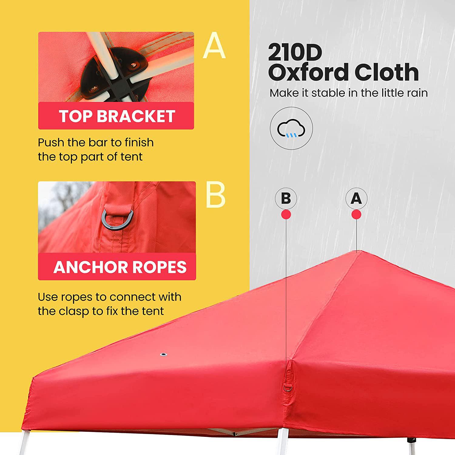 Enjoy cooling shade with the VIVOHOME Slant Leg Instant Canopy. The tent shade is made with waterproof Oxford tough fabric and interior silver lining, which is of great help in blocking out UV Rays and sun exposure. A sturdy and high-quality steel frame with a white powder-coated finish is for preventing rust, corrosion, peeling, or chipping. During your next summer, enjoy the complete shade under the sun while camping, outdoor activities, golf, football, and so on.