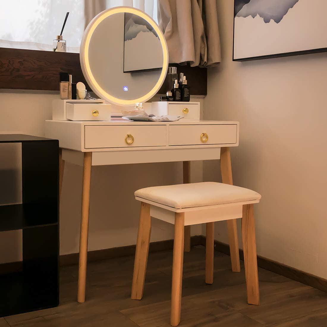 VIVOHOME’s dressing table is simple and stylish with a modern aesthetic. Tri-color LED lights will meet your different needs. Soft yet sufficient lights will help you with your daily perfect makeup. Our premium high-quality materials bring you a comfortable and memorable addition to your room and will make make-up routines more enjoyable with its fine design. Store away all of your products in this stylish and well-designed vanity set so you can always have your materials on hand.