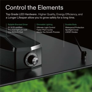 – Dimmable Ballast: This LED plant lamp has a dimming knob that makes it adaptable to different periods for various plants; The 4 levels of the adjustable dimmer can be used for sprouting to flowering; Designed with the daisy chain function (EXT), it allows you to connect multiple lights with 1 socket and reduce the number of outlets to avoid the mess; The slimmer style body allows for more types of plants