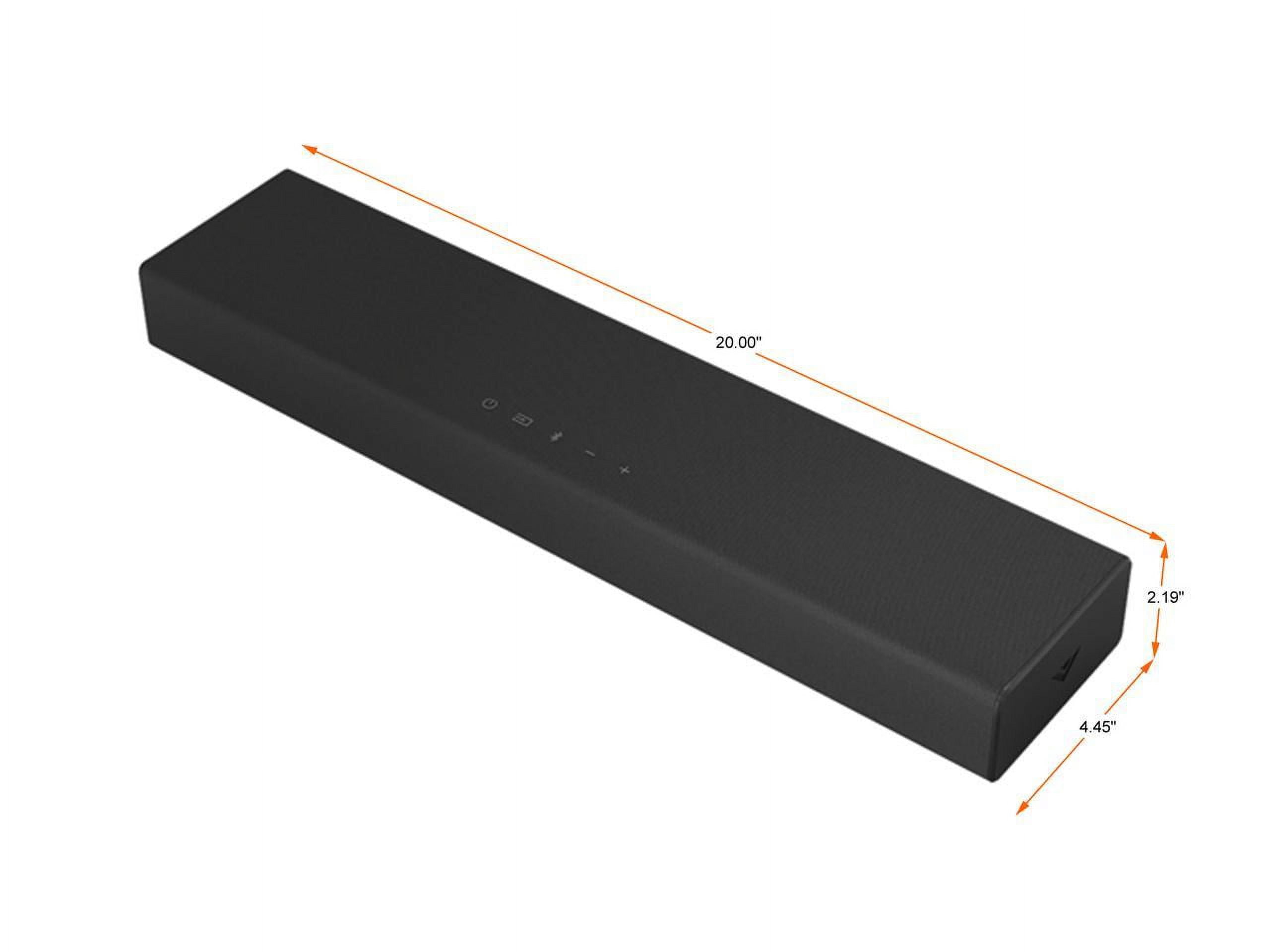America’s #1 Sound Bar* – VIZIO has been filling homes with truly immersive audio for over 10 years, and our sound bars just keep getting better. We are proud to provide our customers with top-tier audio products that bring movies, shows, podcasts, music, and more to life like never before. Ultra-Compact 2.0 Design – Experience the performance of larger, more complex home theater systems in a simple, ultra-compact solution designed to fit anywhere and blend seamlessly into any environment. Bold Performance – Experience rich, clear sound with up to 91dB of total SPL output for performance that belies its size. Essential Connectivity & Control – Get set up and listening in seconds with the included cables plus Bluetooth connectivity for wireless streaming of your favorite music and podcasts. 2.0-Channel Sound – Experience is a powerful room-filling, true stereo experience ideal for movies, music, and gaming. Full-Range Speakers – 2 full-range speakers in the soundbar provide rich, clear sound. 70Hz – 20kHz Frequency Response – Hear what the artist intended and more with wide, natural frequency response. 91dB Loudness Experience startling dynamics with minimal distortion or compression. DTS Virtual: X™ – Make any content, in any room, more immersive with floor-to-ceiling, virtualized 3D sound. DTS TruVolume HD – Maintains a consistent volume level and eliminates annoying fluctuations between different types of content. Listen Your Way – Easily customize the sound to accommodate your preferences with treble and bass controls. Optical Connectivity – Enjoy high-quality audio and get set up and listening in seconds. Bluetooth Streaming – Stream music wirelessly from your phone or other compatible Bluetooth devices. Voice Assistant-Ready – Use our voice to control your Alexa, Siri, or Google Assistant devices through the sound bar with the compatible Bluetooth or 3.5mm Aux connection. Remote Control – Included full-featured, easy to navigate remote. *#1 Sound Bar Brand in 1H 2022 Source: The NPD Group/Retail Tracking Service, U.S., based on units, Jan. – June 2022 combined.