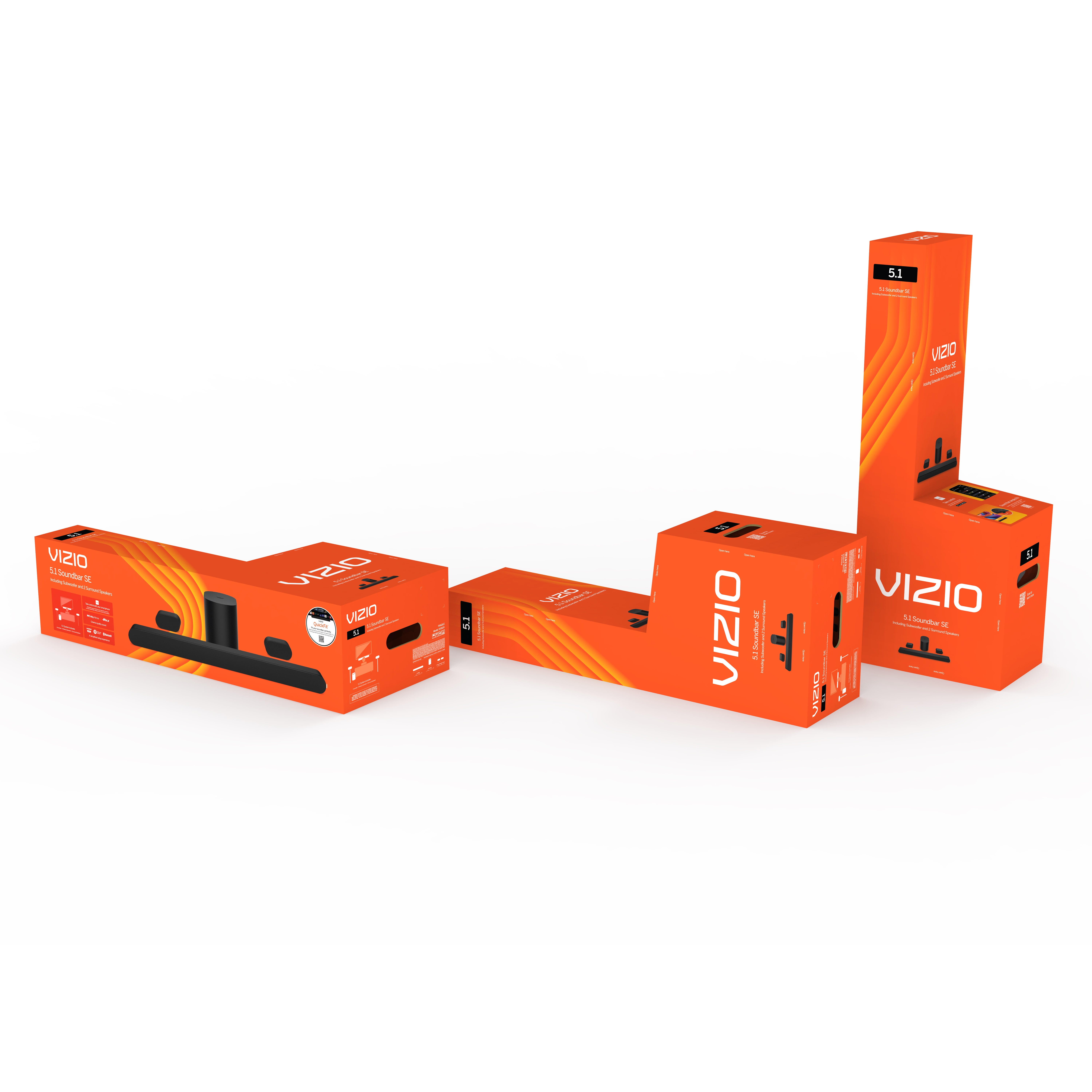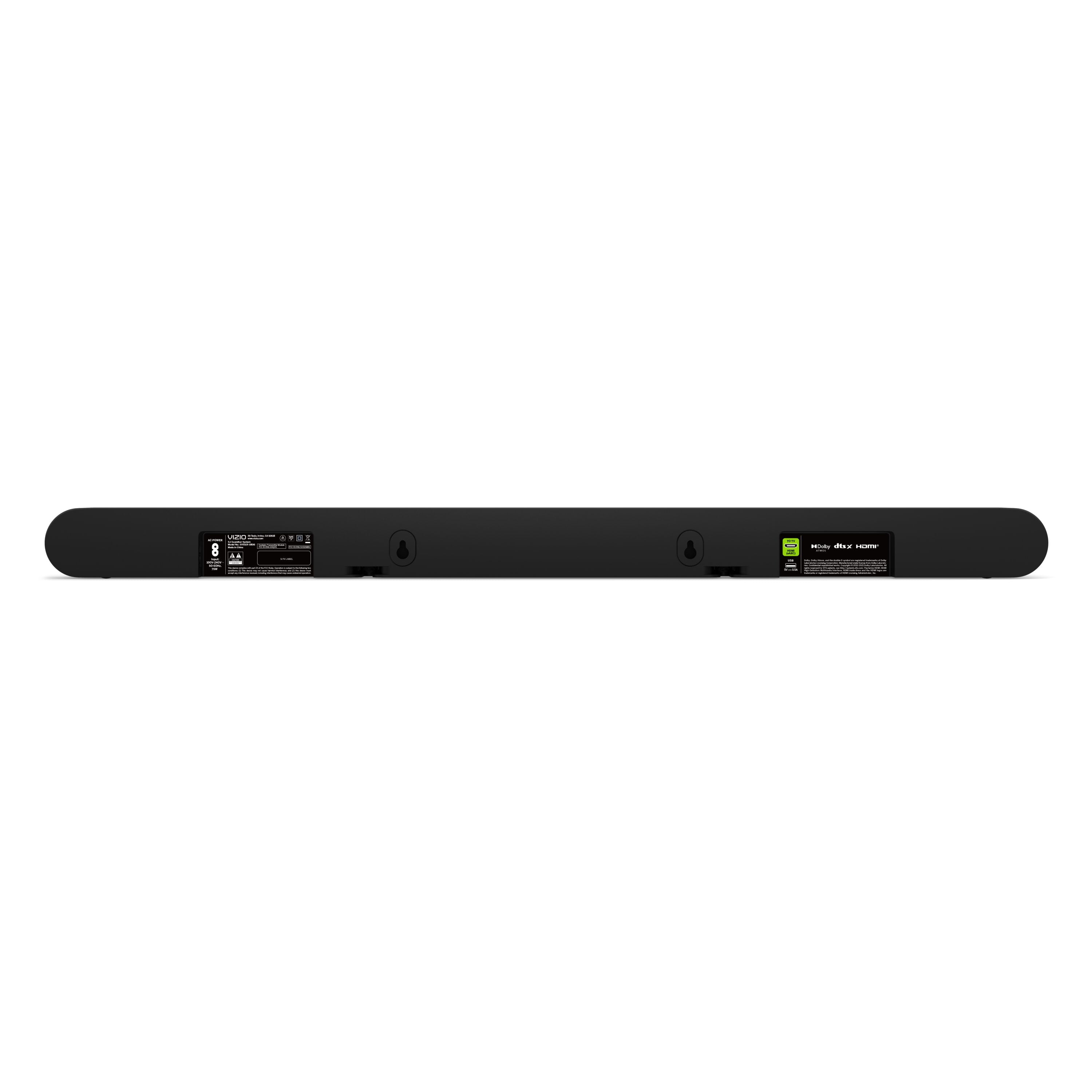 Dolby Atmos and DTS:X – Inspired by the cinema, Dolby Atmos® and DTS:X® deliver 3D immersive audio that puts you at the center of your entertainment with sound that moves all around you, even from above. Sensational immersive sound – An illusion for your ears, virtualized height speakers deliver the sensation of sound raining down from above, making movies, music, and games more immersive than you thought possible. Powerful sound all around – Three full-range speakers inside the soundbar, two surround speakers, and one wireless subwoofer deliver 96dB of detailed and dynamic high-impact sound that’s perfect for medium to large-sized rooms. Small but mighty – The included compact wireless subwoofer ensures commanding bass for it’s room-friendly size, delivering frequencies that reach down to 50Hz. We’ve got you surrounded – A pair of low-profile, full-range surround speakers deliver pinpoint accurate sound behind you for made-you-look movie moments and optimal situational awareness in-game. Simplified setup and control – Unlock the highest-quality audio formats like Dolby Atmos® and DTS:X® with the simplicity of a single HDMI eARC connection. This one-cable connection also enables you to control the soundbar with your TV remote , reducing clutter and ensuring seamless device integration. Soundbar remote control not included. Take control with your smartphone – Download VIZIO Mobile – available for iPhone and Android – for a modern & intuitive user interface with adjustments for bass, treble, speaker levels, sound modes, and more. Stream easy – Wirelessly stream your favorite playlists, podcasts, audiobooks and more directly to your soundbar thanks to Bluetooth 5.2 support. The soundbar for every home – Premium fabric, soft textures, and a low-profile 33-inch enclosure ensure the soundbar fits your space with a touch of elegance that complements any décor. Paired for perfection – When connected to a VIZIO TV, you’ll have instant access to the integrated audio control menu , a big-screen interface which makes adjusting advanced soundbar settings easier than ever. Sound that simply fits – QuickFit™, only from VIZIO, enables you to attach your soundbar directly to the bottom of compatible VIZIO TVs for the perfect home entertainment pairing. We’re here for you. – Need a hand? Have a question? Lifetime technical support comes standard with every VIZIO soundbar. Our award-winning support team is here to help! A match made in Southern California. – VIZIO soundbars and televisions are designed in Irvine, California with an obsessive attention to detail. We carefully tune each model to ensure your home entertainment experience is a spectacle of sight and sound.