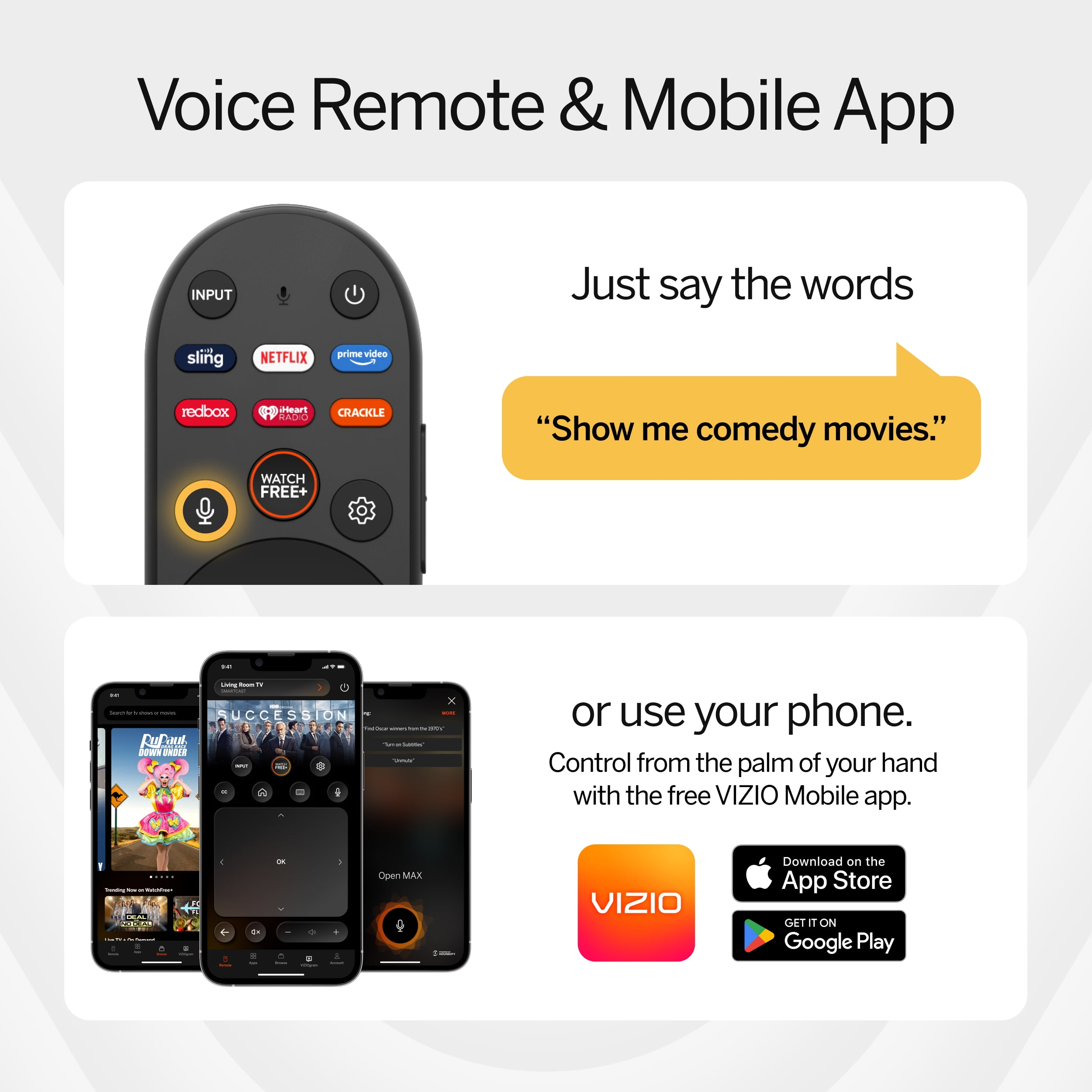 Visual mastery – Experience brilliant 4K QLED HDR picture and unconfined color that draws you into the content with enhanced HDR Dolby Vision, stunning brightness, and full array local dimming. See the action. Everywhere. – Wide Viewing Angle lets you sit wherever you want and still catch all the action with stunning color and contrast from any angle. One of our brightest TVs yet – Watch every scene flood with exceptional brightness and deeper darks with up to 1,000 nits peak brightness and full array local dimming. Spectacular Quantum Color (QLED) – Over 1 billion colors bringing you a true-to-life picture enhanced with Quantum Color. Minimized glare for a better view – Anti-reflective Film helps prevent glare in bright environments and makes it easy to enjoy entertainment at home at any time of the day. The future of connectivity – WiFi 6E allows you to stream more content without interrupting other connected devices in your Smart Home. Dominate the game – Experience truly immersive gameplay with AMD FreeSync Premium Pro certification. When connected to a console or PC, utilize up to 120fps in 4K or 240fps in 1080p and play the game as game developers intended, as well as access an integrated gaming menu that instantly powers on. Smart and easy – Enjoy instant access to the best selection of apps from top tier streaming services, and take advantage of 260+ free channels with the WatchFree+ app. Quick setup. Seamless fit. – QuickFit allows you to attach select VIZIO Soundbars directly to this TV for the perfect home entertainment experience. (Compatible with select VIZIO TVs and Soundbars.) Free TV lives here – WatchFree+ is like cable TV but streaming and free. Watch 260+ free channels of live TV and over 6,000 titles on demand. No logins. No subscriptions. No fees. Your entertainment centerpiece – The modern 3-sided VIZIO ThinFrame design fits beautifully in any room. Search. Discover. Enjoy. – Browse your favorite apps and easily search and discover content with one click from your home screen. Even easier? Just say the words and the included VIZIO Voice Remote and free mobile app will do the work. Full sound for you. Silence for others. – Pair your Bluetooth headphones and hear every word – uninterrupted – while streaming VIZIO’s built-in apps and free channels. Save time. Stream more. – VIZIO Account is a single place to subscribe, track payments, and manage your streaming services. Just say the words – It has never been easier to quickly find what to watch. Voice controls are available with the free VIZIO Mobile app. Available on IOS and Android devices. Smart home ready – You can stream, control, and share all your favorite movies, shows, music, photos and more from your Apple or Android devices directly to the TV with Apple AirPlay 2 and Chromecast. Also integrate seamlessly with Apple Home, Google Assistant, and Amazon Alexa-enabled devices. The latest and greatest – Supported VIZIO TVs will automatically update through WiFi with the latest apps, free channels, new features, and more. Enhanced Audio – Bring next-gen audio formats like Dolby Atmos and DTS:X to life with the magic of DTS Virtual:X, or experience the unparalleled performance of Dolby Atmos and DTS:X on a connected audio system using HDMI eARC. Your ultimate home theater experience – VIZIO TVs and soundbars are better together. The height-adjustable TV stand transforms to easily accommodate a soundbar. When using HDMI, adjust soundbar settings like bass and sound modes using the onscreen audio control menu. Lifetime support – VIZIO TVs & Soundbars are designed for easy setup right out of the box. If you have questions or need assistance, our award-winning, lifetime customer support team has you covered. Call, chat, or email any time. Built by consumers for consumers – We’re an American company building America’s Smart TV and immersive Soundbars for all consumers. We obsess over every detail so we can deliver the best products with you in mind.