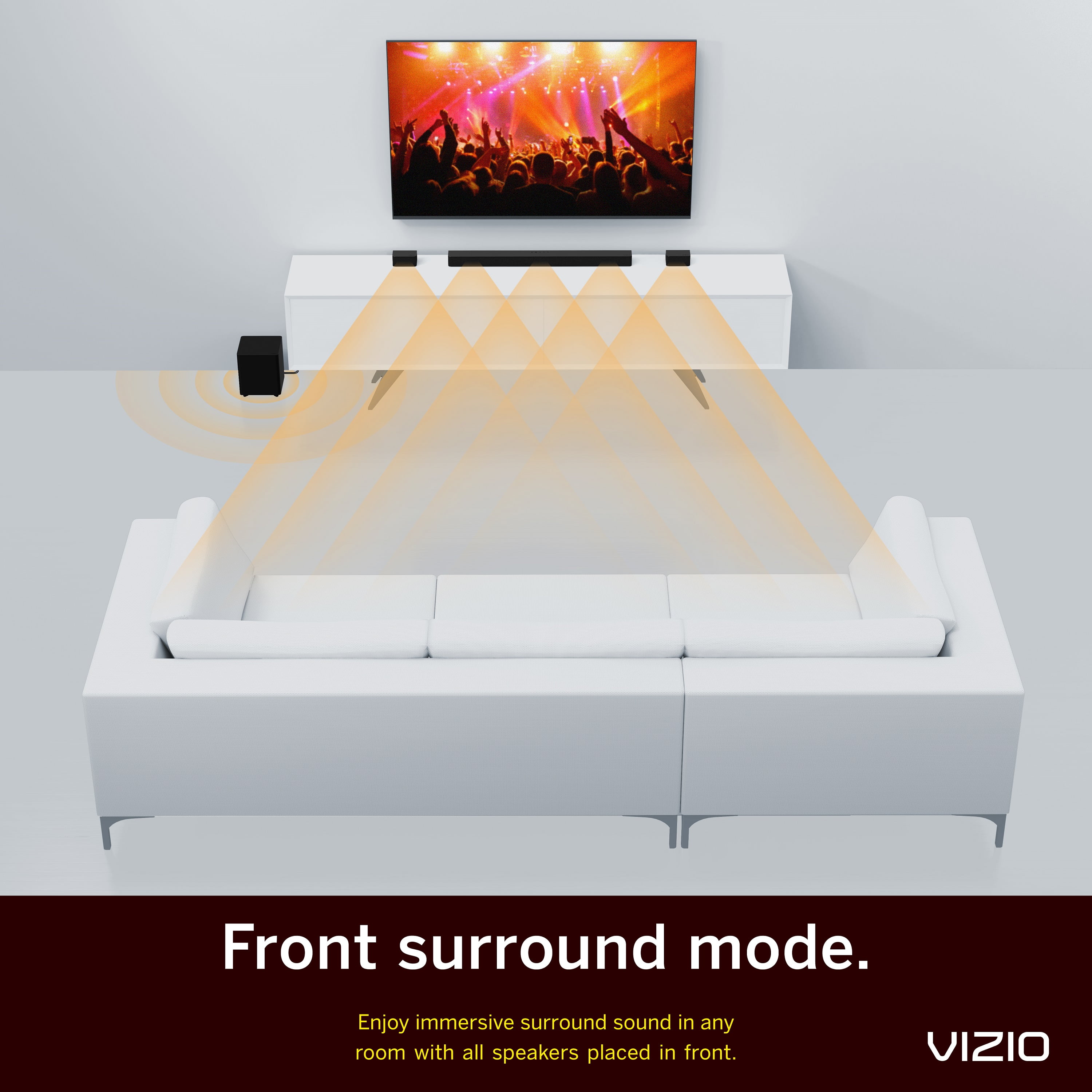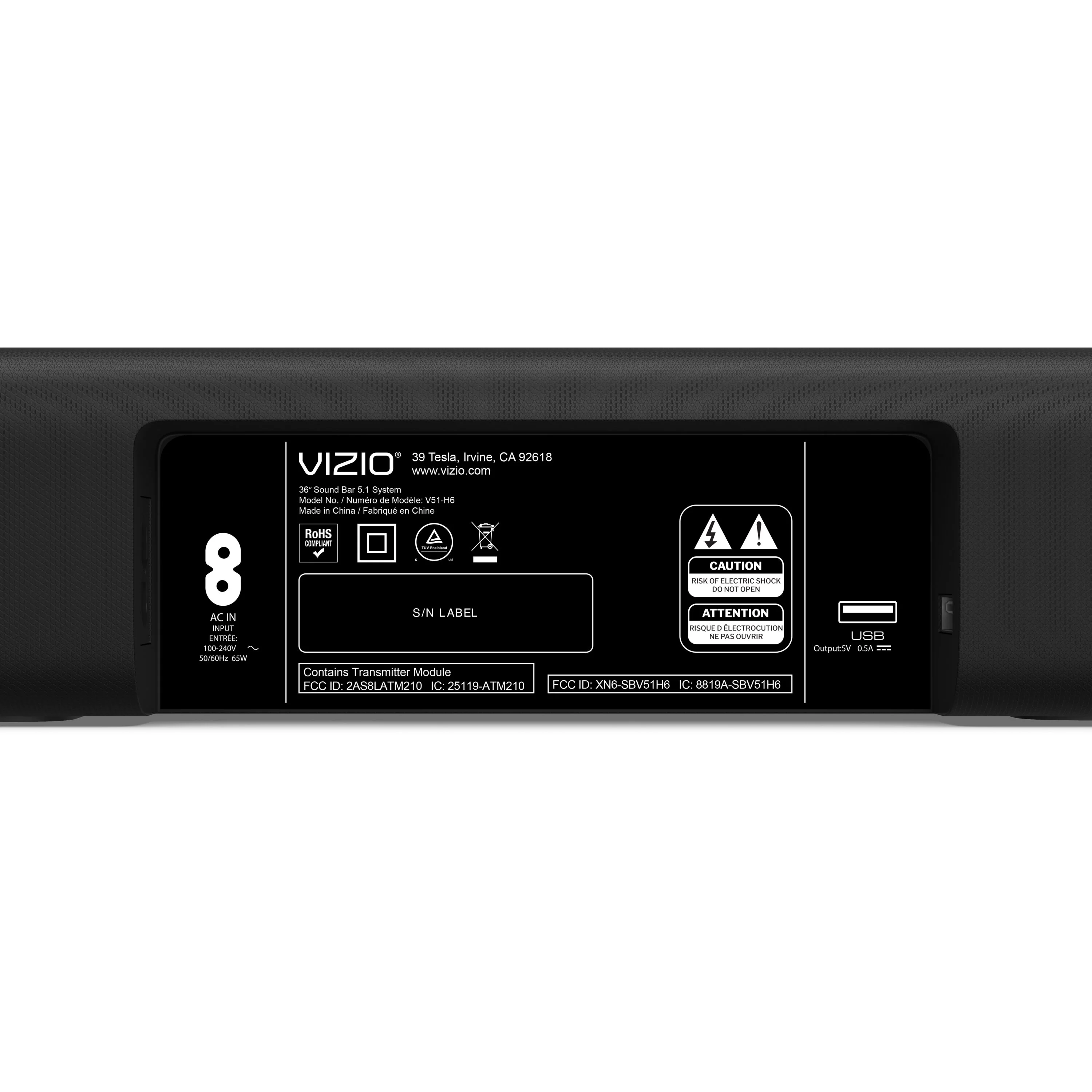 America’s #1 Sound Bar* – VIZIO has been filling homes with truly immersive audio for over 10 years, and our soundbars just keep getting better. We are proud to provide our customers with top-tier audio products that bring movies, shows, podcasts, music, and more to life like never before Low-Profile Modern Design – Clean silhouettes, subtle textures, and matte finish seamlessly blend into any environment Powerful Performance – Brilliant clarity, thunderous bass, Dolby Audio, and DTS Surround support combine for performance beyond its size Simple Setup, Streaming & Control – Get set up and listening in minutes with HDMI ARC and connectivity for unparalleled ease of use, control, and access to your content VIZIO TV Stand Integration – In addition to sliding neatly under TVs, V-Series sound bars ingeniously attach to select VIZIO TV stands in both op and wall-mounted installations 5.1-Channel Sound – Experience a powerful room-filling, surround sound experience 6 Total Speakers – Full-range drivers deliver coherent sound and brilliant clarity 50Hz – 20kHz Frequency Response – Hear what the artist intended and more with a wide, natural frequency response 96dB Loudness Experience startling dynamics with minimal distortion or compression 4.5” Wireless Subwoofer – A high-excursion woofer energized in a compact cabinet provides deep, accurate bass down to 50Hz Optimized for 4K HDR Content with Dolby Audio & DTS Surround – Bring out the best audio performance from your 4K HDR content with Dolby Audio DTS Surround when connected through HDMI DTS® Virtual: X™ – Make any content, in any room, more immersive with floor-to-ceiling, virtualized 3D sound DTS® TruVolume HD – Maintain a consistent volume level and eliminate annoying fluctuations between different types of content Listen to Your Way – Easily customize the sound to accommodate your room and content with selectable EQ and tone, level, and balance controls Dual Stereo Mode – Sends stereo content to all speakers simultaneously, for a fuller, richer sound that fills the room Front Surround Mode – Enjoy a more expansive sound stage in smaller spaces with the option to move the surround speakers to the left and right of the soundbar Wireless Convenience – Place the wireless subwoofer anywhere in the room and connect quickly, and easily with the push of a button HDMI ARC – Experience high-quality audio with one, simple connection to your TV and enjoy seamless control of your sound bar using the TV remote Bluetooth Streaming – Stream music wirelessly from your phone or other compatible Bluetooth devices Voice Assistant Input – Use your voice to control your Alexa, Siri, or Google Assistant devices through the sound bar with a dedicated 3.5 Aux or Persistent Bluetooth connection All-New Backlit Remote – Full-featured, backlit display remote with a comfortable grip and easy to navigate – even in the dark *#1 Sound Bar Brand in 1H 2022 Source: The NPD Group/Retail Tracking Service, U.S., based on units, Jan. – June 2022 combined.