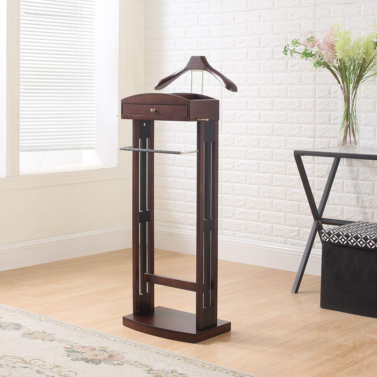 Features finely crafted piece of furniture. Solid wood construction. 20 in. W x 14 in. D x 46 in. H (18 lbs.). The Milan Wardrobe Valet encompasses the functionality you need and the style you want. It keeps your clothing wrinkle-free and your personal items organized in large compartments. It’s elegance is user to stand the test of time.You’ll be proud to showcase for years to come.