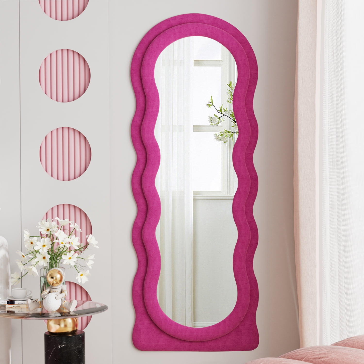 VLUSH Wavy Full Length Mirror, Freestanding Floor Mirror with Stand, 63″x24″ Wall Mounted Mirror for Bedroom (Pink)
