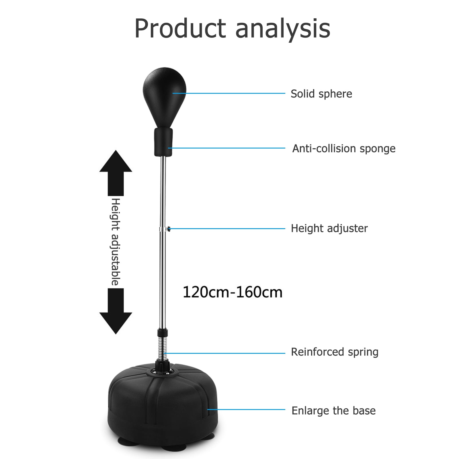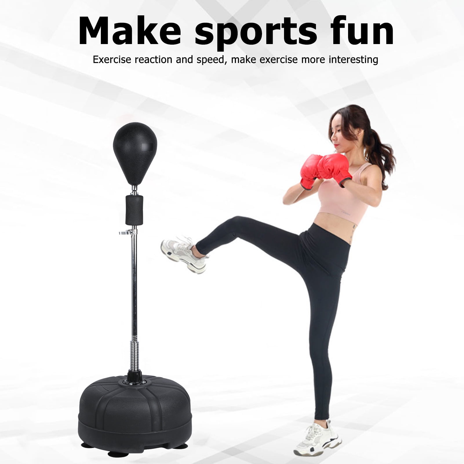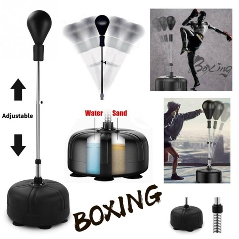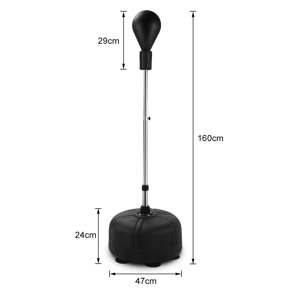 Product details Vobor Punching Bag with Stand For Adults & Kids,with 2 Hand Warps Training & Fitness for Indoor Outdoor,Quality PU Leather. The boxing ball is integrally formed with solid polyurethane, which has strong impact resistance and is not easy to deform. The outermost layer of the speed bags for boxing is thick high-density PU leather, the middle is the power buffer layer, and the inner is a highly elastic polyurethane foam pad, which is soft and safe. Upgraded Durable Spring:Our stand reflex bag kit has strong and durable springs at the bottom of the shaft. In this way, after every hit heavy bag with stand, the spring-mounted punching cylinder will spring back to its original position every time. Adjustable 4 Heights:You can loosen the knob to adjust the height of the kickboxing bag. The cobra bag can be adjusted to 47-62 inches. The top of the adjusting rod is equipped with a foam sheath, and the height of the sphere can be easily adjusted to meet the needs of different age groups. Specifications: Condition: 100% Brand New Pipe Support Material: Stainless Steel Pugilism Ball Size: about 29cm / 11.4 ” Base size: about 47 * 24 cm / 18.5 “- 9.4” Item Adjustable height: about 120-160cm / 47.2 “- 62.9” Package Included: 1 x Boxing ball 1 x Pair of boxing gloves 2 x Steel pipe supports 1 x Base Note: Please allow 1-3cm error due to manual measurement. Thanks for your understanding.