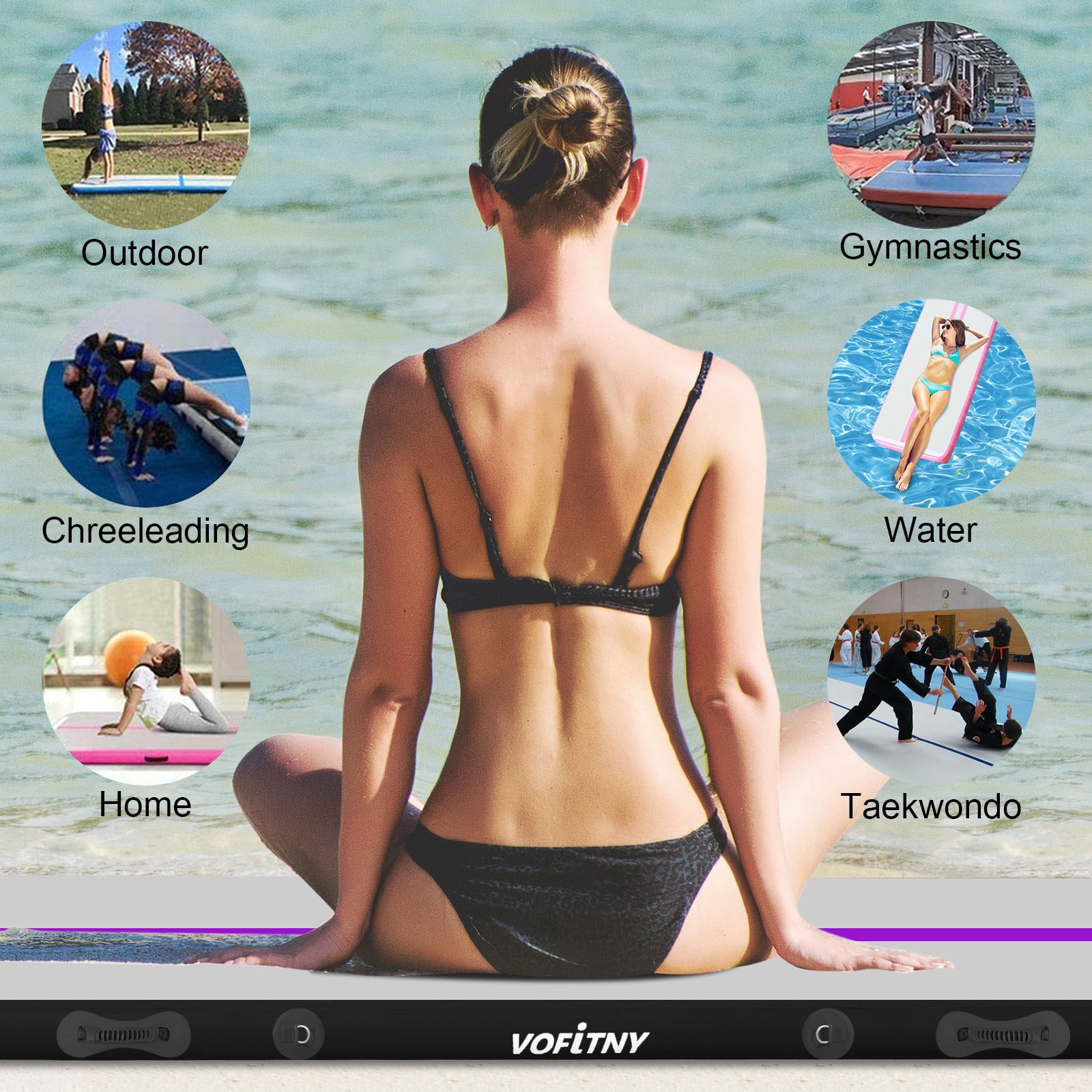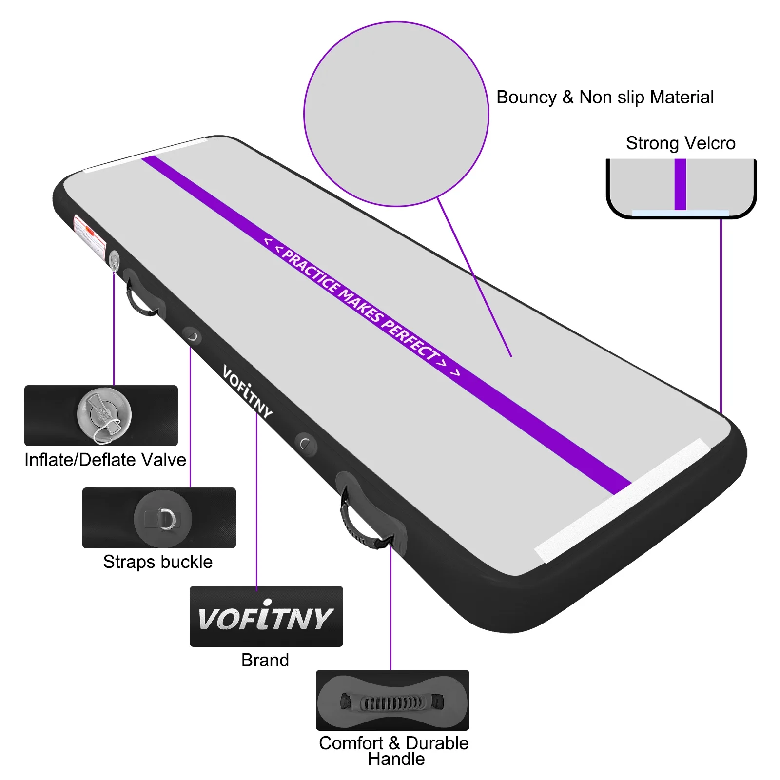 This versatile 6.6 ft air mat from VOFiTNY is perfect for a wide range of activities, including gymnastics, cheer training, tumbling, yoga, and more. Crafted with durable, non-slip material and drop stitch fabric, it provides a firm and bouncy surface that helps reduce the risk of injury. The air mat is easy to inflate and deflate using the included high-pressure electric pump, making it convenient to set up, carry, and store. With its superior construction and 24/7 customer support, this air mat is an excellent choice for both indoor and outdoor use, whether you’re training at home, in a gym, or at a studio.