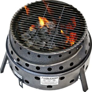 – Includes Volcano collapsible grill, bottom grate, diffuser plate, top grill, propane burner and cradle, regulator hose assembly, chicken stick, wrenches, Instruction manual, carrying case