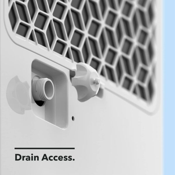 – EASY CLEAN AND CARE: With 24 hour auto shut off, 3 liter (0.8 gallon) water tank, removable and reusable washable filter, and drain hose outlet for optional continuous draining (drain hose not included)