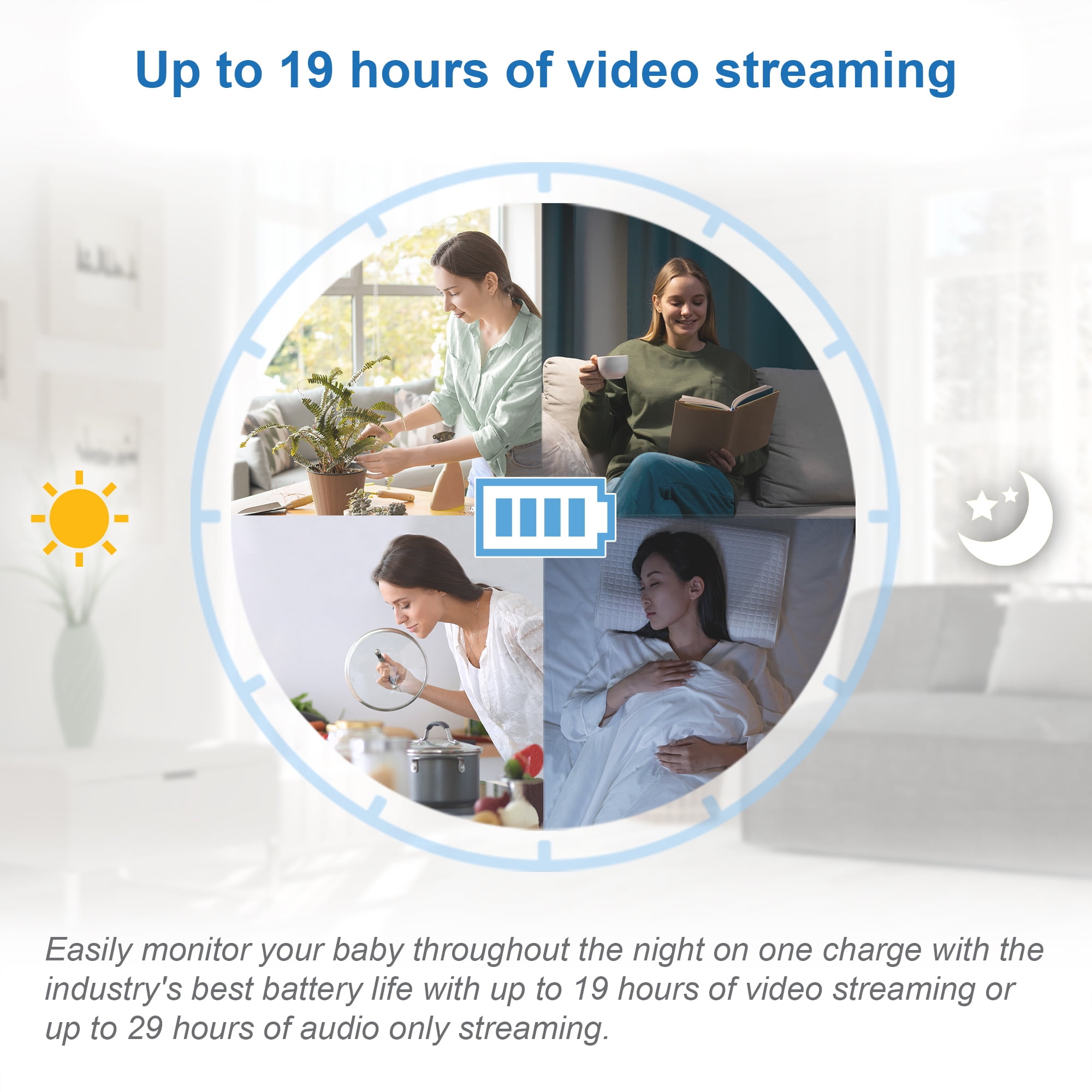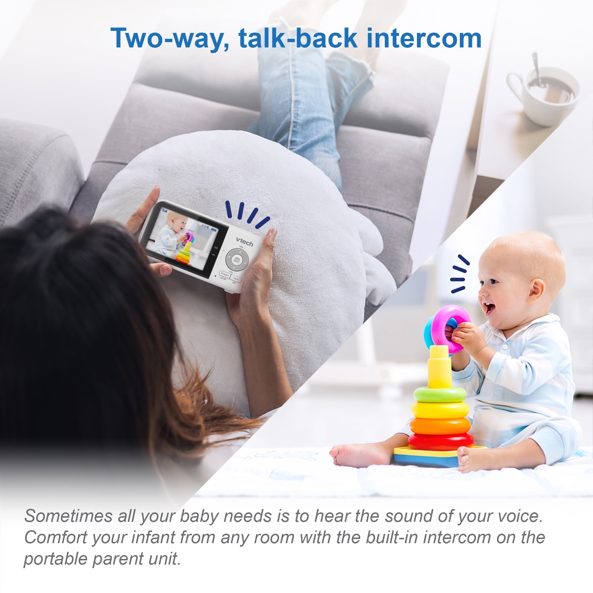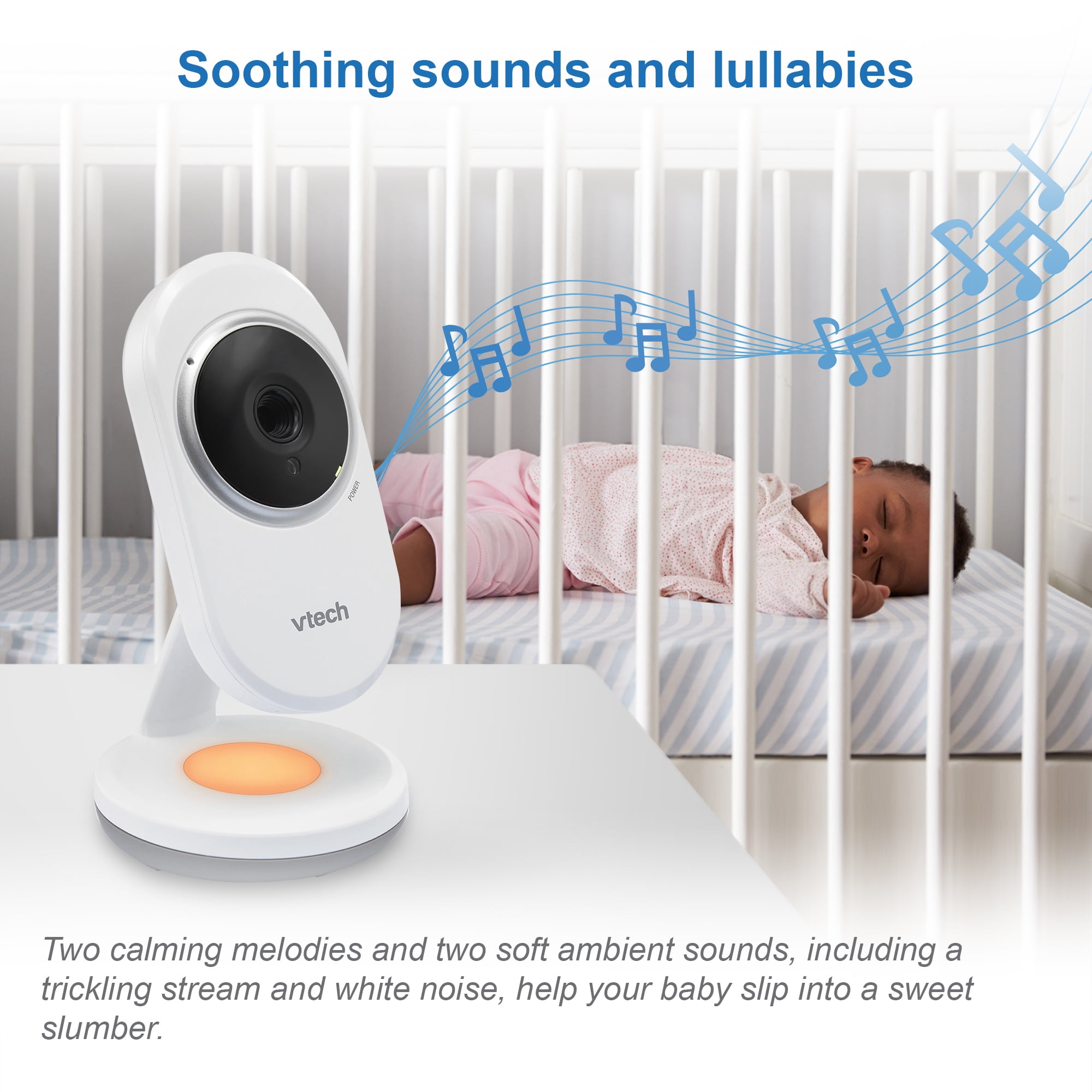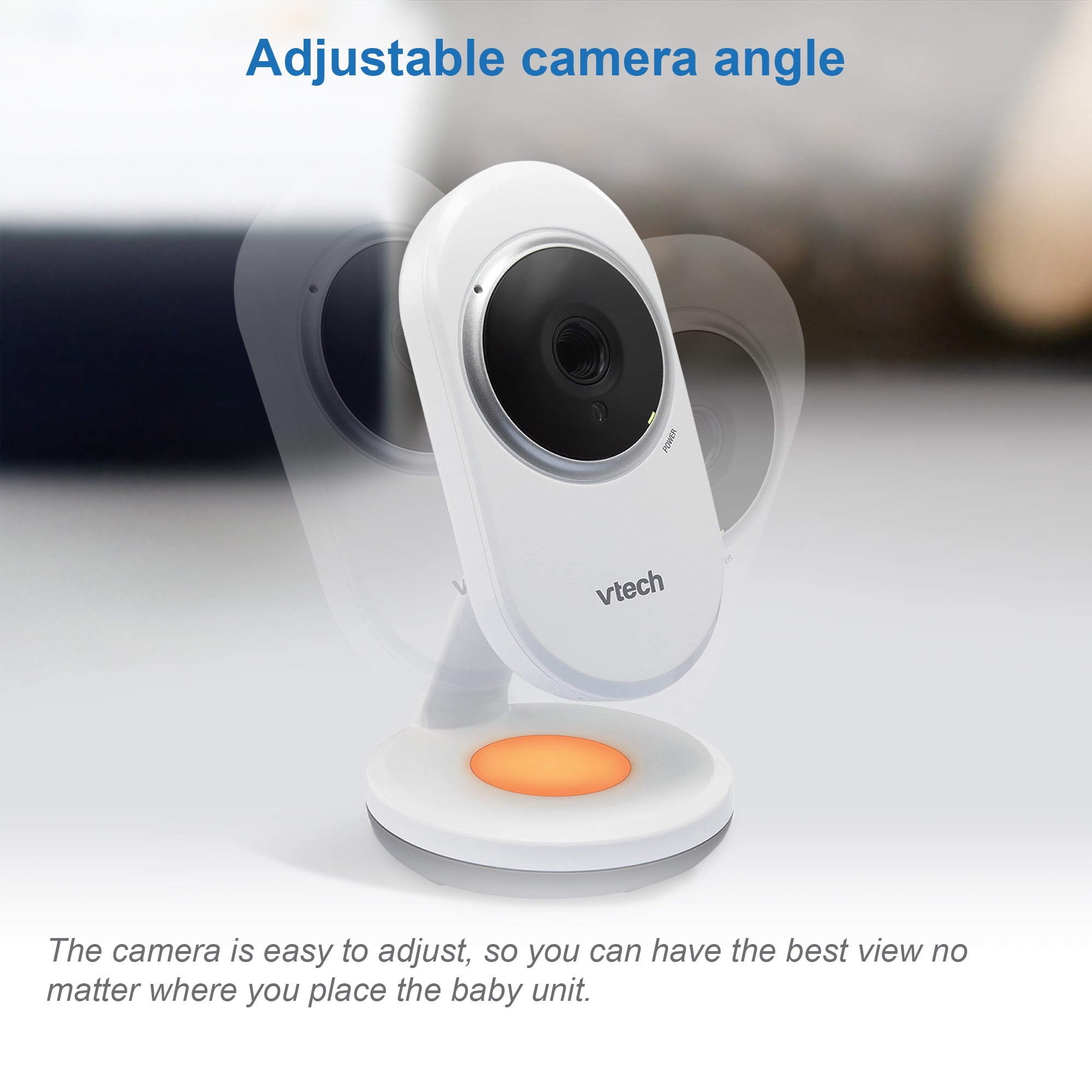 Check in on your little one with a 2.8-inch LCD screen on the VTech 2 Camera VM3254-2 Digital Video Baby Monitor with Night Light. Soothe your baby using the multi-color night light and lullabies and soft sounds that play right from the baby unit. Plus, you can make sure your infant is cozy by monitoring the nursery temperature that’s displayed right on the LCD screen. Best of all, with the industry’s best battery life, you can easily monitor your baby throughout the night with up to 19 hours of video streaming on one charge.