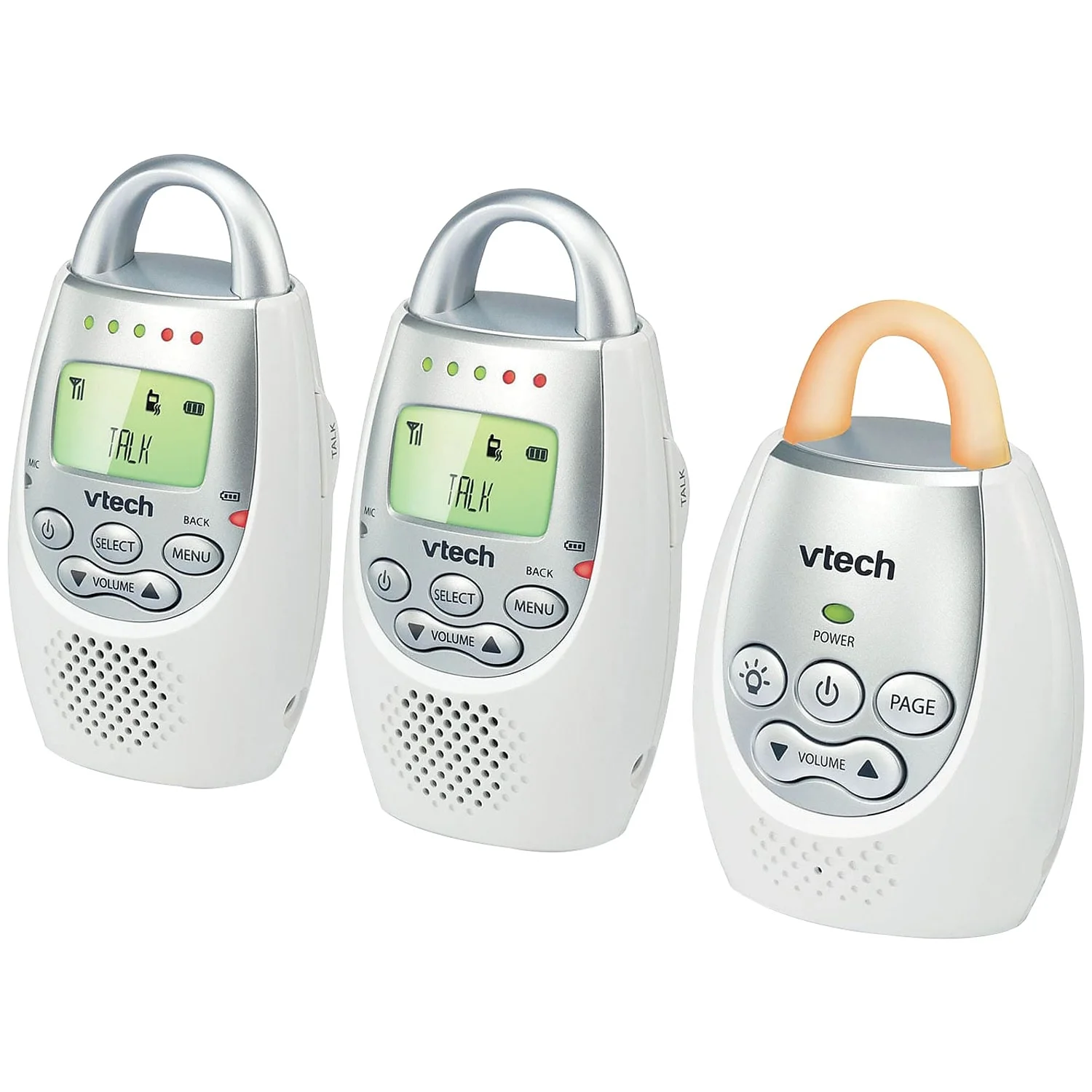 The VTech DM221-2 Two Parent Unit Digital Audio Monitor with Night Light lets you hear baby clearly from the other end of your house or in a large backyard. You can be up to 1,000 feet away and still know how your little one is doing. Also, the parent unit includes a rechargeable battery, so you can monitoryour baby anywhere! And since the baby unit doubles as a gentle night light, you can create a soothing glow for baby to fall asleep to. Enjoy the convenience of having two parent units so you can monitor from two rooms at the same time.