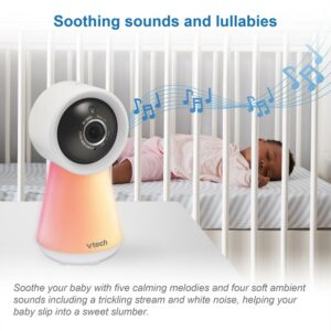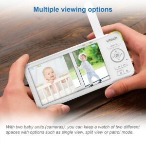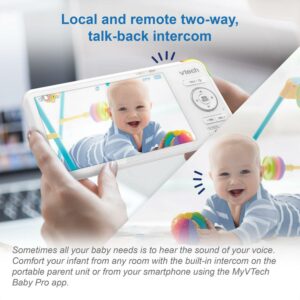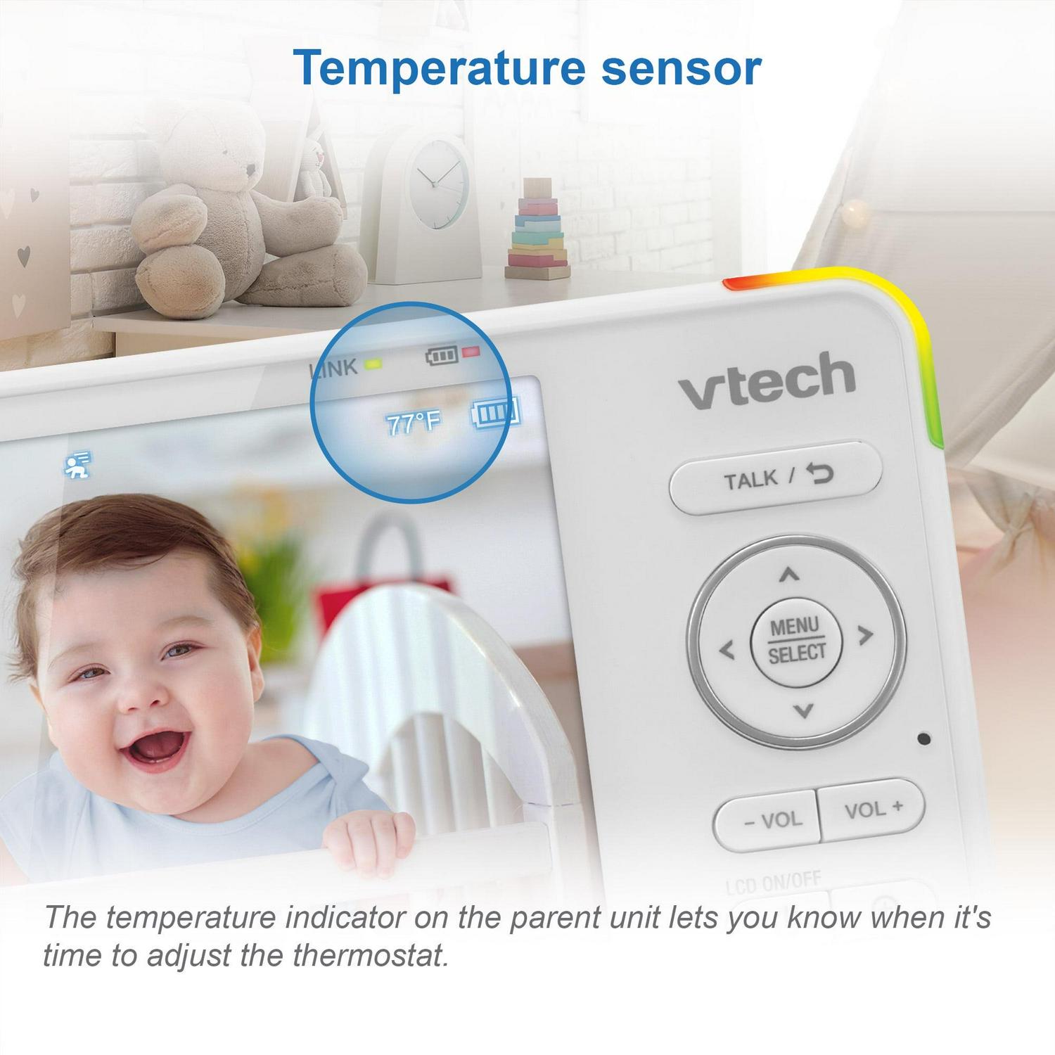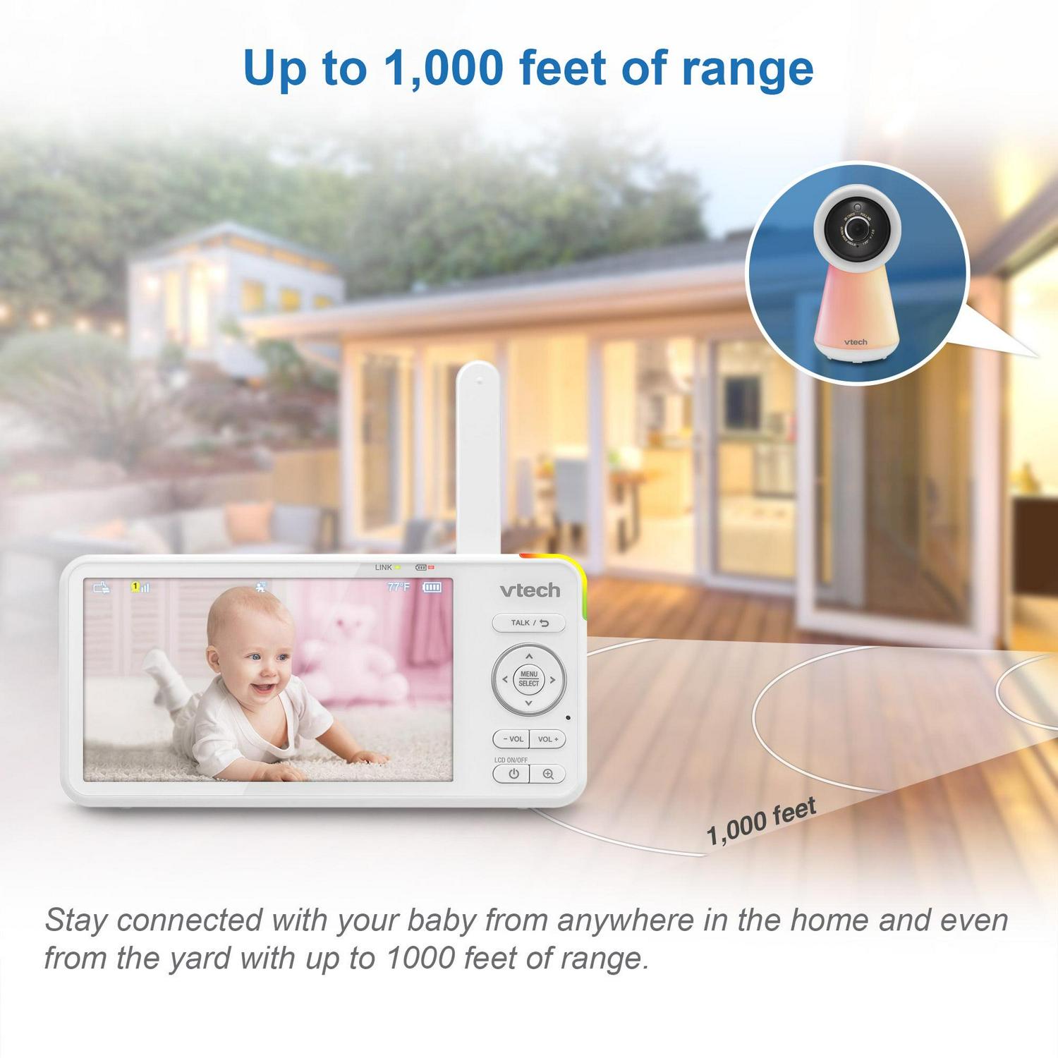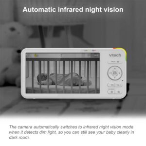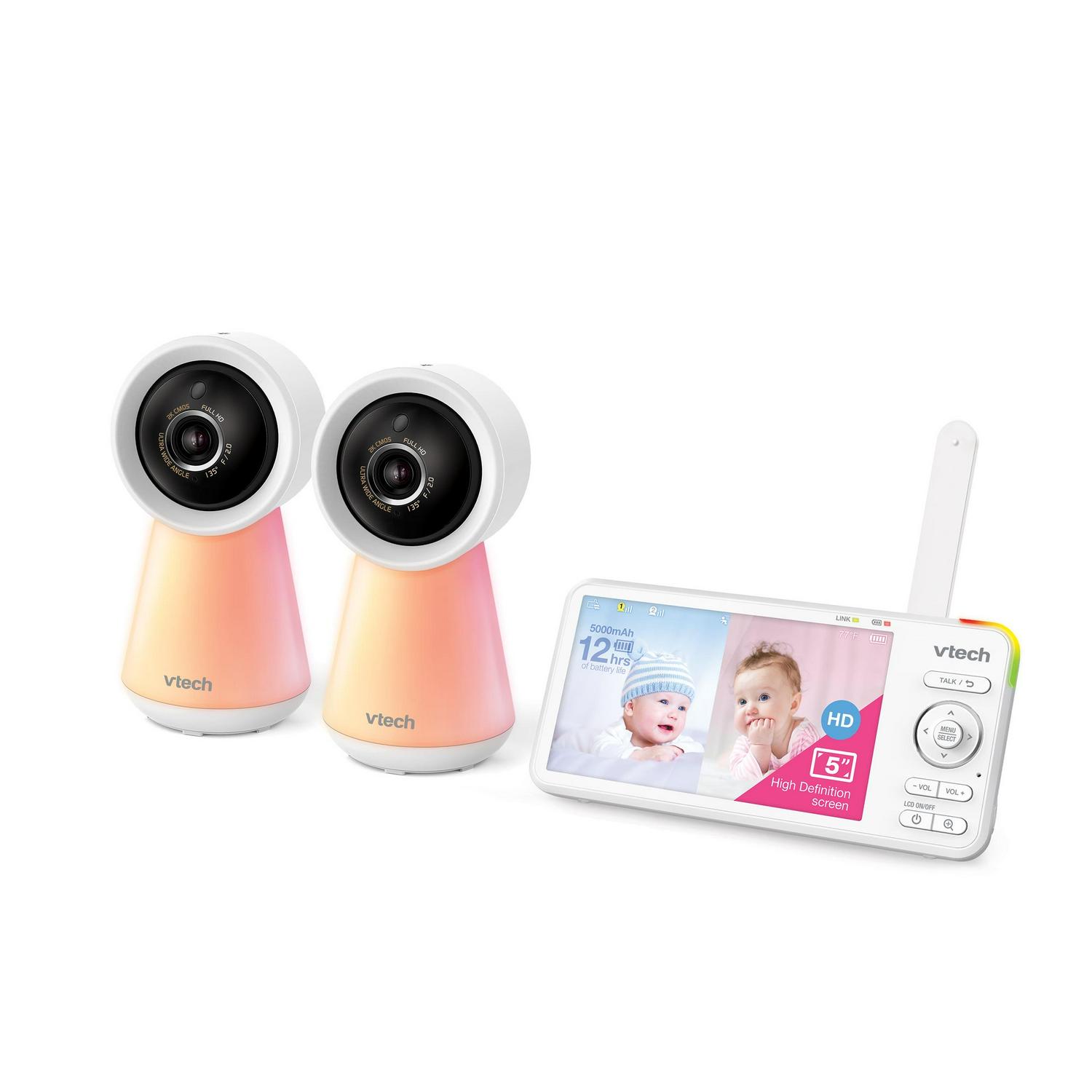 Watch over your little one at home on the 5-inch, 720p High-Definition LCD Parent Unit Display or remotely on your smartphone with the VTech 2 Camera RM5856-2HD Smart WiFi video baby monitor. Enhance your baby’s sleep environment with a sound & light profile recommended by experts. Magnify details with the industry’s best 30x times zoom on the mobile app or 24 times on the viewer and monitor room temperature directly from the Parent Unit Display. Plus, see your baby as clear as day, even in ultralow light, thanks to the automatic infrared Night Vision. Free professional in-app advice and videos provided by experts that help assist in sleep and the growth and development of your baby.