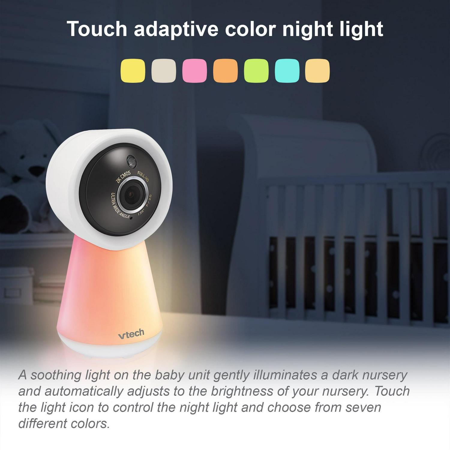– Touch adaptive night light – The 7 color night light automatically adjusts brightness for ideal lighting. Touch the light surface to control the night light.