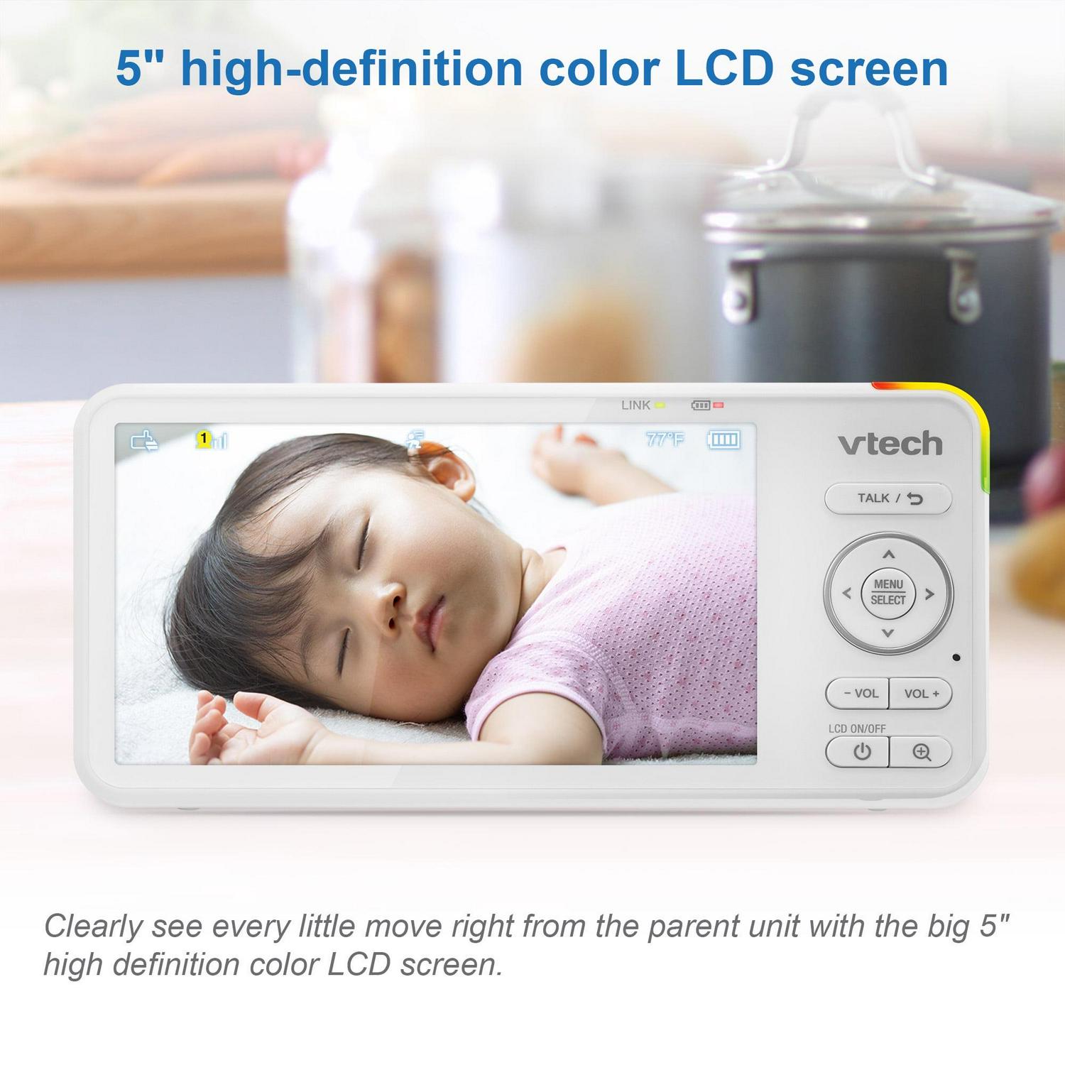 - High-definition, 5-inch color LCD screen to clearly see every single move right from the parent unit