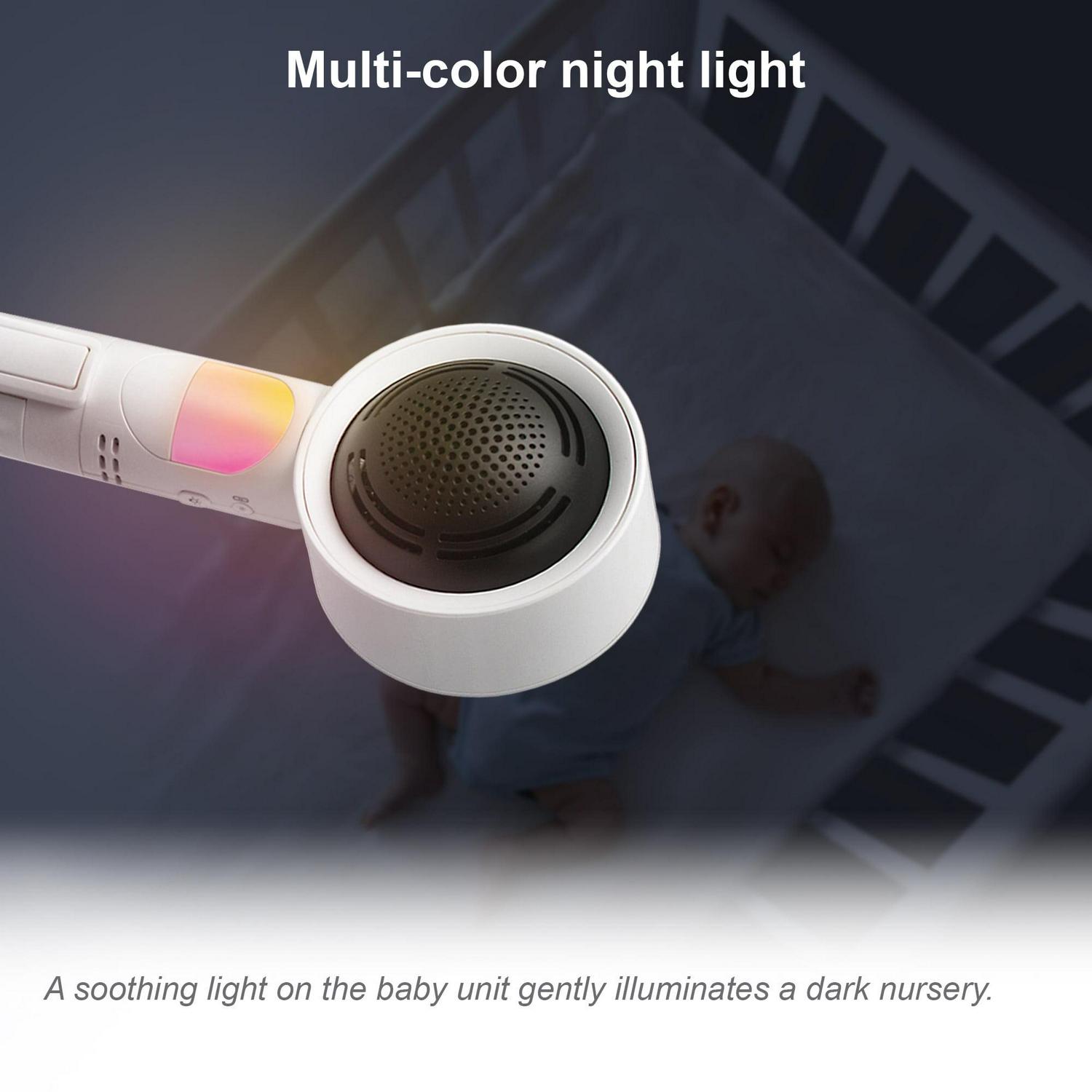 - Multi-color night light – A soothing light on the baby unit gently illuminates a dark nursery