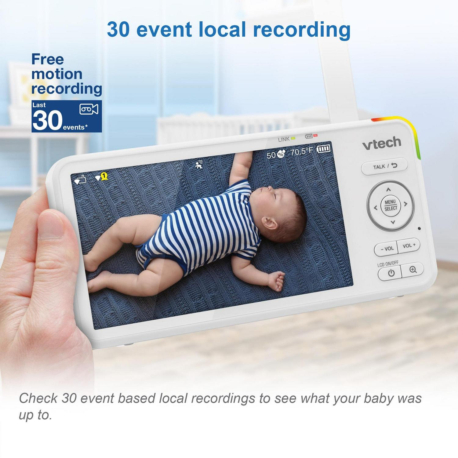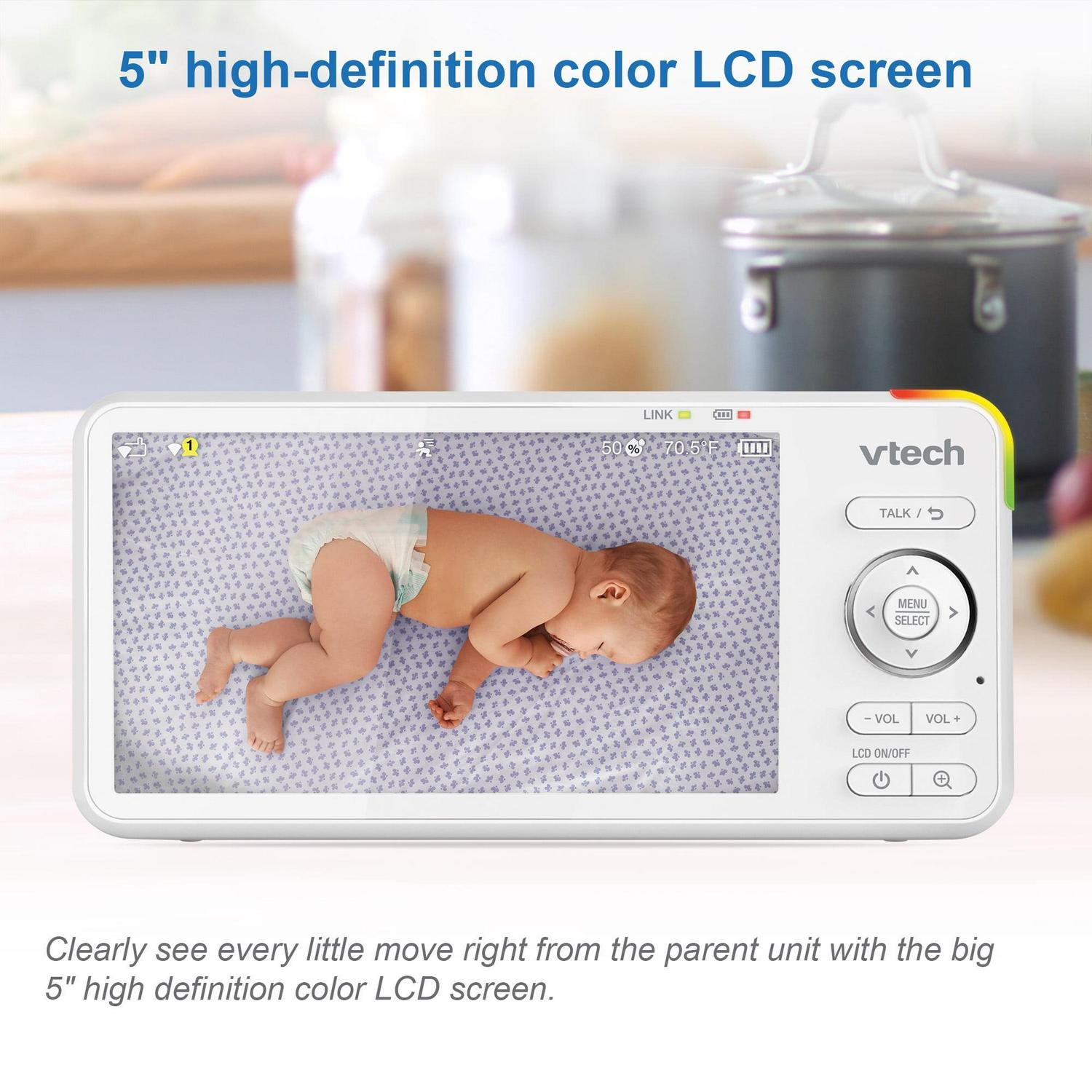 – High-definition, 5-inch color LCD screen to clearly see every single move right from the parent unit.