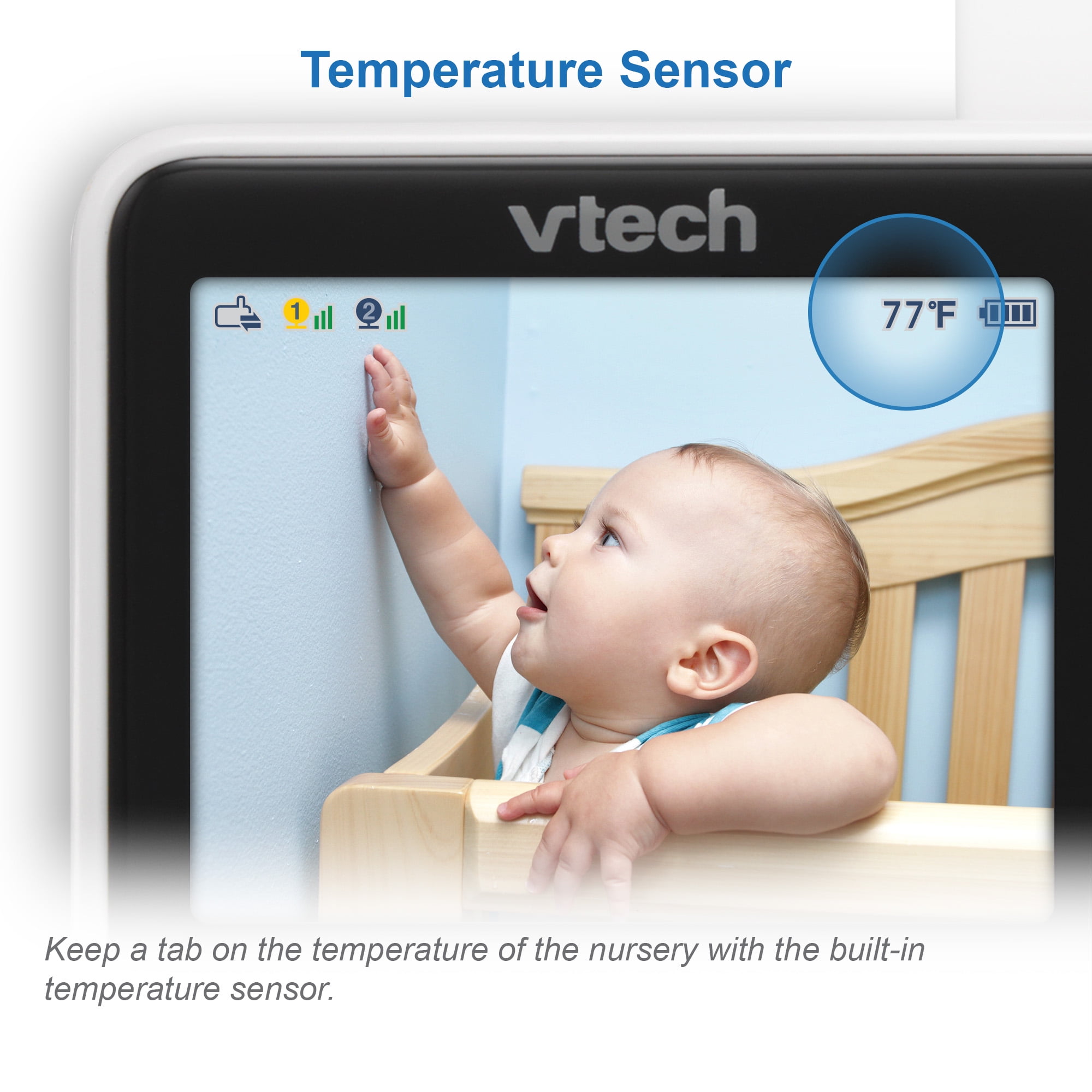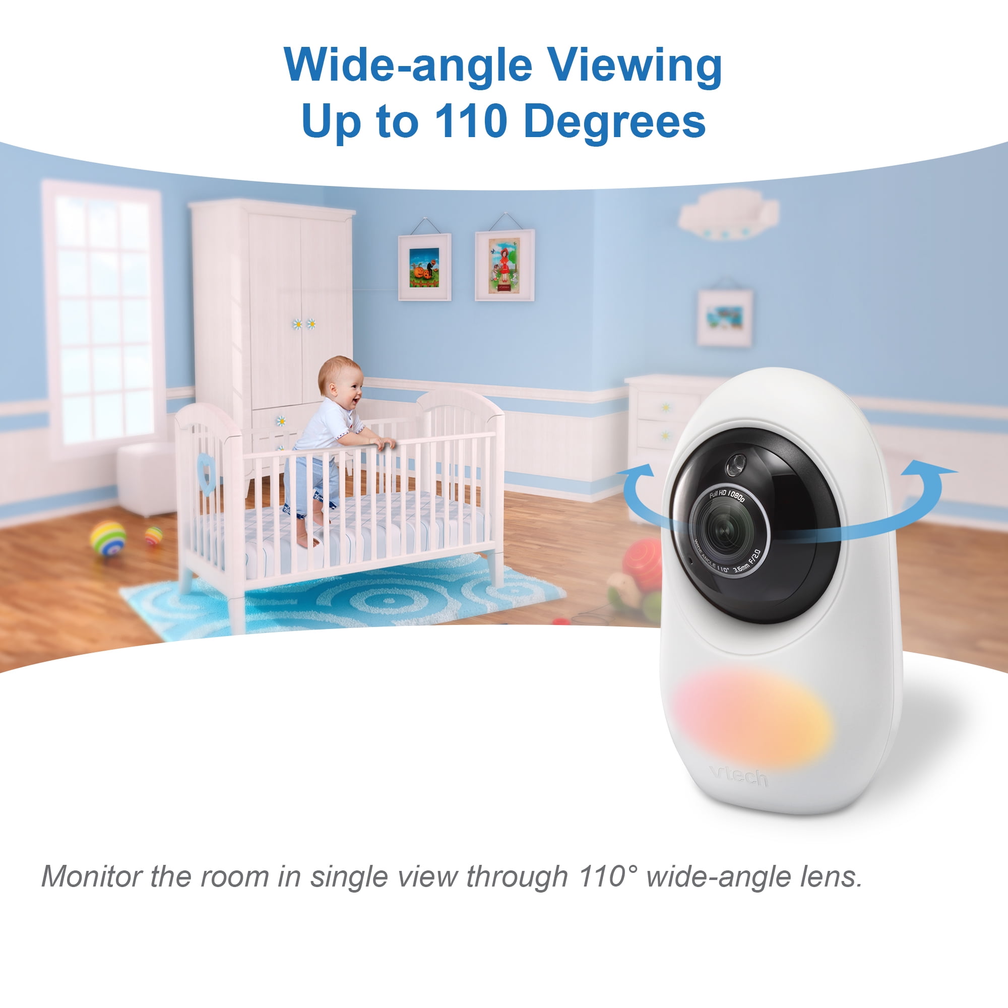 Watch over your little one at home on the 2.8-inch, Parent Unit Display or remotely on your smartphone with the VTech RM2851 Smart WiFi video baby monitor. Enhance your baby’s sleep environment with a sound & light profile recommended by experts . Magnify details with the 10x times zoom on the mobile app or 2 times on the viewer. Plus, see your baby as clear as day, even in ultralow light, thanks to the automatic infrared Night Vision. Free professional in-app advice and videos provided by the experts that help assist in sleep and the growth and development of your baby.