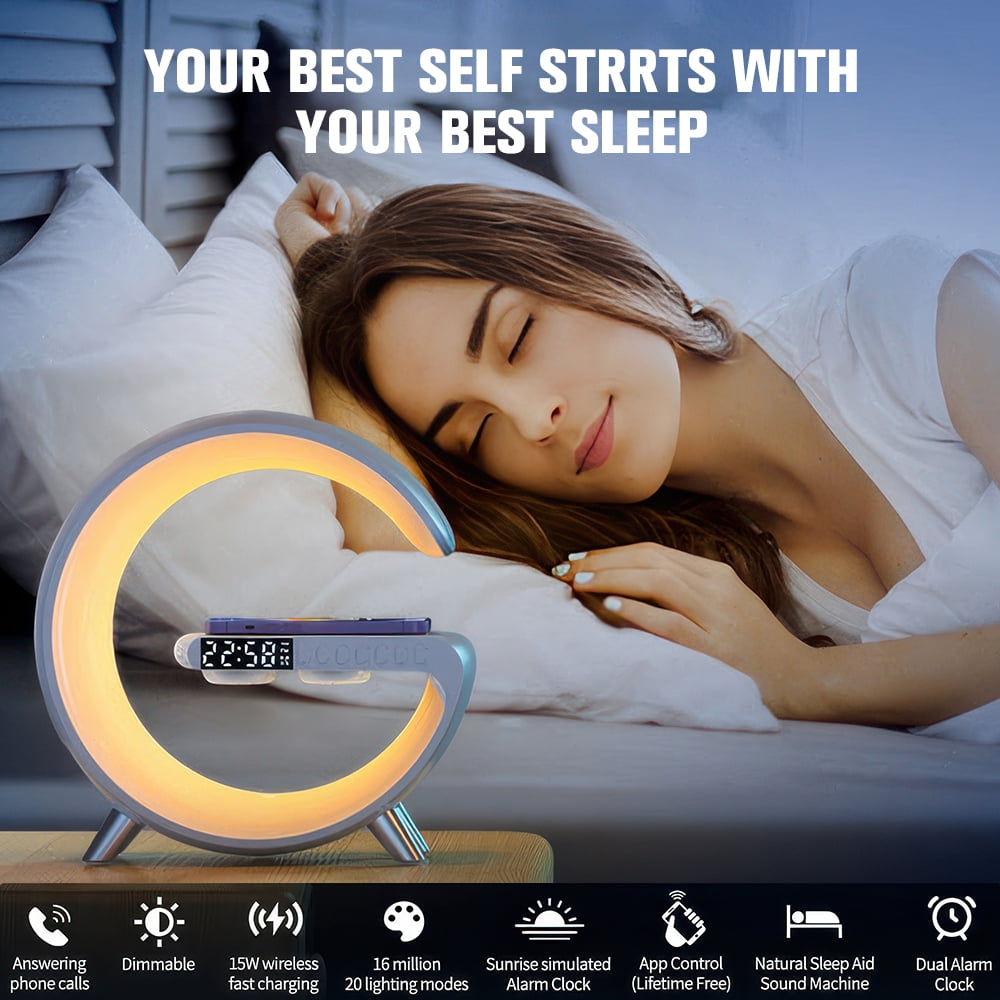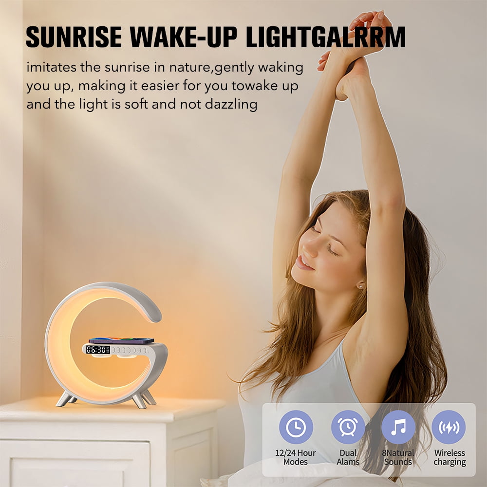 Multifunctional Wireless Charging Atmosphere Light Comfortable Wake-up Mode Smart Light Control Dimmable Mood Light Clock With Fast Charging Station