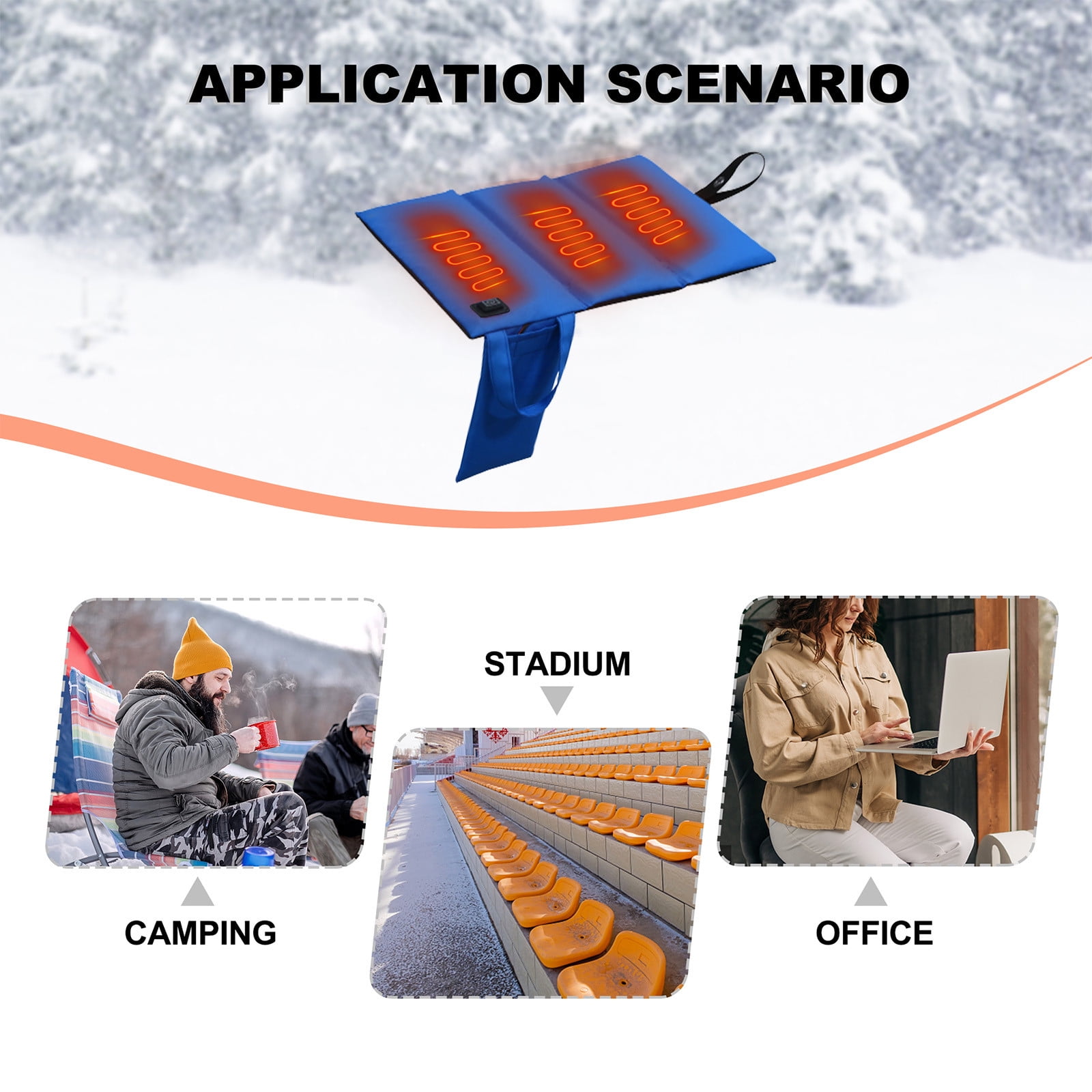 | Material | USB-Powered Heated Seat Cushion with 3 Heat Settings, Portable and Foldable for Outdoor Use, Ideal for Camping, Fishing, Hunting |