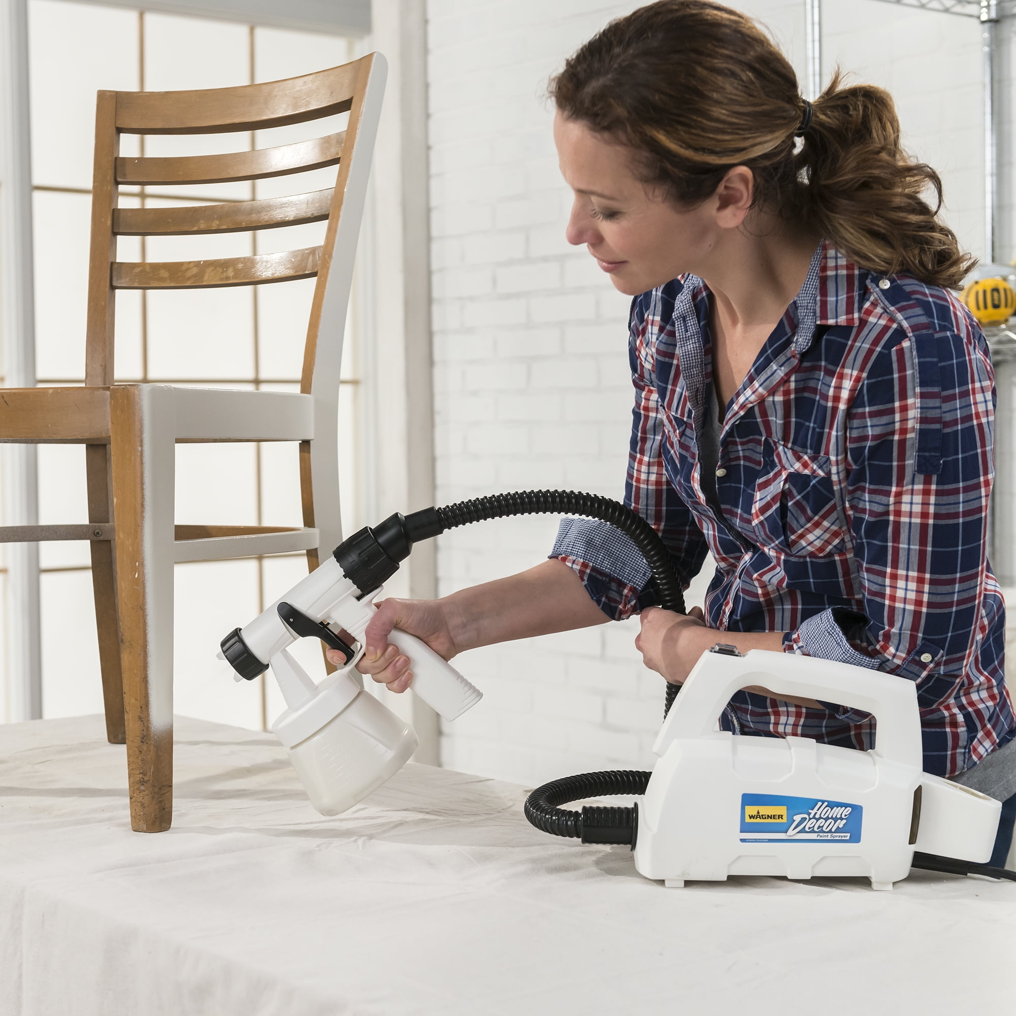 The Wagner Spraytech Studio Home Décor paint sprayer applies a fine finish with no brush marks. This hvlp paint sprayer is perfect when spraying furniture, crafts, home décor and more. The spray gun is versatile and can be used to spray a wide variety of chalk paint, milk paint, and other decorative finishing coatings. The paint spray gun also features several adjustable settings that allow you to customize your paint flow, including the pattern adjustment dial and the material flow control. The sprayer is designed with comfort in mind. The stationary base keeps the weight on the ground, not in your hand, and the compact spray gun allows you to easily paint in small, compact spaces like the inside of furniture. It’s the perfect sprayer to have for your next refinishing, upcycling or crafting project.