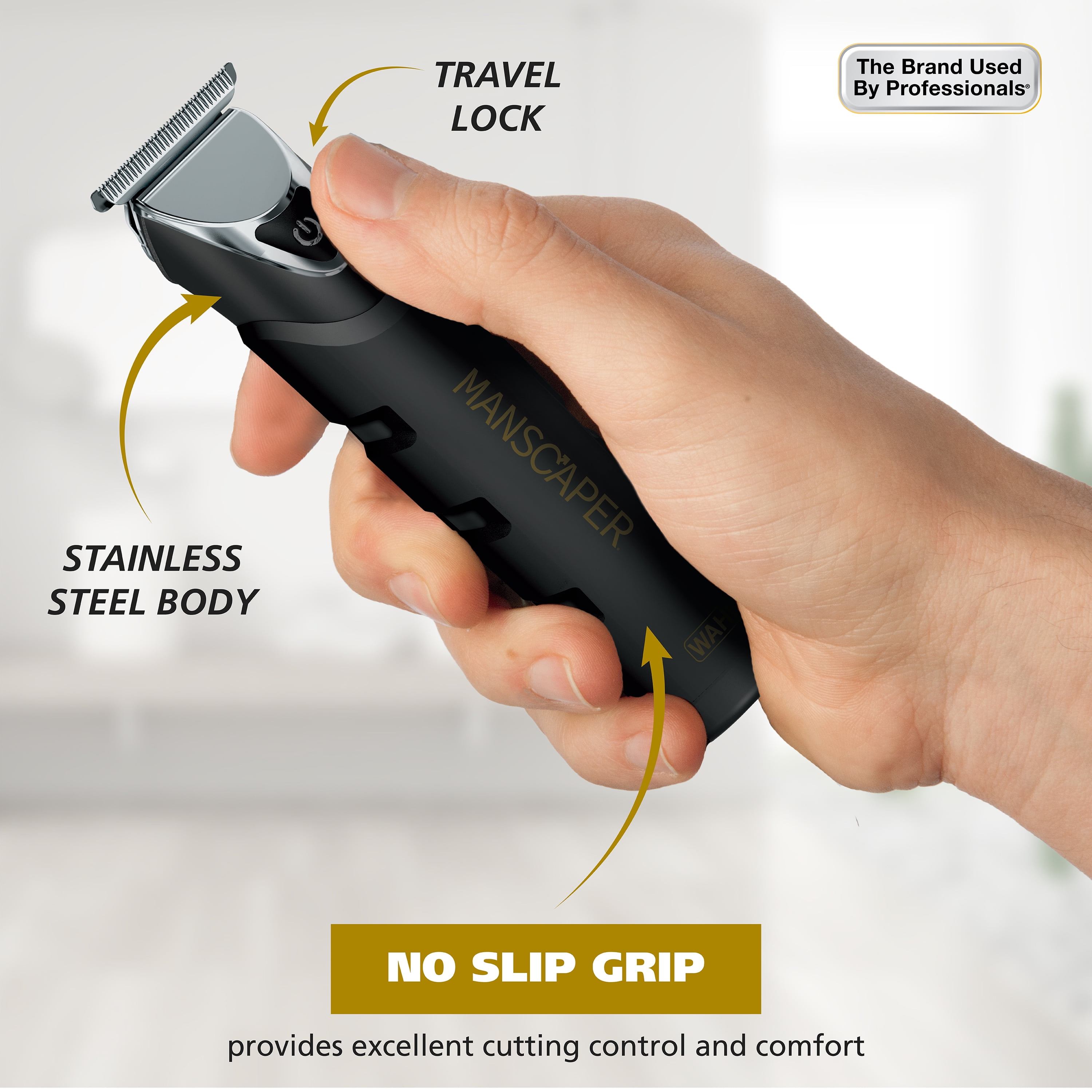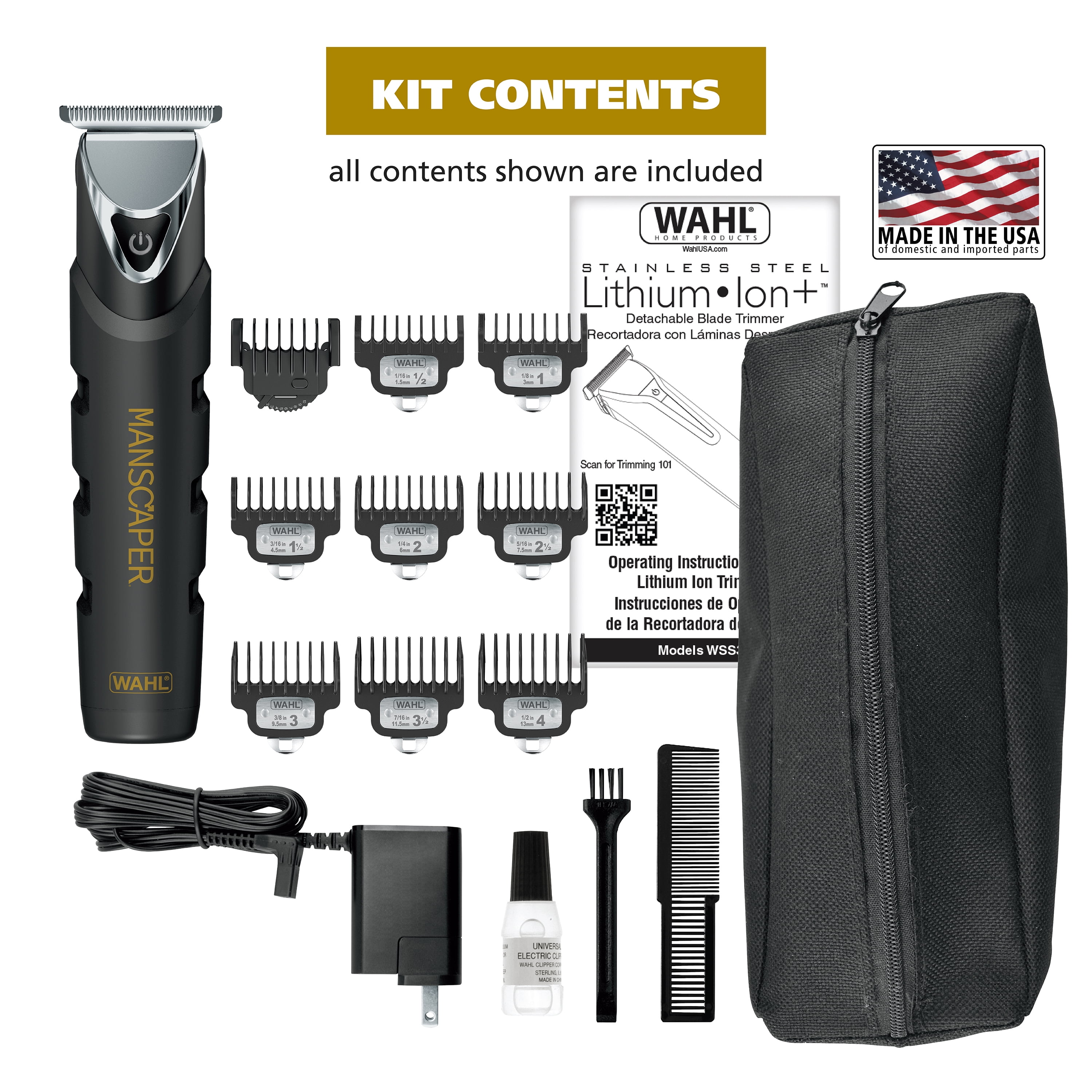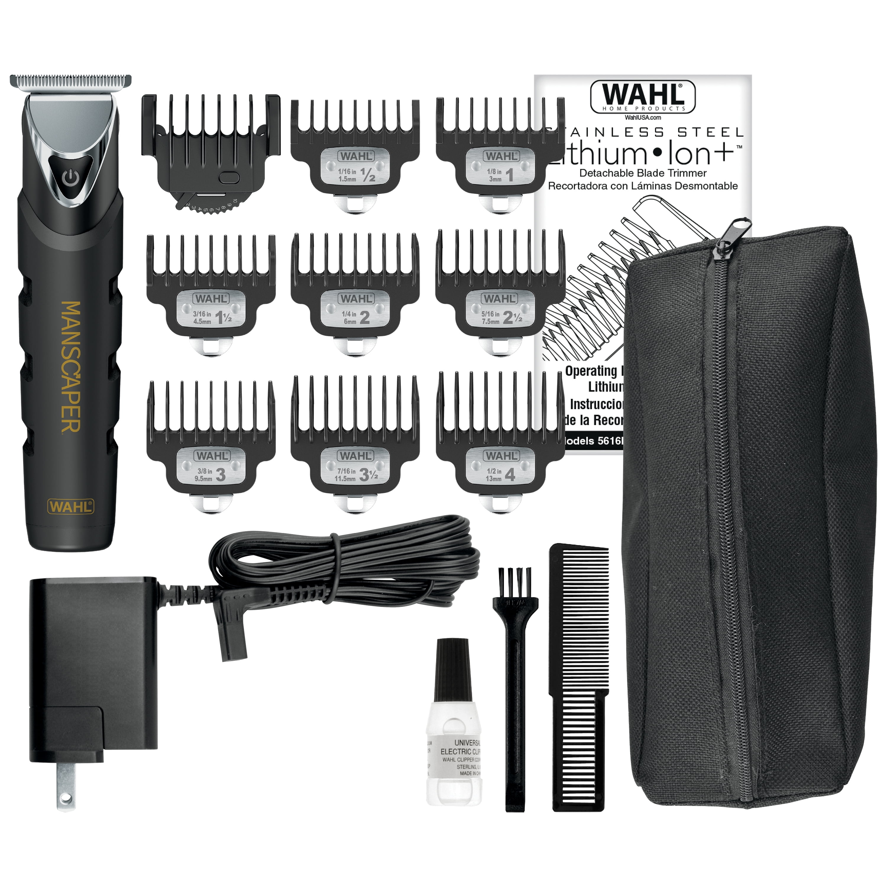 Wahl Manscaper Black Ops Trimmer for Men is great for grooming the hair anywhere. Black Ops Trimmer is fully water proof, allowing wet/dry trimming and shaving and convenient use anywhere. Wahl no-slip rubber grip and a solid stainless steel body allow for easy use and clean up at the sink or in the shower. Wahl Black Ops has diamond hard blade surface with extreme precision 2mm blade overlap, providing a 4x closer trim than a traditional blade. Premium protective guards for easy trimming and touch ups. The Black Ops is fully waterproof so you can use it anywhere.