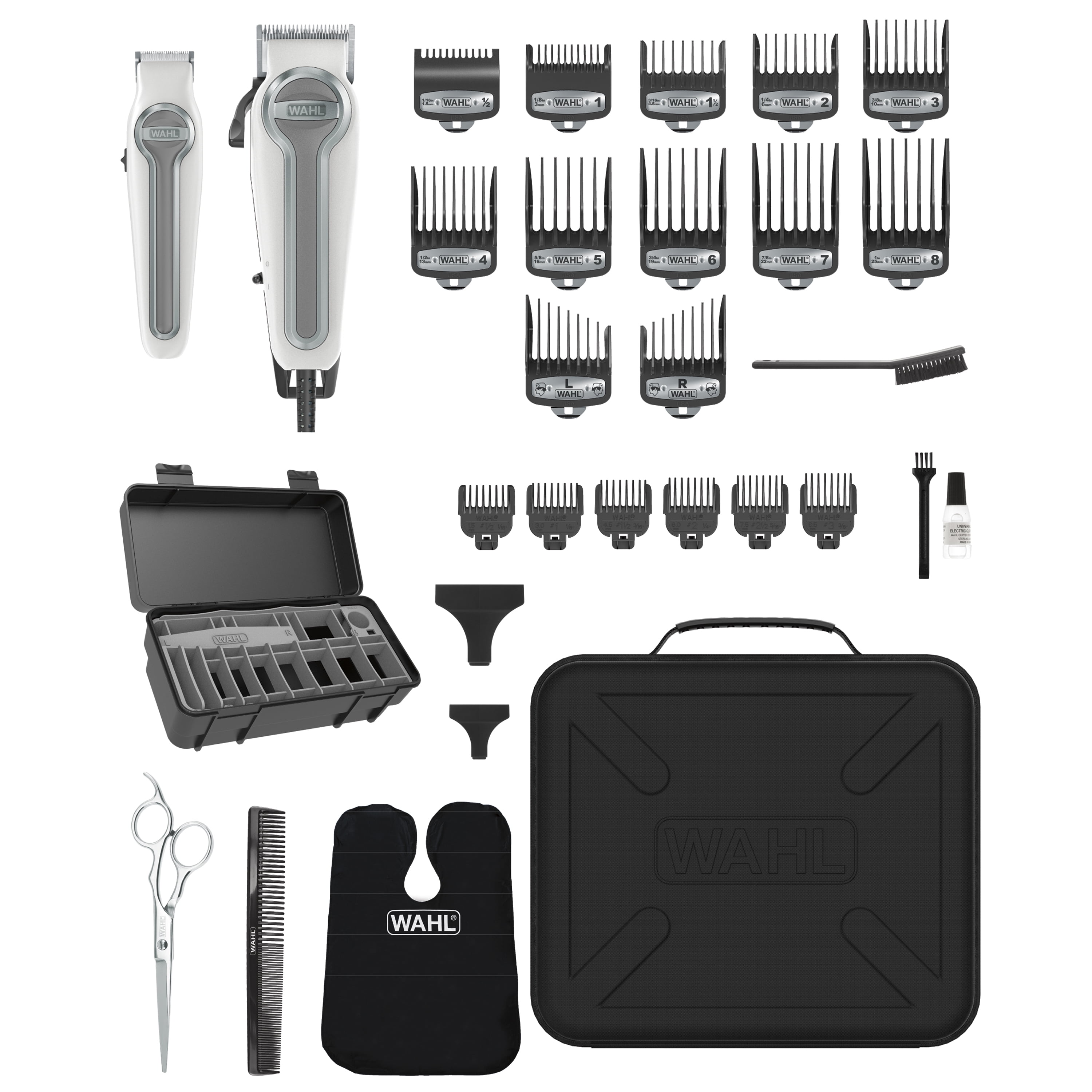 Wahls Best Motor – Ultra Power No-Snag Motor allows for exceptional power and durability and glides through the thickest hair without a snagging or pulling 12 Secure Snap guards – attachment guards with stainless steel attachment clips are included and range in size from 1/16″ to 1″ XL Power Cord – Our XL 8′ Power cord is braided for increased durability and flexibility during use Premium Shears – This kit features a pair of our premium stainless-steel barber shears that cut through thick hair with ease, a must have in a hair clipping and beard trimming kit Self-Sharpening Blades Clipper – Cord or Cordless use Touch Up Trimmer – AA Battery – 60 minute run time Store Case with Storage Caddy to organize attachments combs