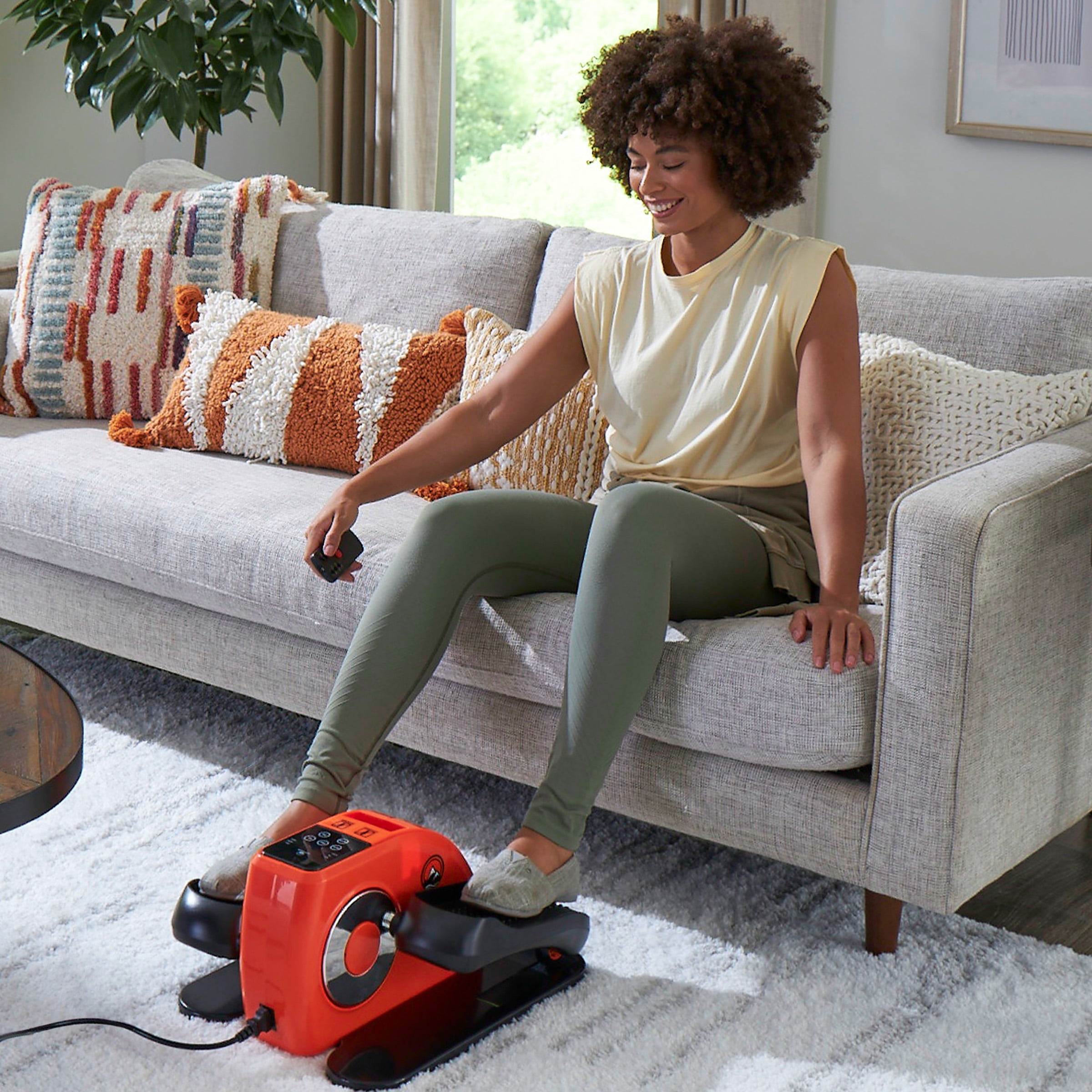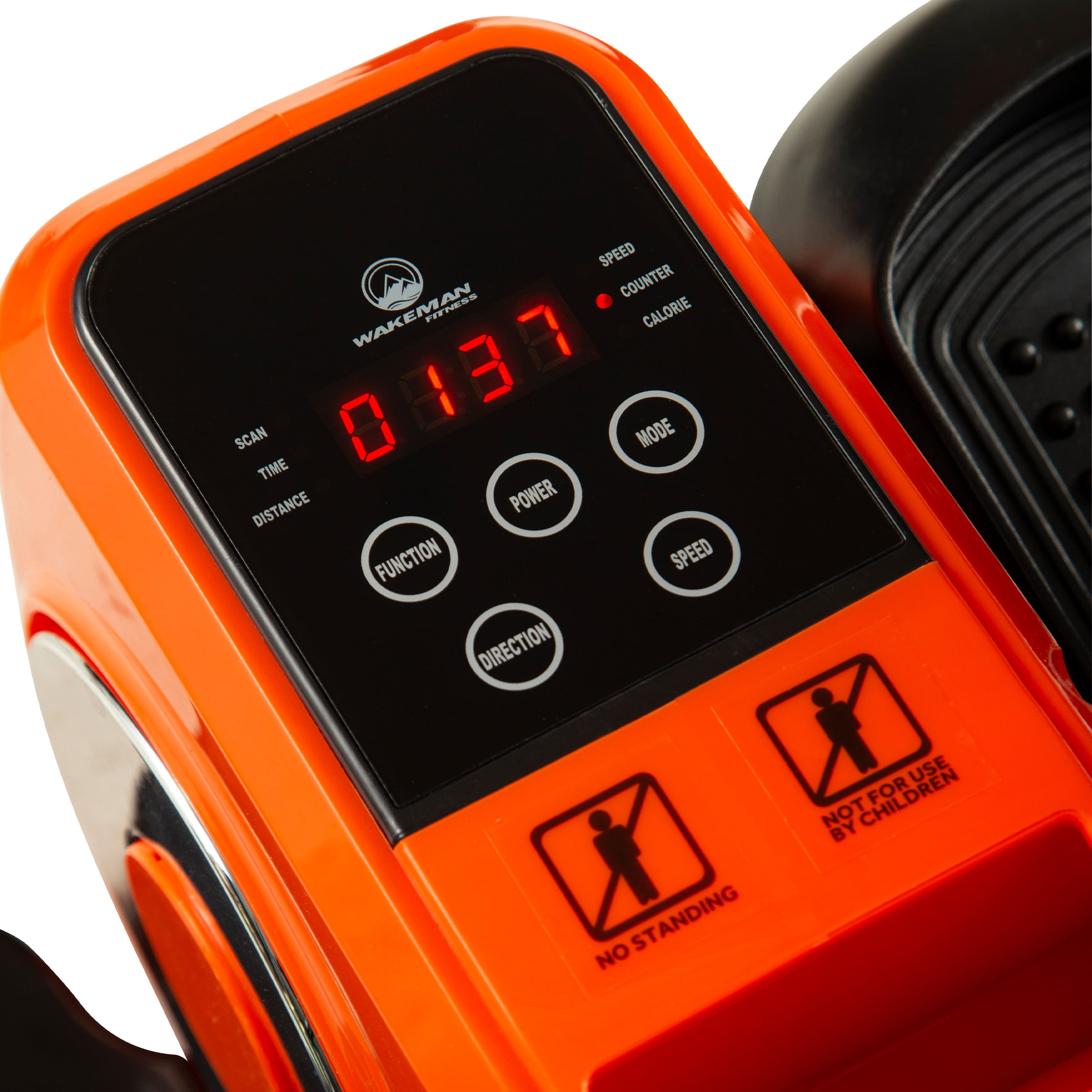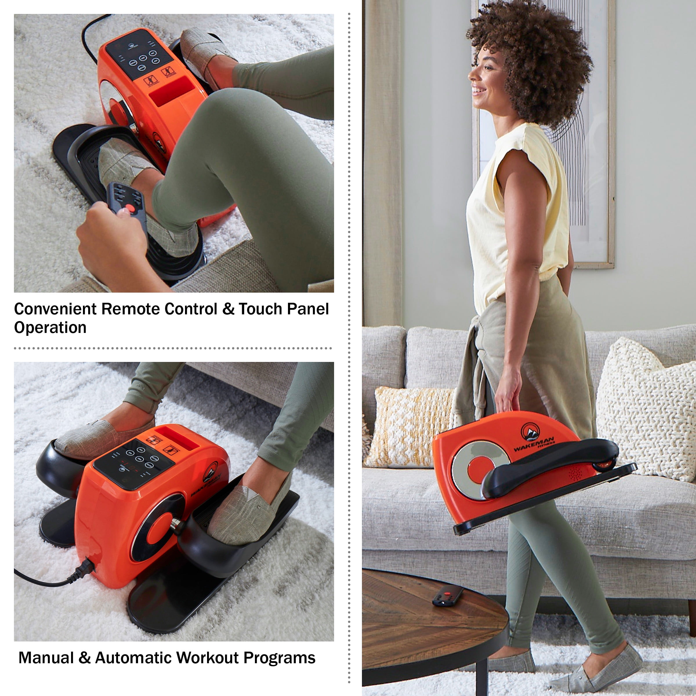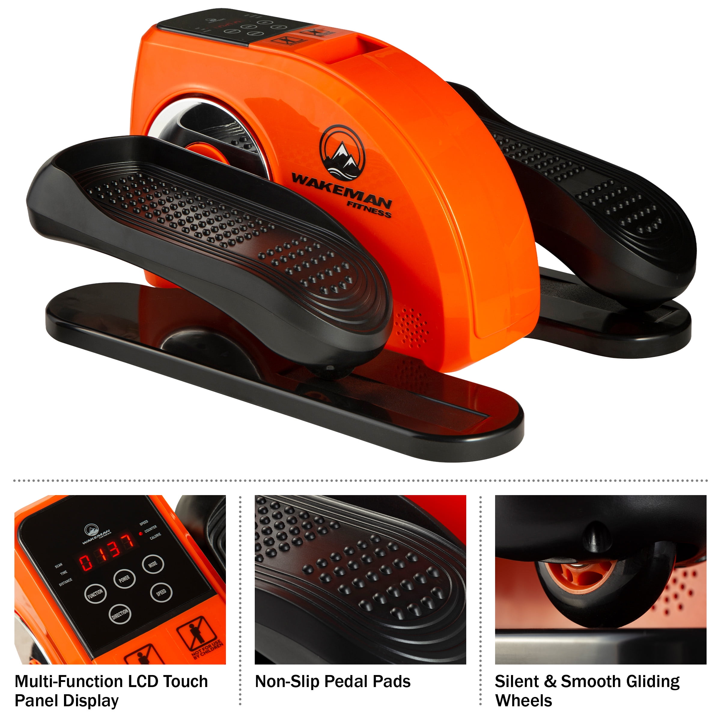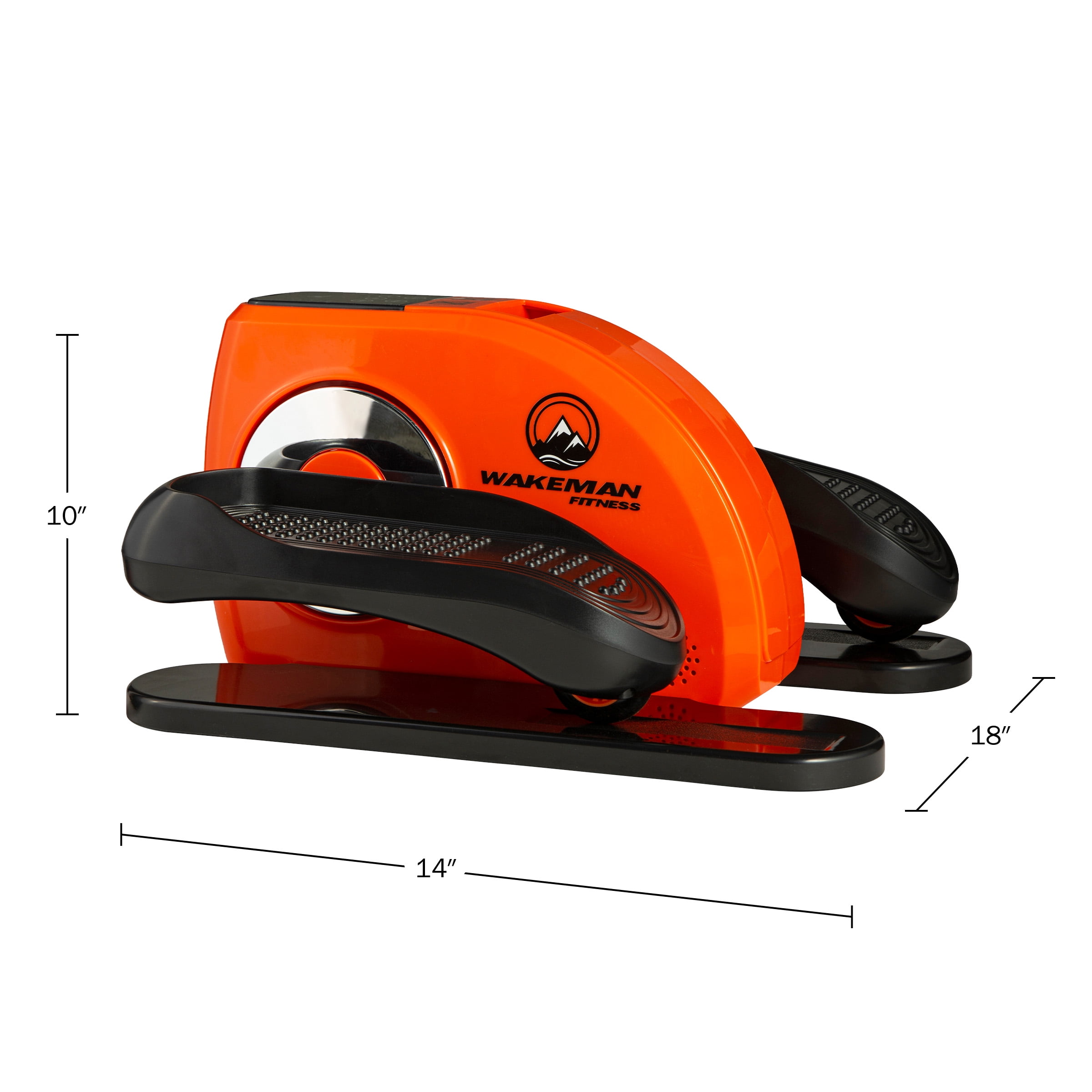 Burning calories and toning muscles has never been easier than with the Mini Elliptical Under Desk Exercise Machine by WAKEMAN. Use this motorized pedal exerciser to add a low-impact workout to any sedentary activity, whether you are working, reading, or even watching television. This at home workout equipment features a low profile and compact size that allow it to fit under most desks. The LED display monitor makes it easy to track your workouts, and it can be controlled with the touch panel or the convenient remote control.
