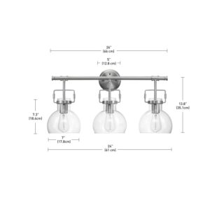 Globe Electric’s Walker 5-Piece All-In-One Bathroom Set is a stunning way to update your bathroom with one easy step. Complete with a towel bar, towel ring, robe hook, toilet paper holder, and 3-light vanity light, the Walker Set combines a contemporary design with an industrial pipe look easily creating a streamline and welcoming update for your home. With clear glass shades and a stunning brushed nickel finish, the 3-light vanity light can be set up and used with a compatible dimmer switch to dim the lights and create a warm ambiance for a relaxing bath (dimmer switch sold separately). While the pieces complement each other, you can split this set up and use them throughout your home. Think creatively, each item can have a different function! Try the towel ring in your kitchen for your pot-holders, the robe hook in your living room as an art hanger, and the towel bar in your closet as a shoe holder. Listen to your inner interior designer. Think outside the box!