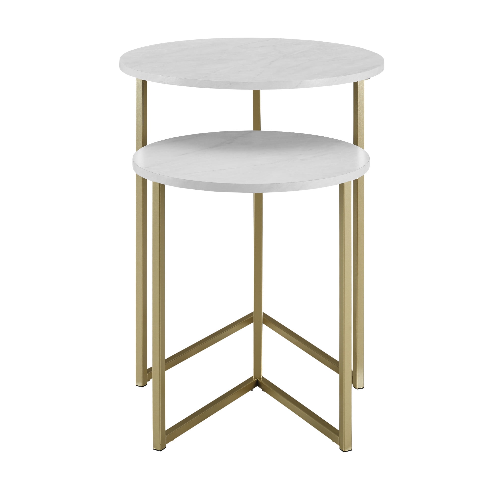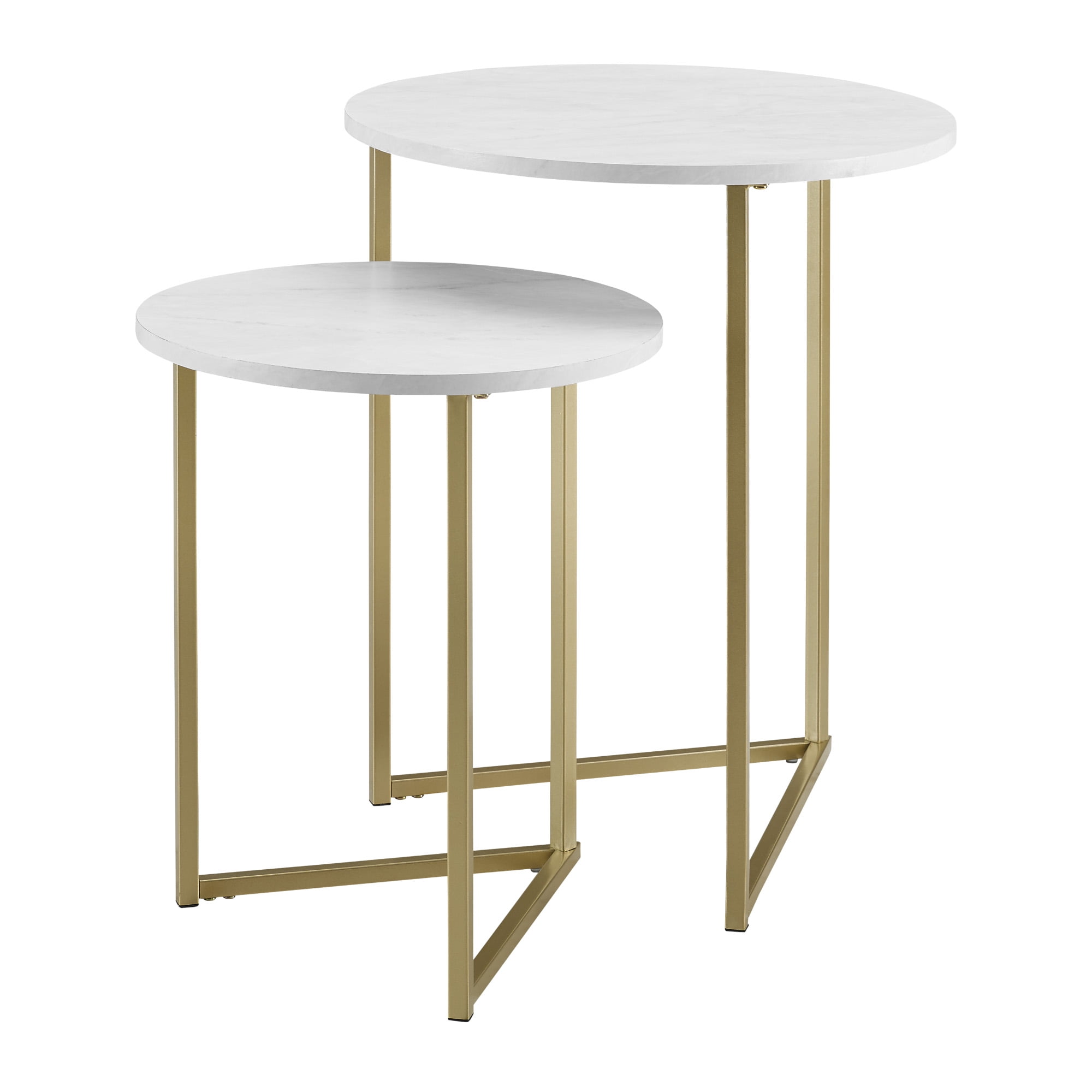 Walker Edison 2-Piece Round Nesting End Table, White Faux Marble/Gold