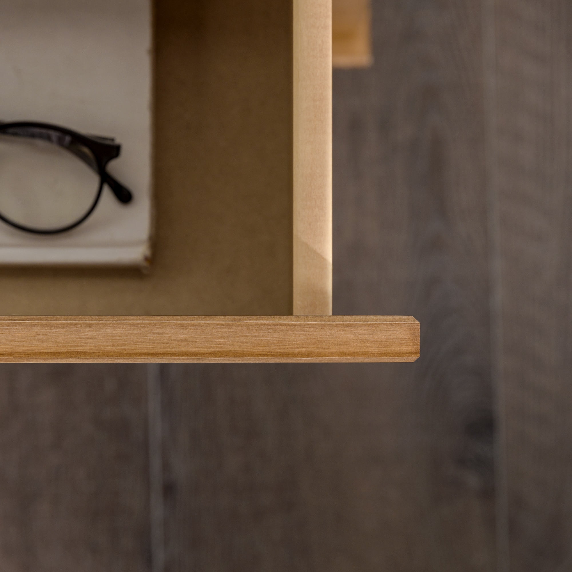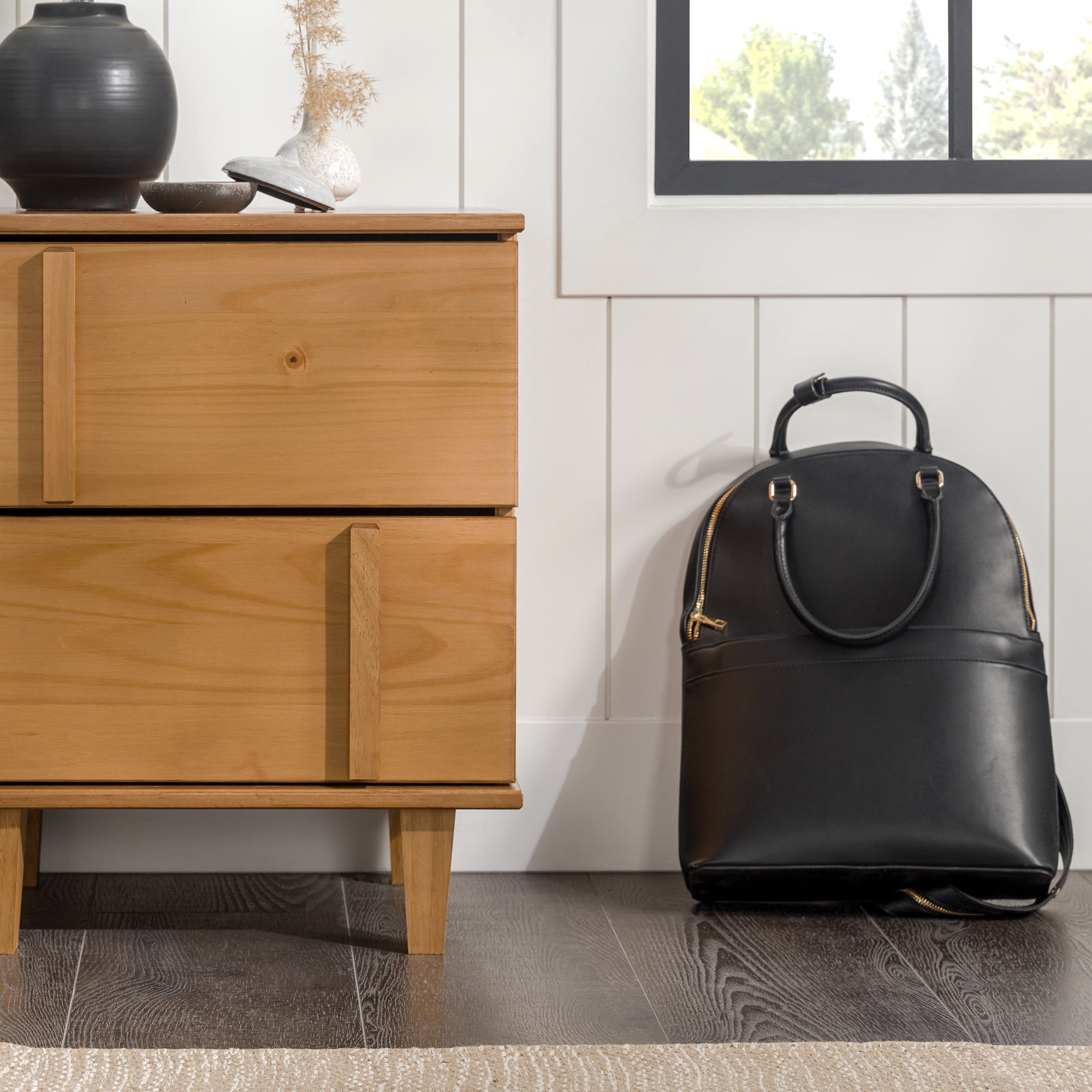 - Featuring unique, vertical drawer pulls