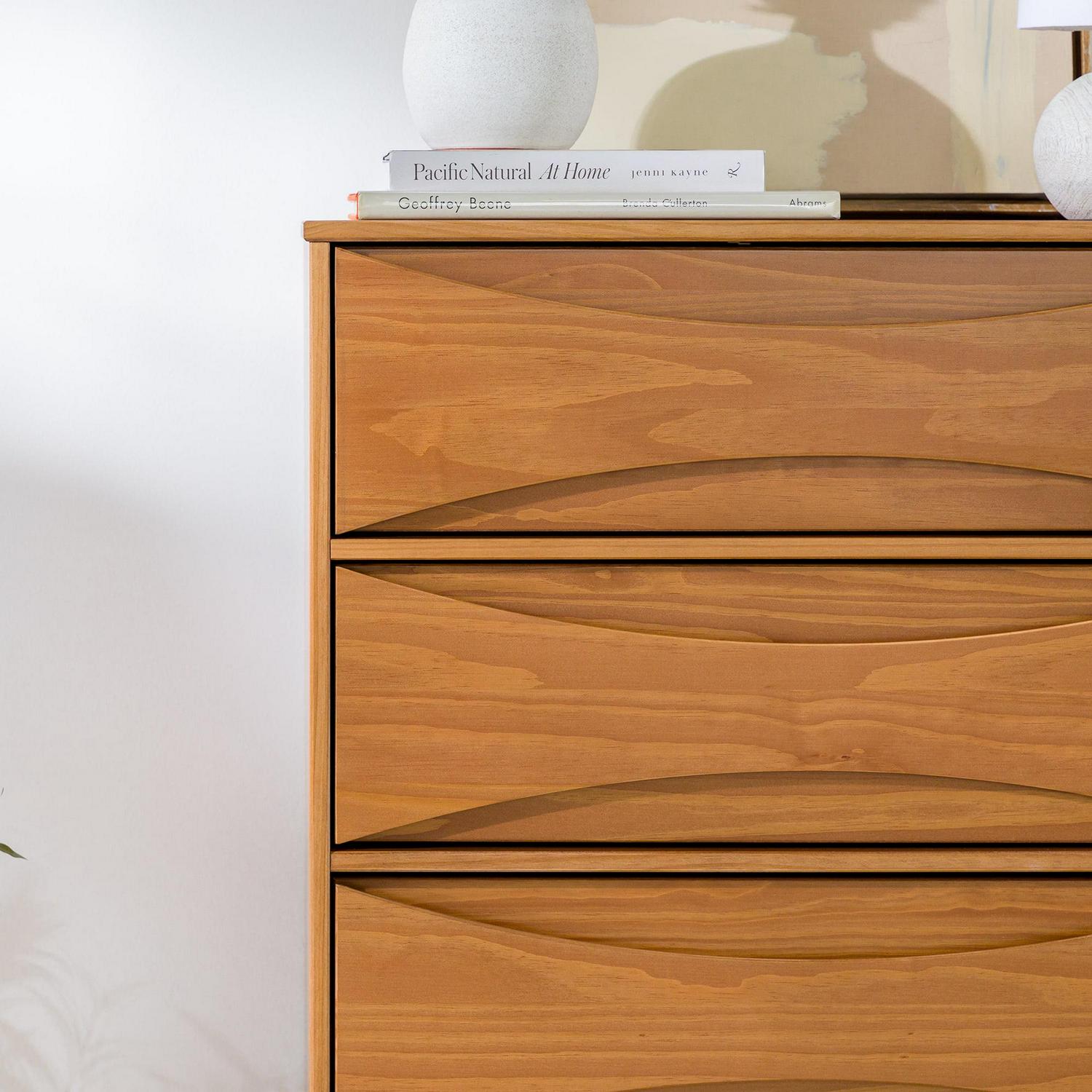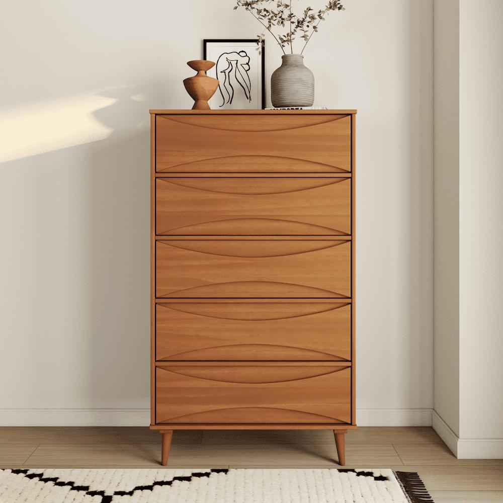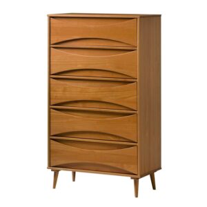 Walker Edison 30a Mid-Century Modern Curved Front 5-Drawer Dresser, Caramel