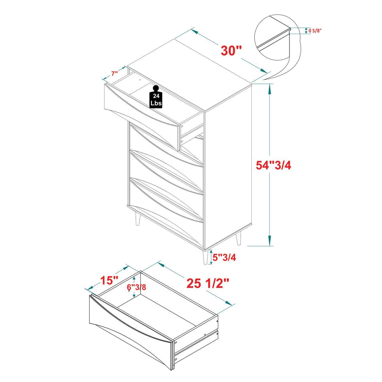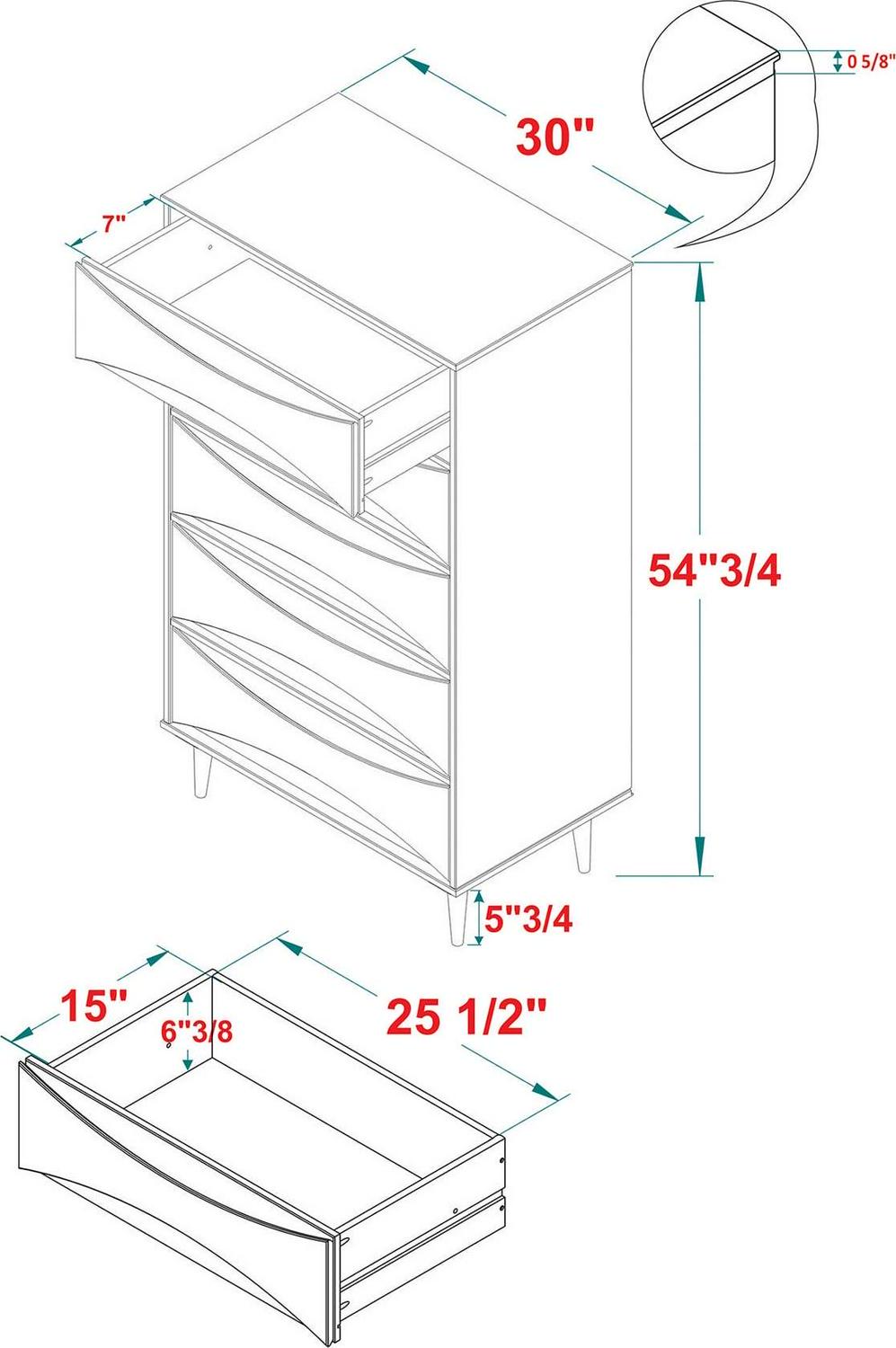 Add a stylish and practical dresser to your home with the Walker Edison 30 Mid-Century Modern Curved Front 5-Drawer Dresser. This eye-catching dresser features unique, curved detailing on the front of the drawers, which gives it a retro-inspired look that is sure to stand out. The tapered legs add an extra touch of style, while the five spacious drawers provide plenty of room for storing the essentials. Made from responsibly harvested solid pine wood, you can enjoy a dresser that is both environmentally friendly and long lasting.