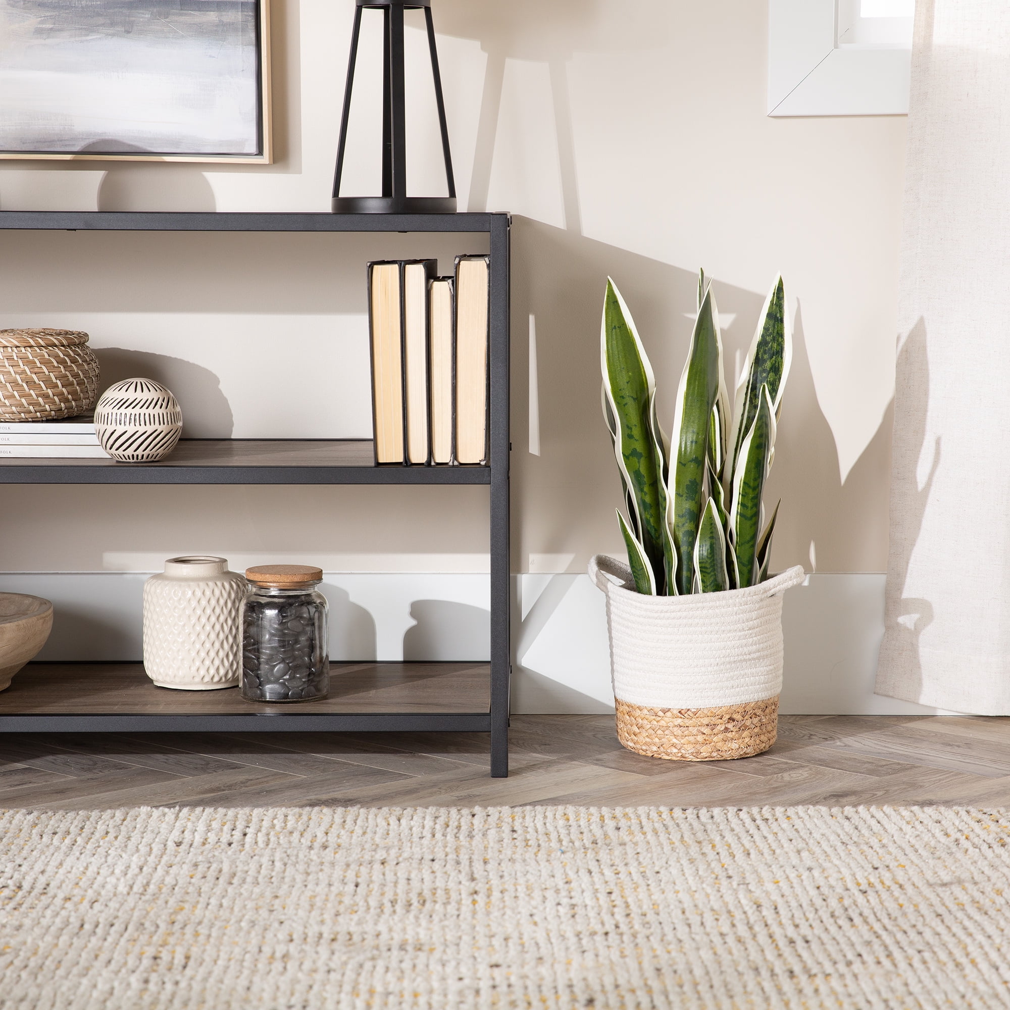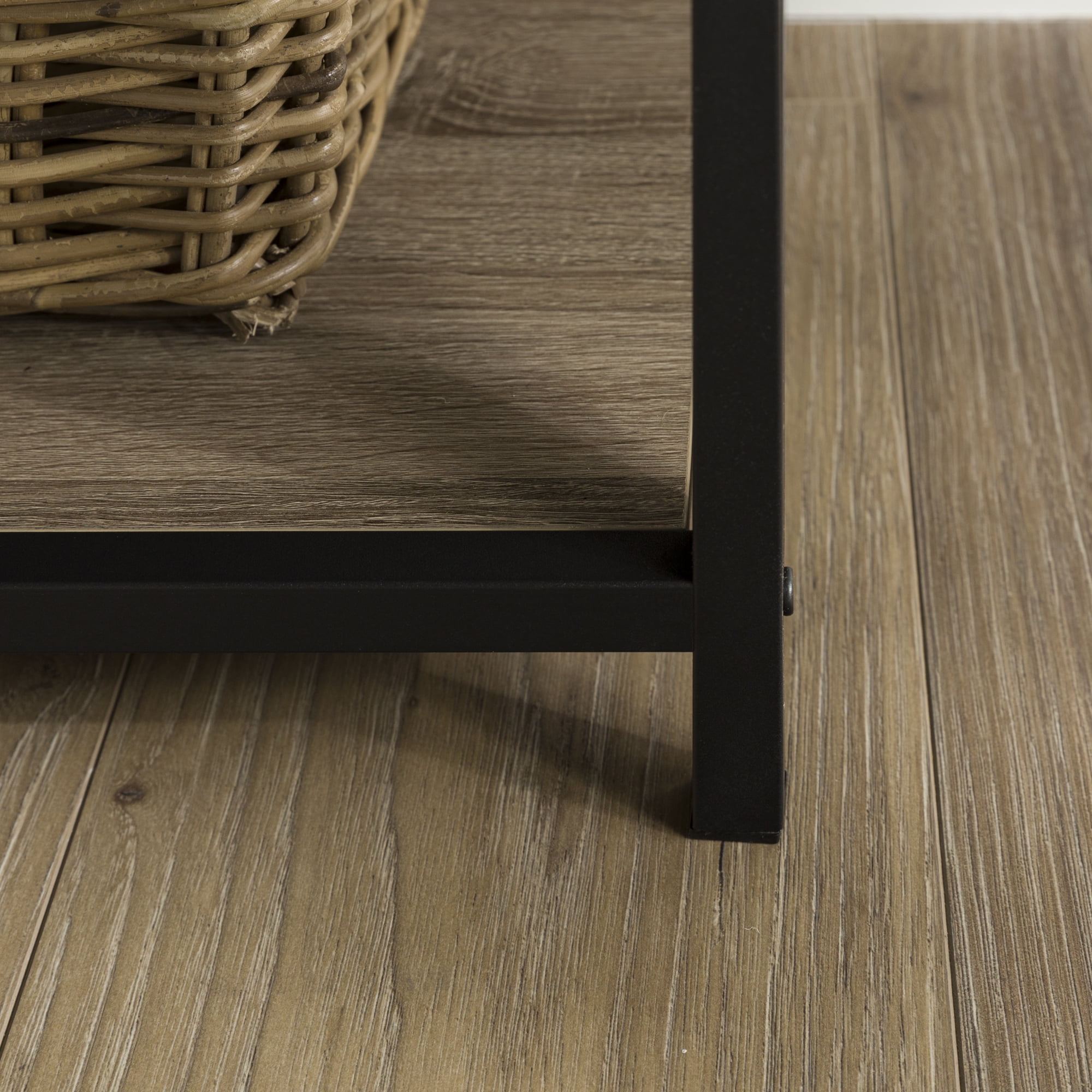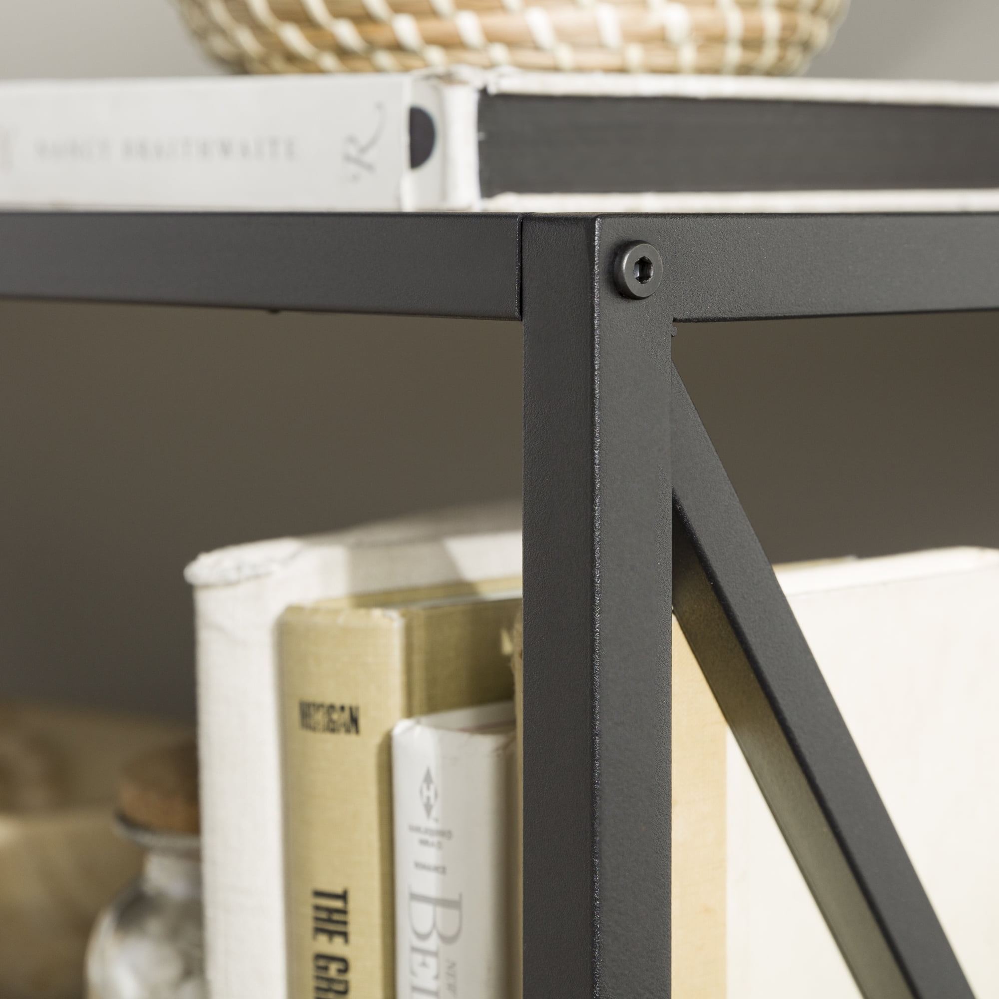 Step into the world of industrial design with the Frisco X-Frame Console by Walker Edison. This media console blends multiple materials to create a versatile piece that can be used in a wide variety of spaces. The frame of this horizontal shelf is made out of powder-coated metal. The shelves are constructed out of warp-resistant MDF and finished with a high-quality multi-grain laminate that delivers the high-end look you want at an affordable cost. The X-frame pattern on the sides of this entertainment console adds an urban flair. Use this console as a bookshelf, at the foot of a bed for extra storage, or in your living room where it can accommodate TVs up to 44-inches.