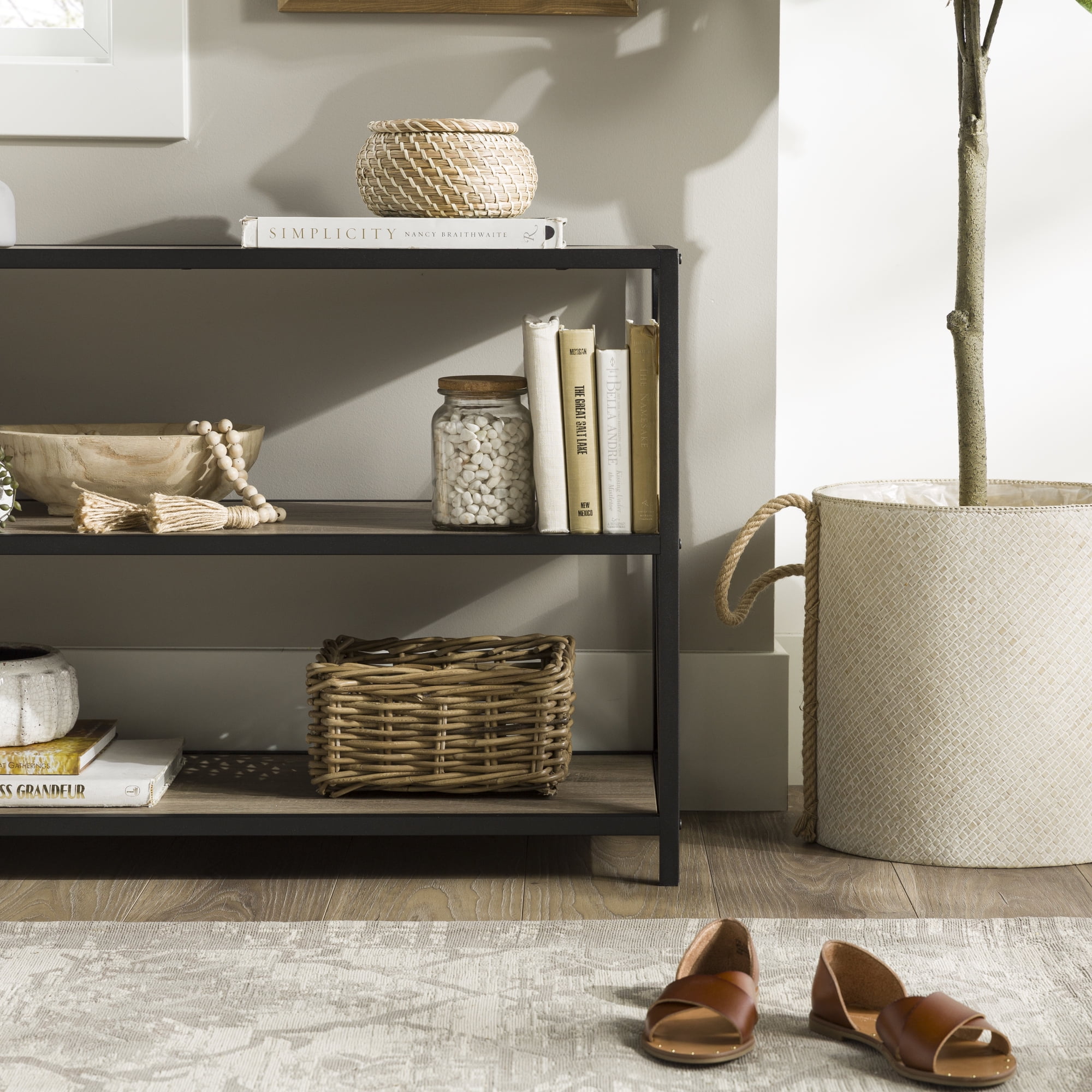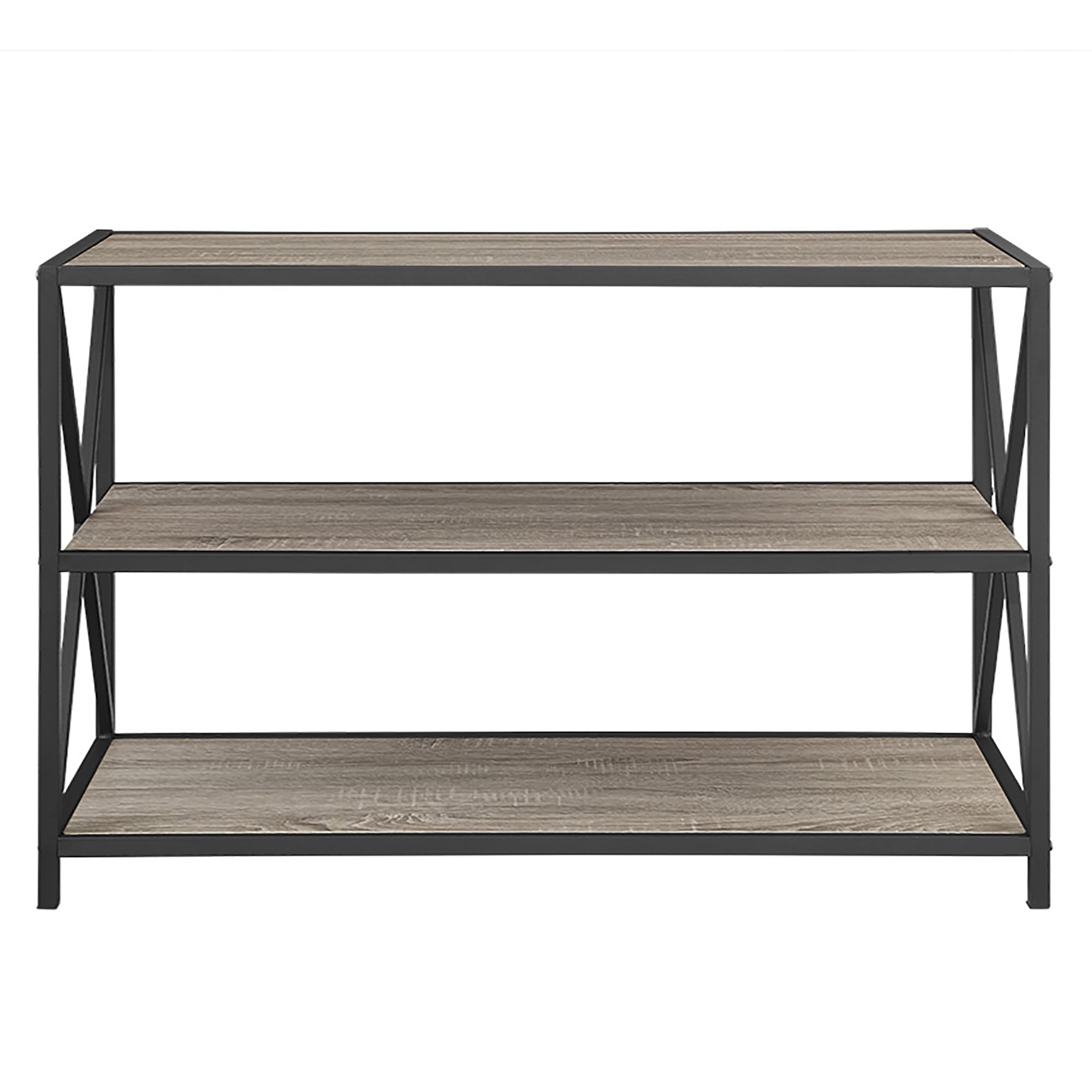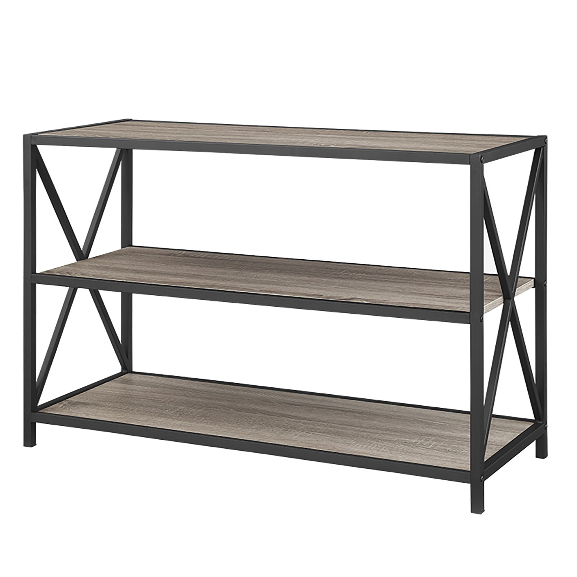 Walker Edison 40″ Industrial Frisco X-frame Bookcase, Driftwood / Black