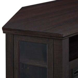 Limited space shouldn’t mean compromising on home furnishings; Create a cozy ambiance with the space-saving Walker Edison 48-in. Corner Fireplace Media TV Stand. Designed to fit snugly into a corner, this television stand combines your favorite home comforts into one transitional-style piece. It accommodates up to a 53-inch television and features an open shelf with cable management for your media components. Stay warm with the electric fireplace as you binge on the latest Netflix series. Plus, the two tempered, safety glass doors provide display space for knickknacks or your favorite DVDs. Not only is this television stand stylish, but its engineered wood construction – medium density fiberboard – is extremely strong and resistant to warping. It acts as a sturdy substrate for the laminate, which comes in your choice of available rich, textured finish, to increase the stand’s longevity. It doesn’t need venting, and a technician isn’t required for assembly; Simply plug it into a standard household outlet and relax! A note about wood composite or engineered wood: Often referred to as MDF, which stands for medium-density fiberboard, this type of wood composite is made of compressed wood fibers and has several benefits, including affordability, consistency, and resistance to warping or rotting over time.