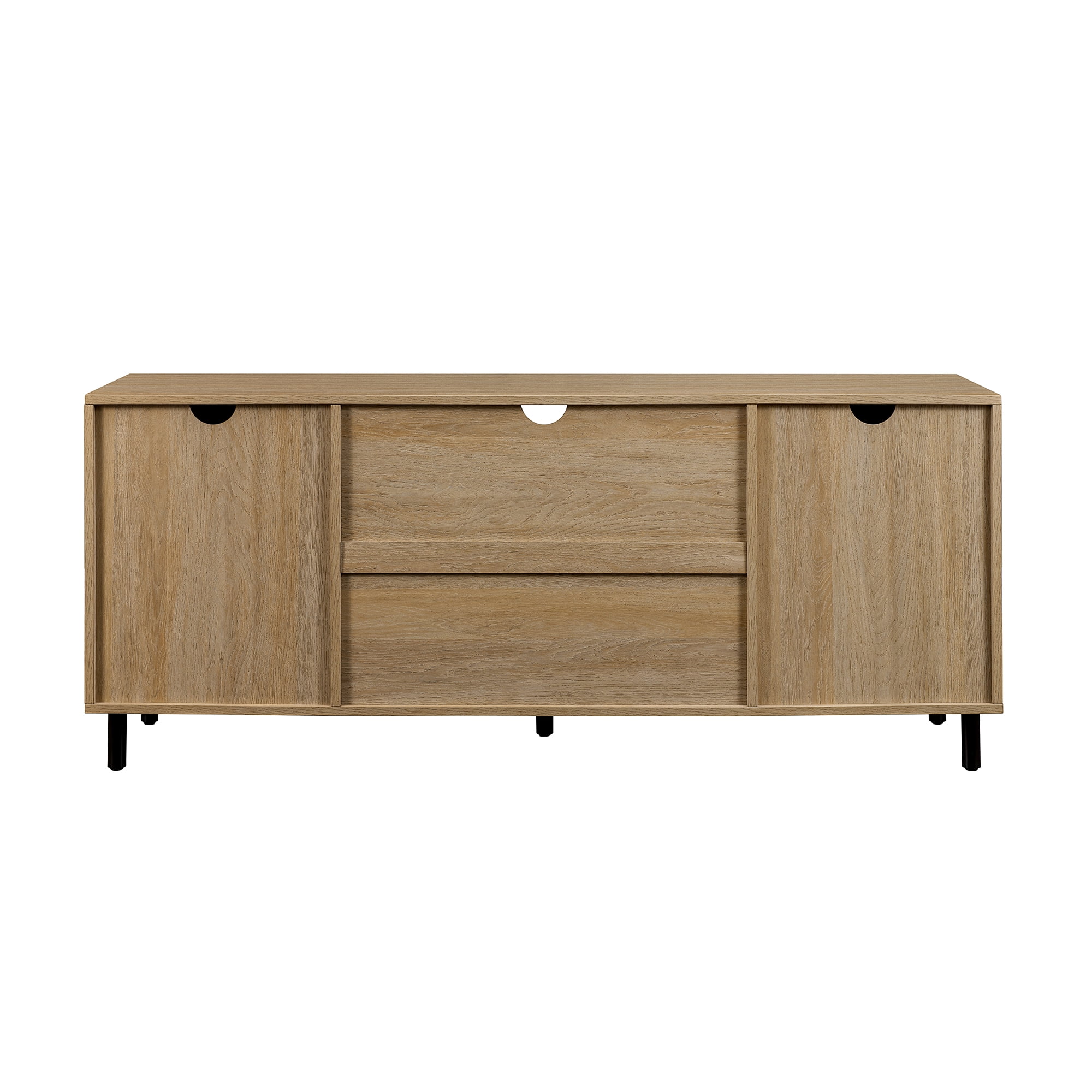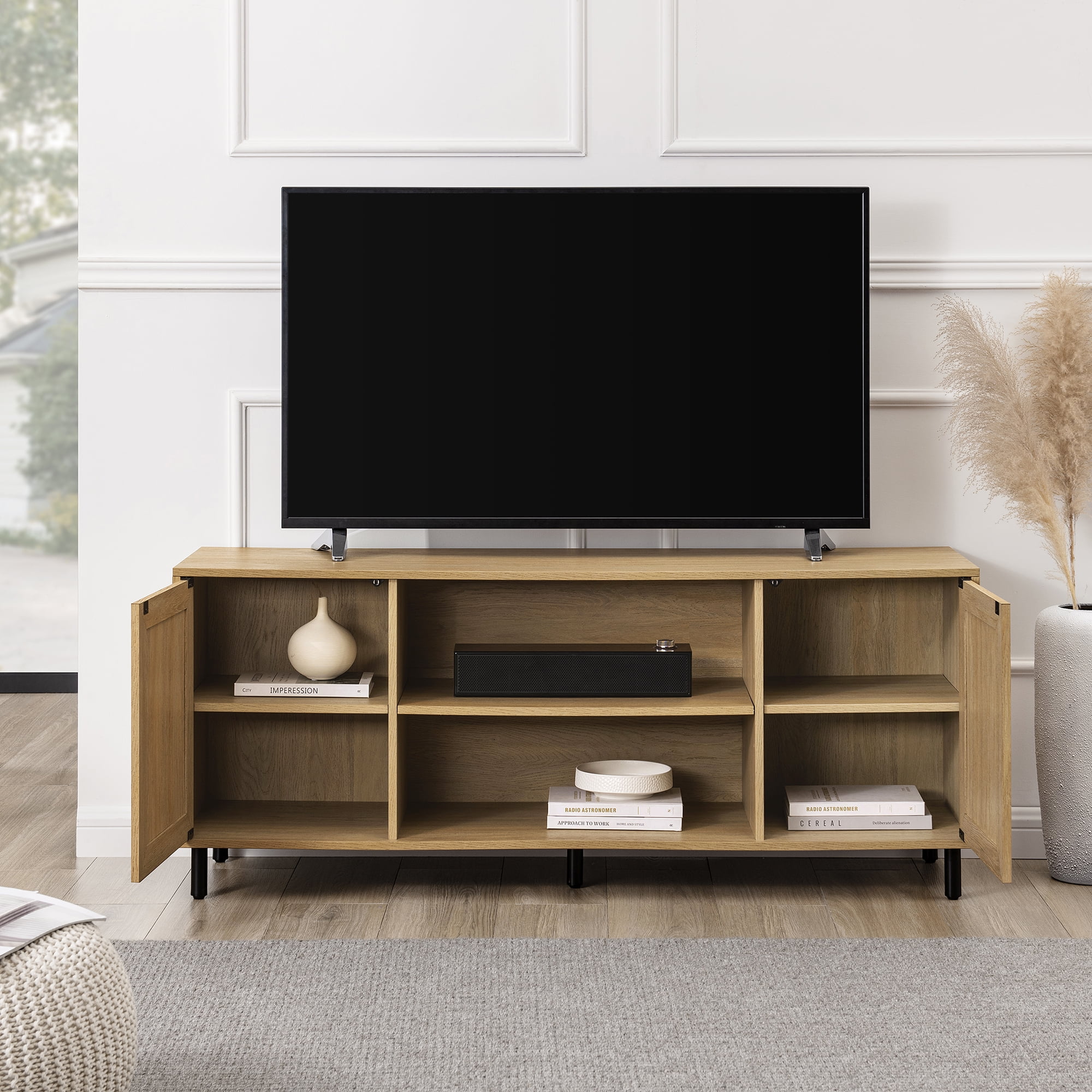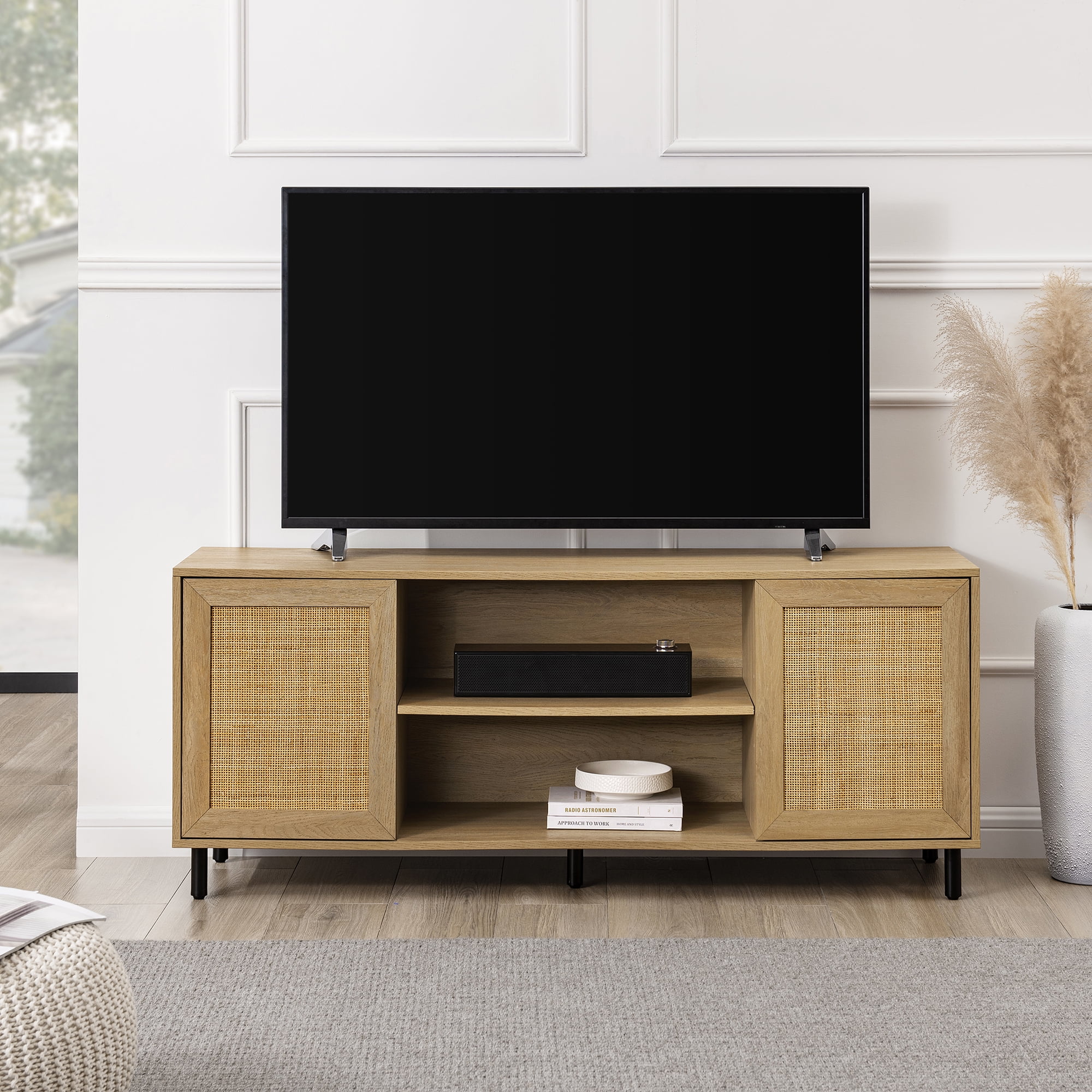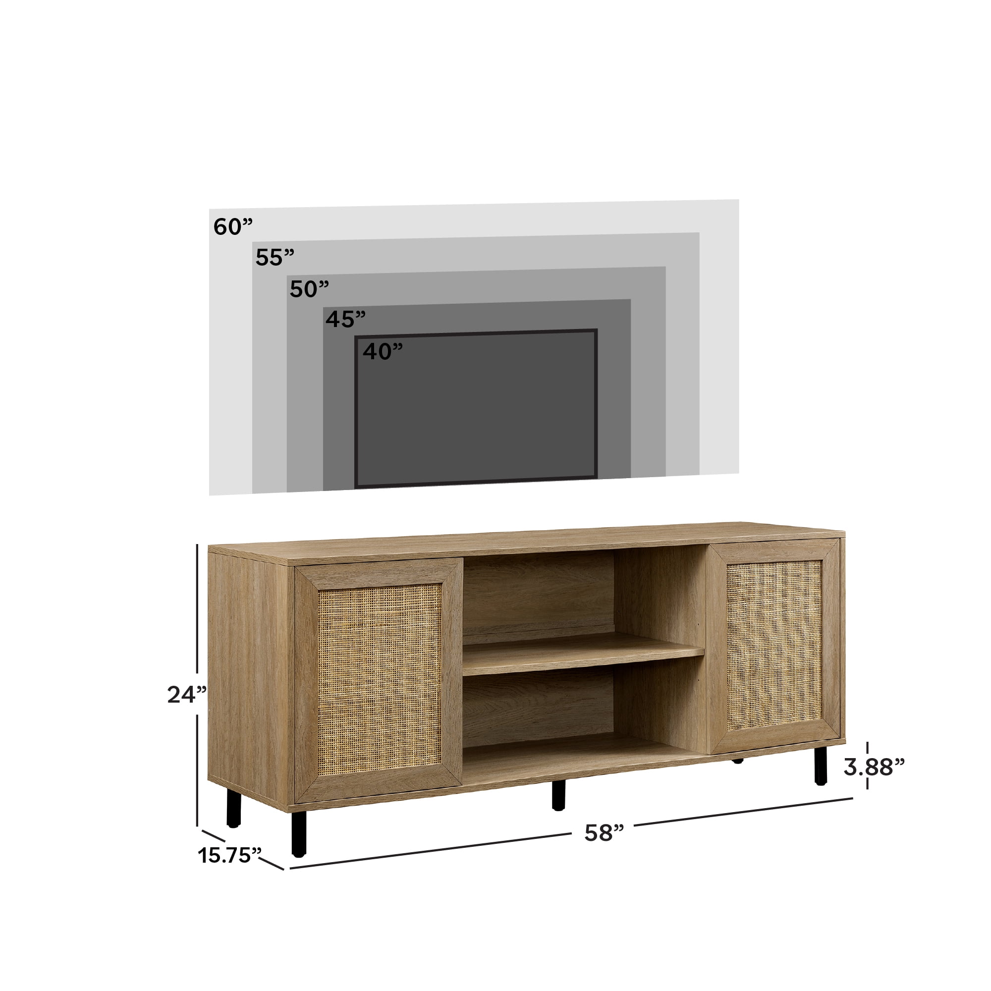 Walker Edison 58” Bohemian 2-Door Wood and Rattan TV Stand for TVs up to 60”, Coastal Oak