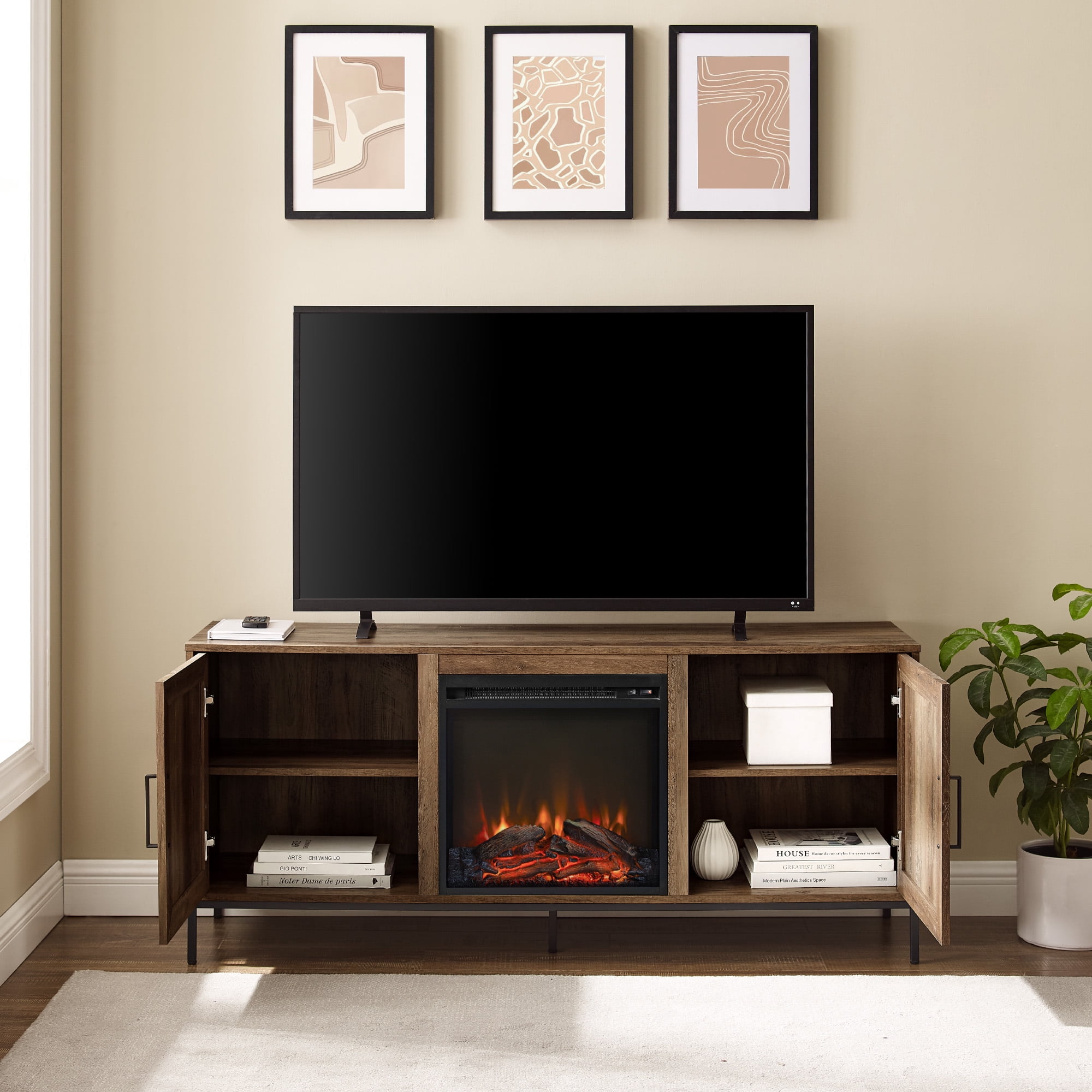 Turn on a cozy fireplace with just a touch of a button with the Walker Edison 58” Modern Rustic Electric Fireplace TV Stand. Enjoy a plug-in fireplace that brings faux flames and real heat to your living room—without having to call an electrician! The soft-close barn doors offer quiet functionality and help maintain the condition of the piece. Keep your tech and gadgets nice and tidy with cord management ports. Use the two adjustable shelves to cater to your unique storage needs. This TV stand is for TVs up to 65 inches.