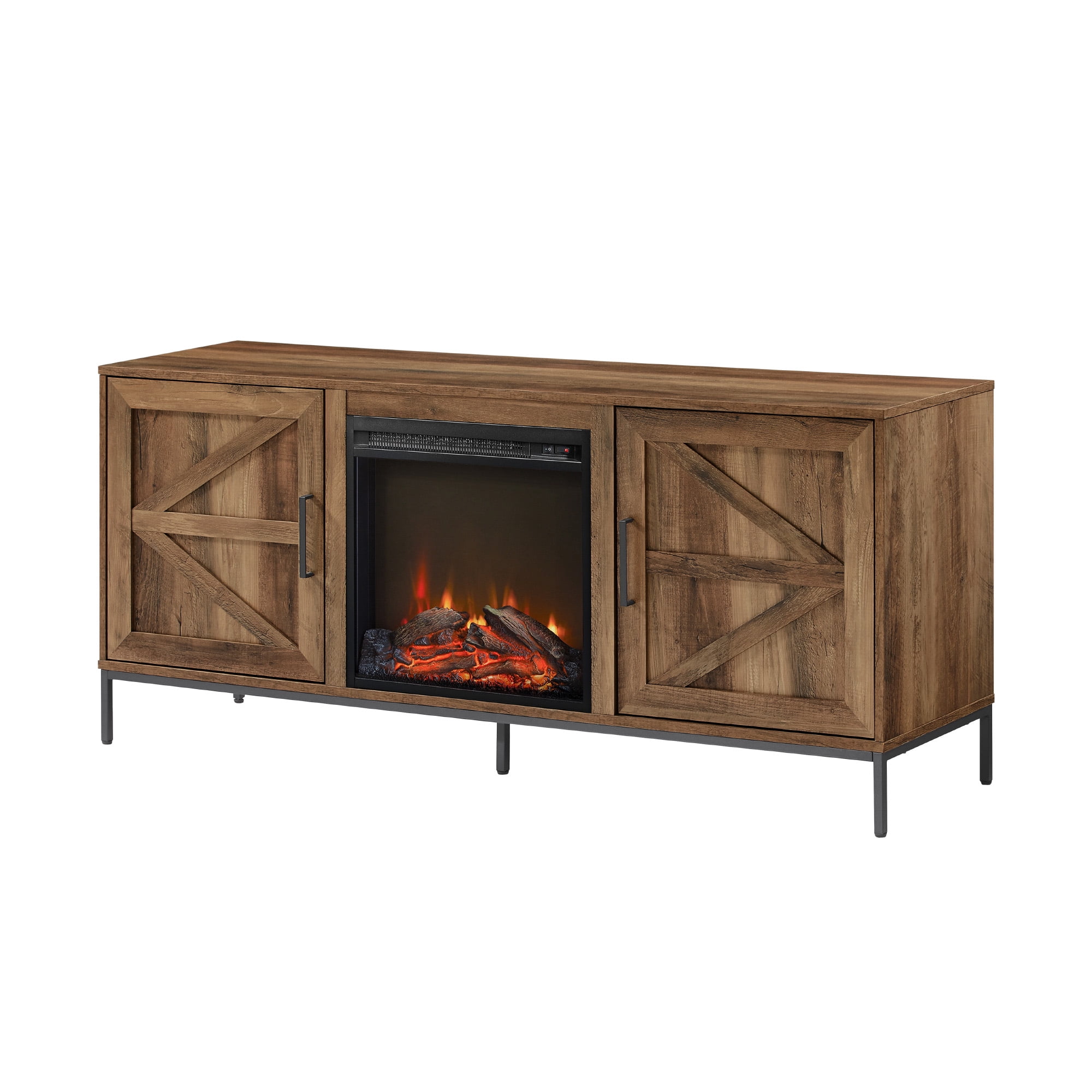 Walker Edison 58” Modern Rustic Electric Fireplace TV Stand, Rustic Oak