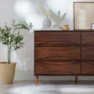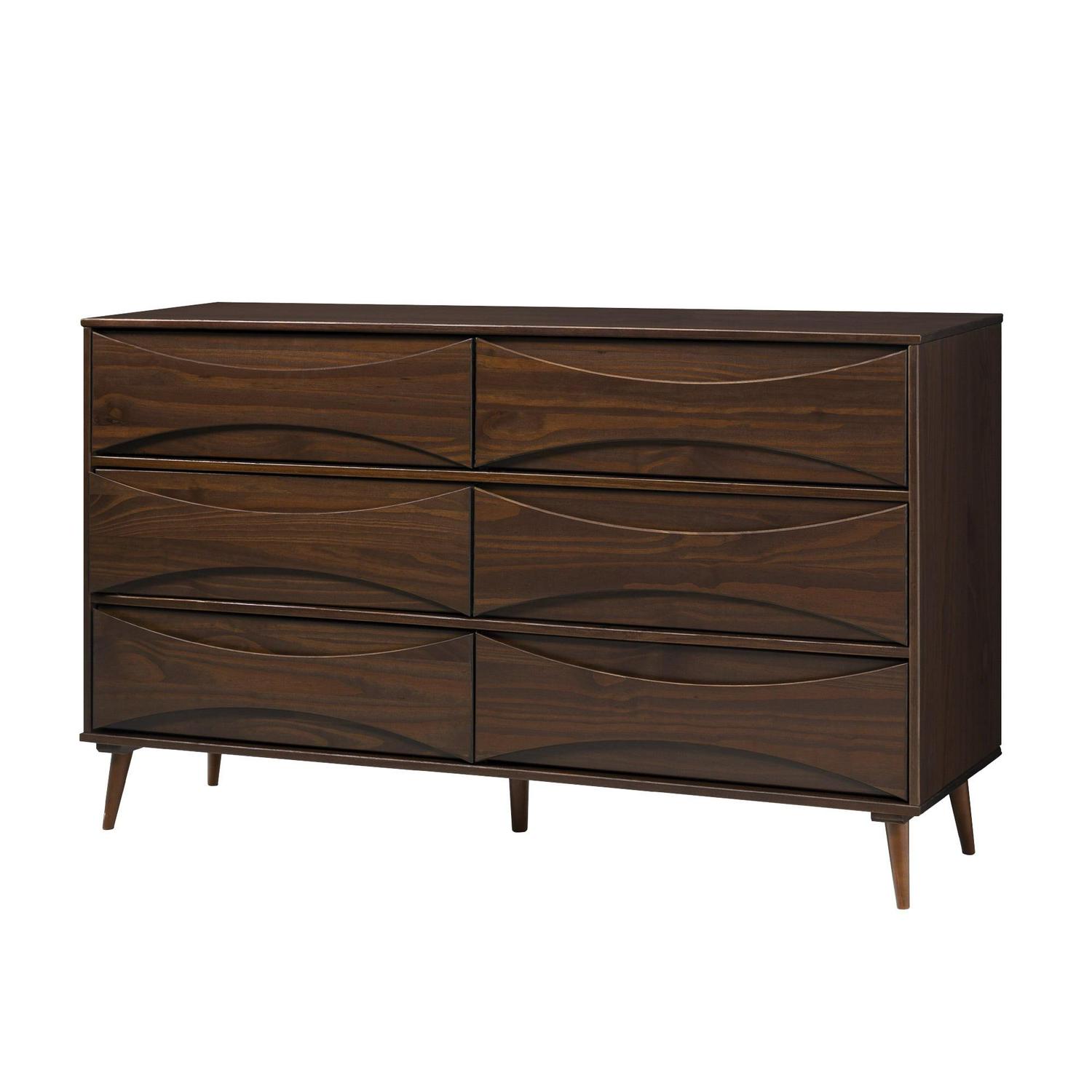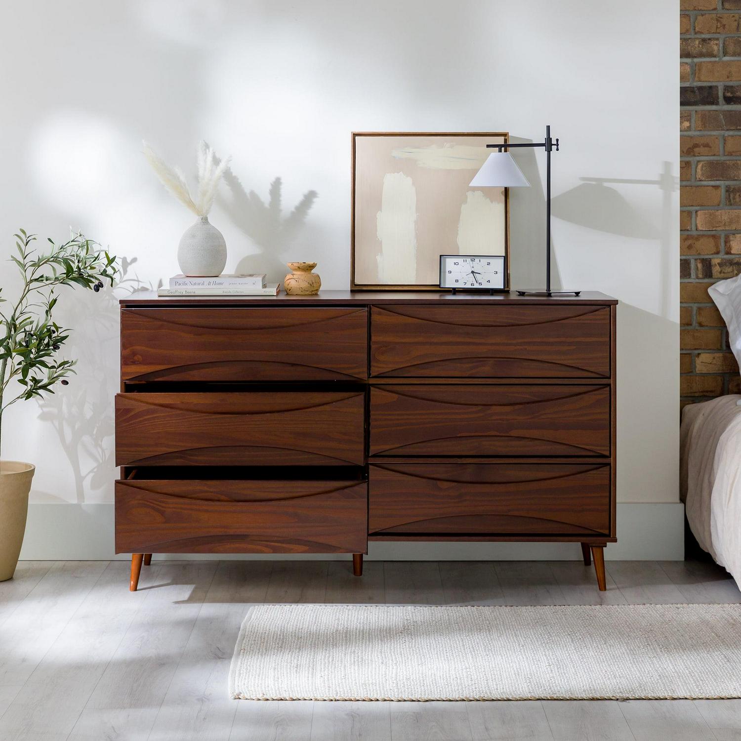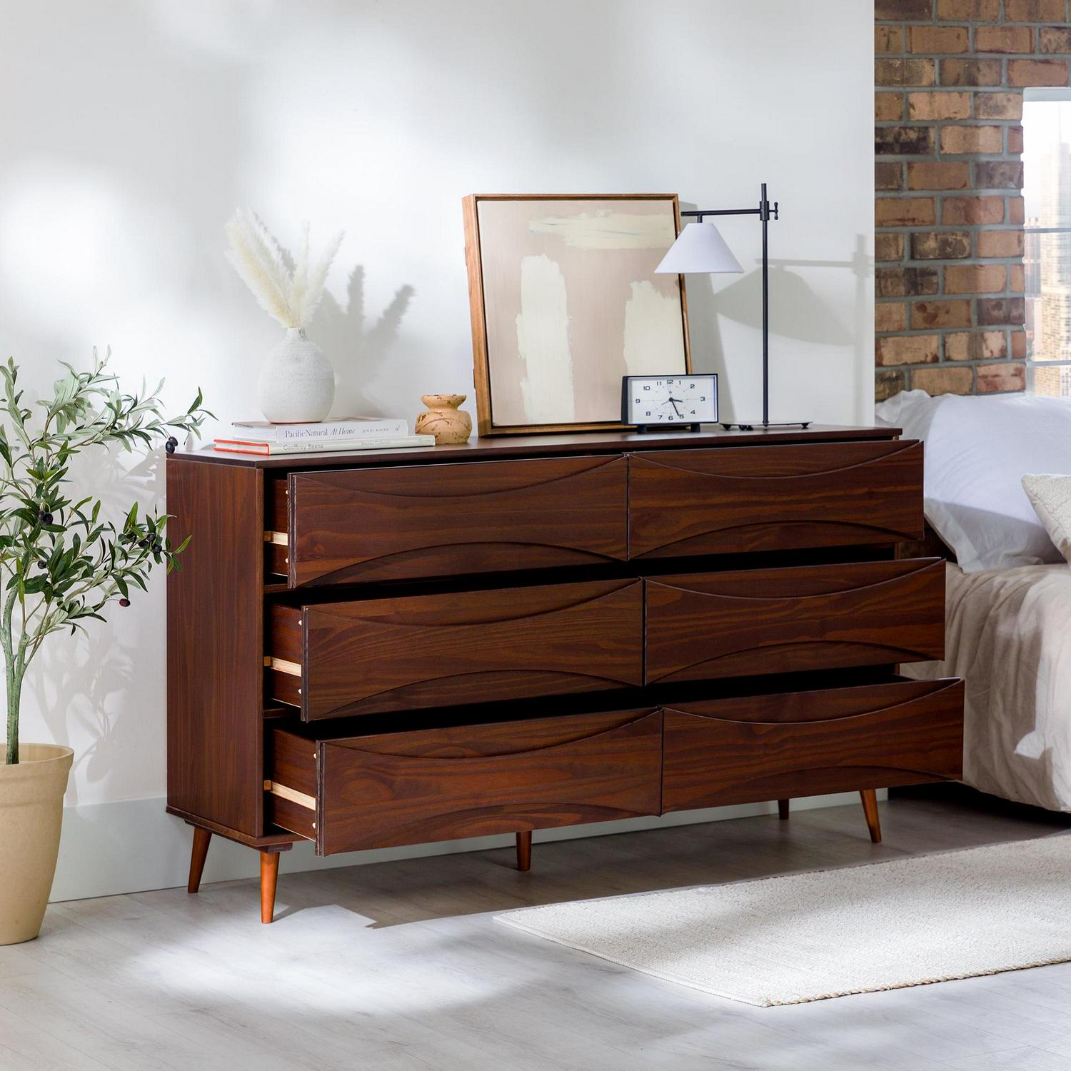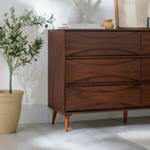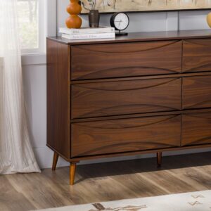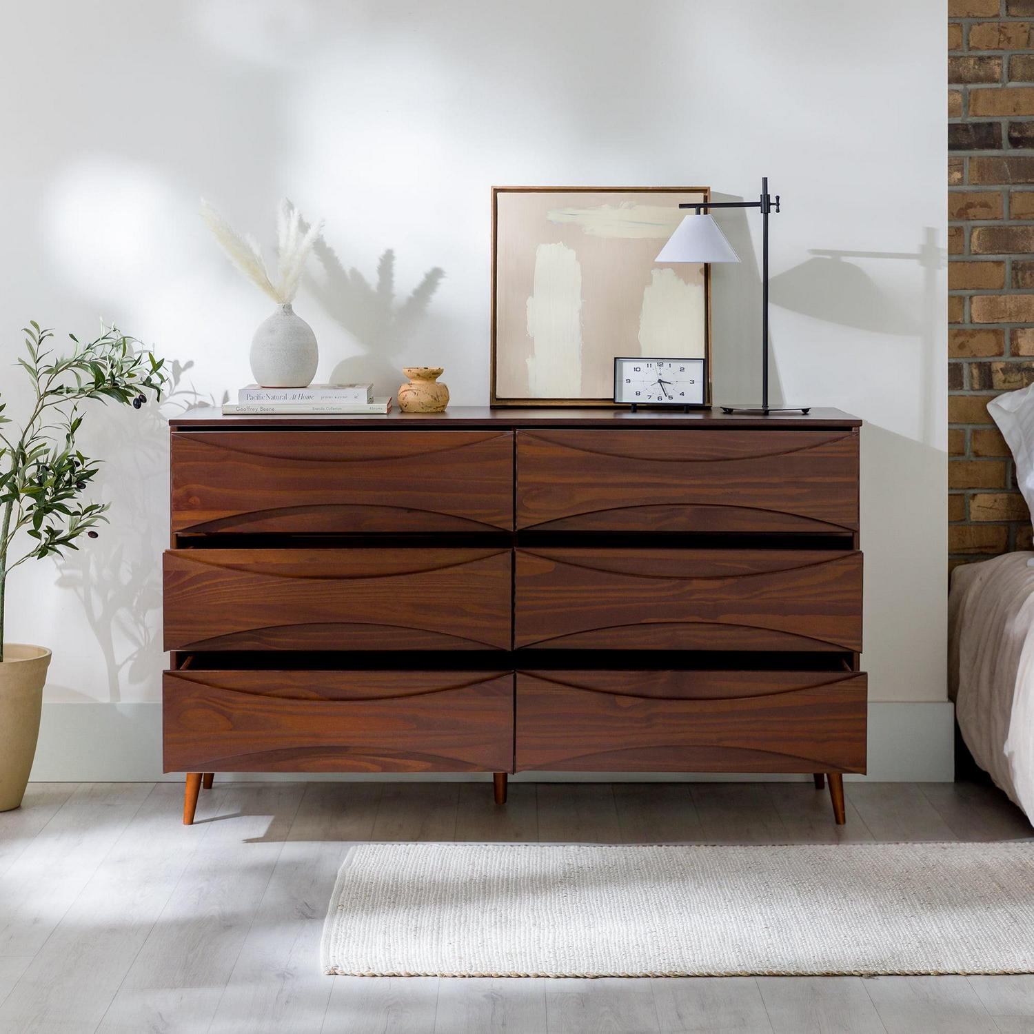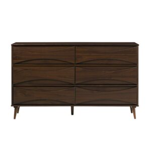 Walker Edison 58a Mid-Century Modern Curved Front 6-Drawer Dresser, Walnut