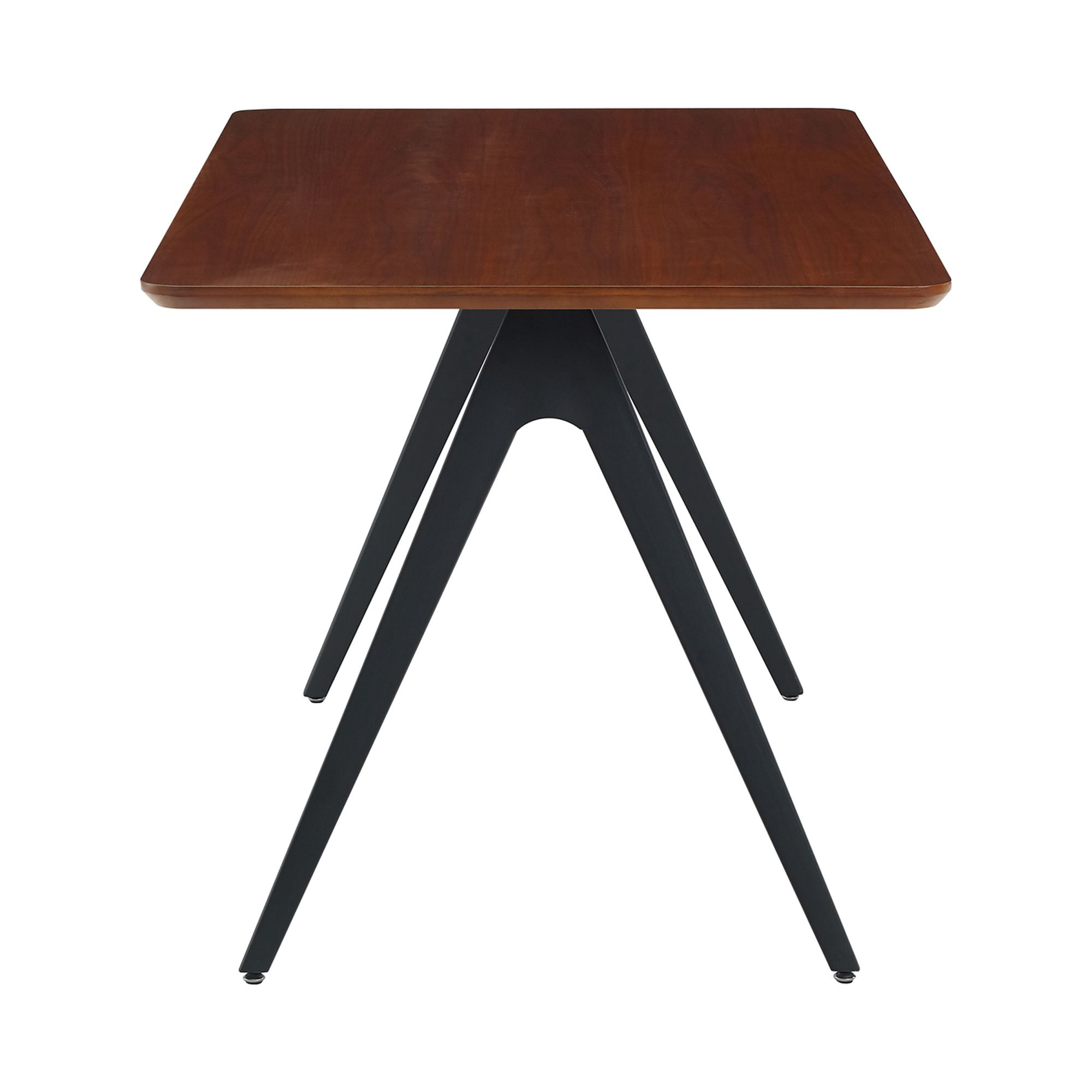 Industrial style Dark walnut finish Featuring contrasting metal accents for an eye-catching statement Tapered metal legs for a Japandi-inspired aesthetic Wide tabletop perfect for gatherings, game nights, and crafting Perfect for dining rooms or craft rooms Sits 6 people comfortably Versatile silhouette that fits in with urban, Japandi, and modern-styled homes Made from warp-resistant MDF wood, durable laminate, and powder-coated steel Ships ready-to-assemble with step-by-step instructions Assembled dimensions: 30″ H x 60″ L x 32″ W Packaged dimensions: 5″ H x 64″ L x 36″ W