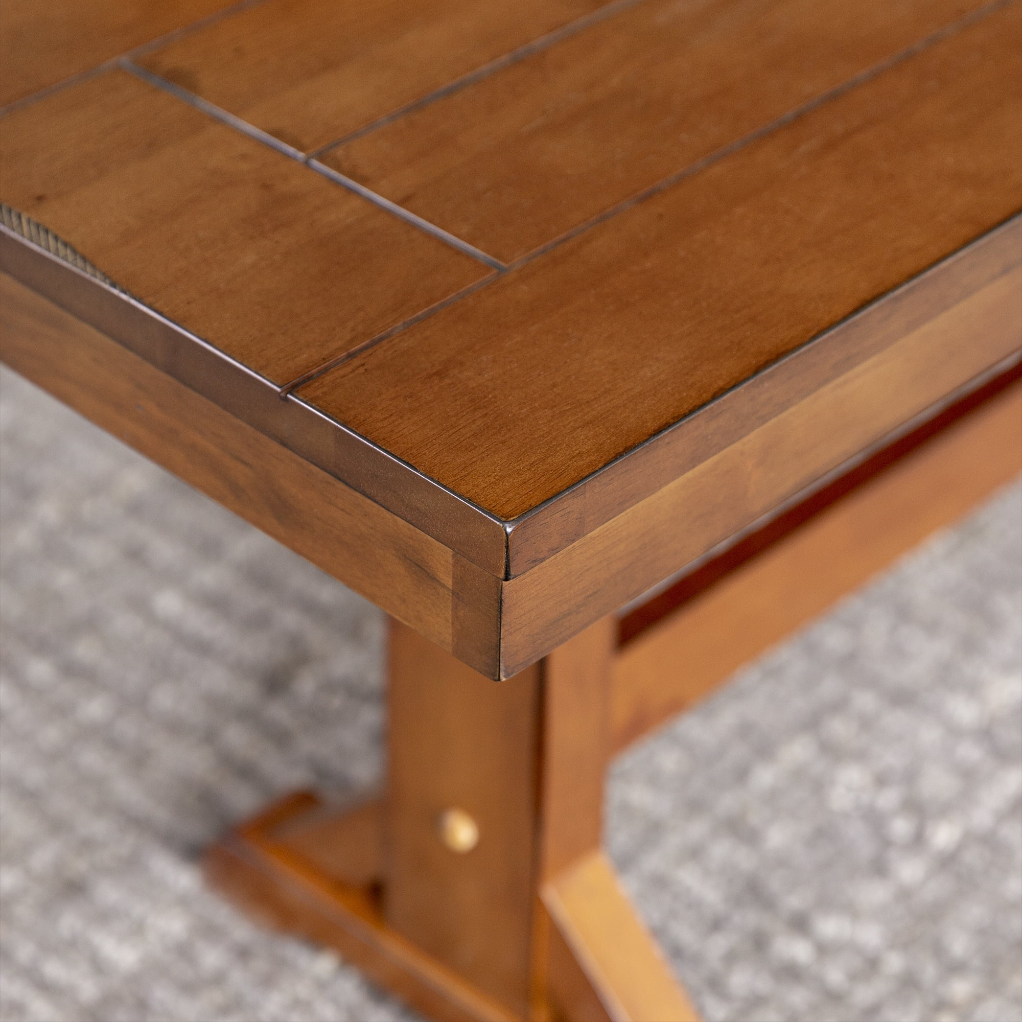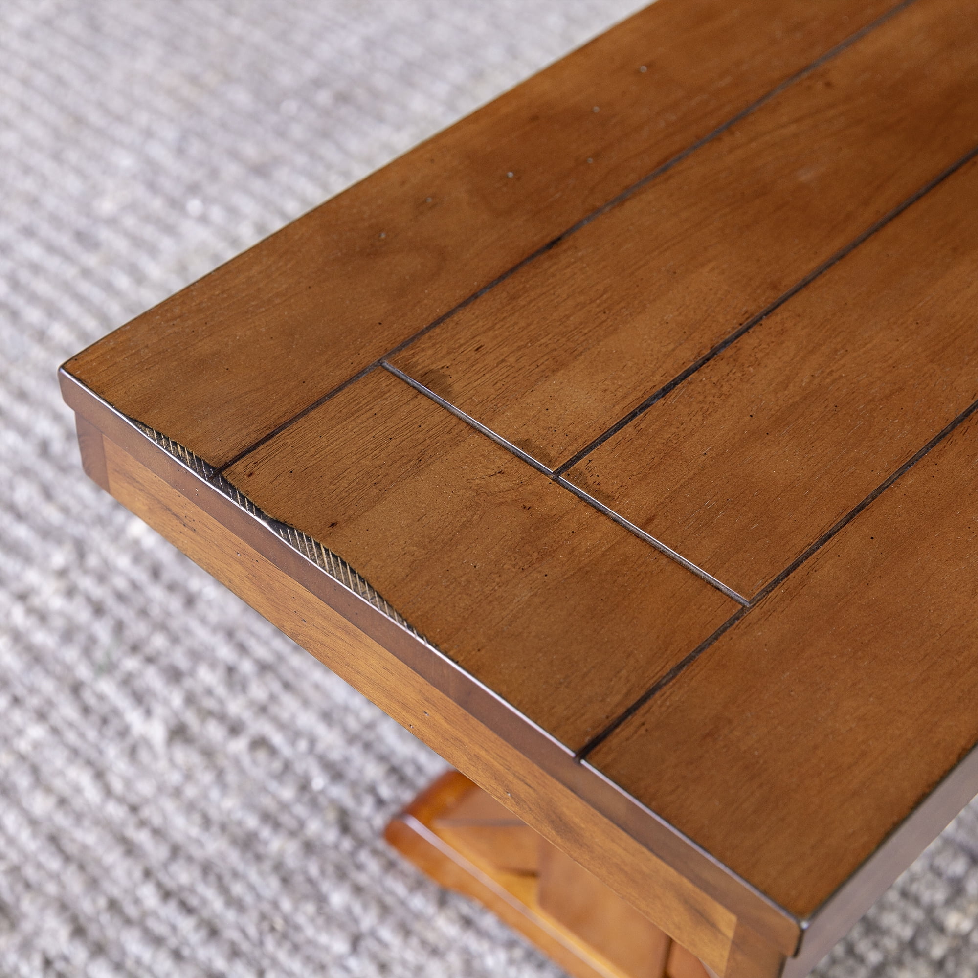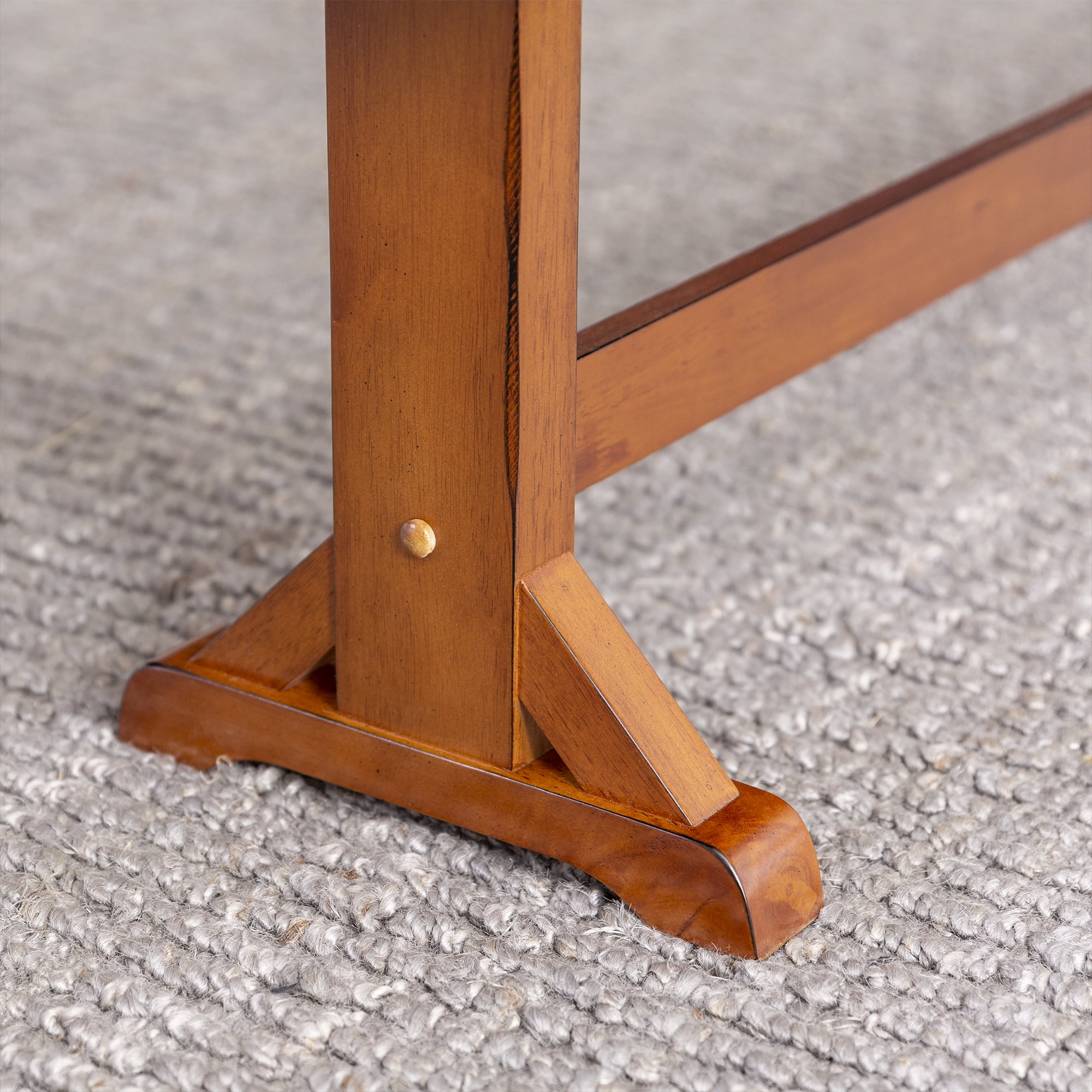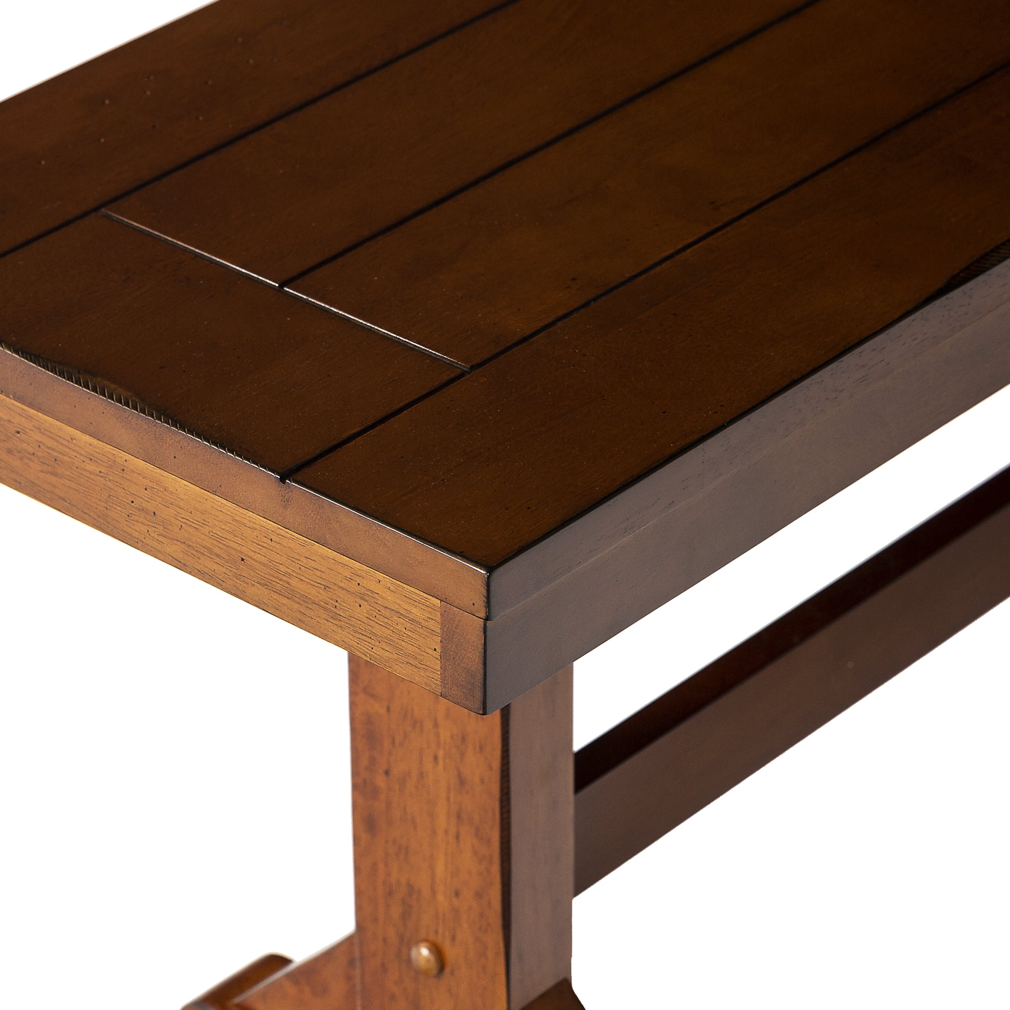 Grace your traditional dining room set up with this rectangle bench by Walker Edison. Trestle style legs and a planked top provide a versatility that allows this bench to fit in with any home decor. Pull this dining bench up to your kitchen table during every family gathering to create more space for everyone to sit comfortably. Made from high-grade MDF topped with solid wood veneers, this transitional bench is built to help you make memories with friends and family with its durable construction. This piece can also be used as an entryway bench for a quick stop to pull off your shoes as soon as you walk in the door after a long day at work.