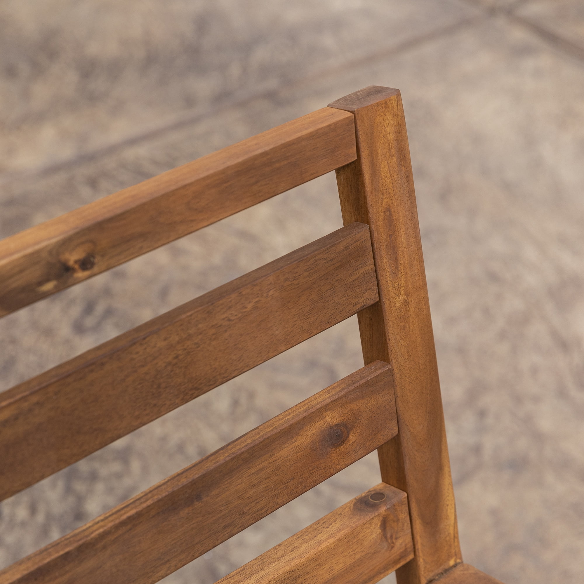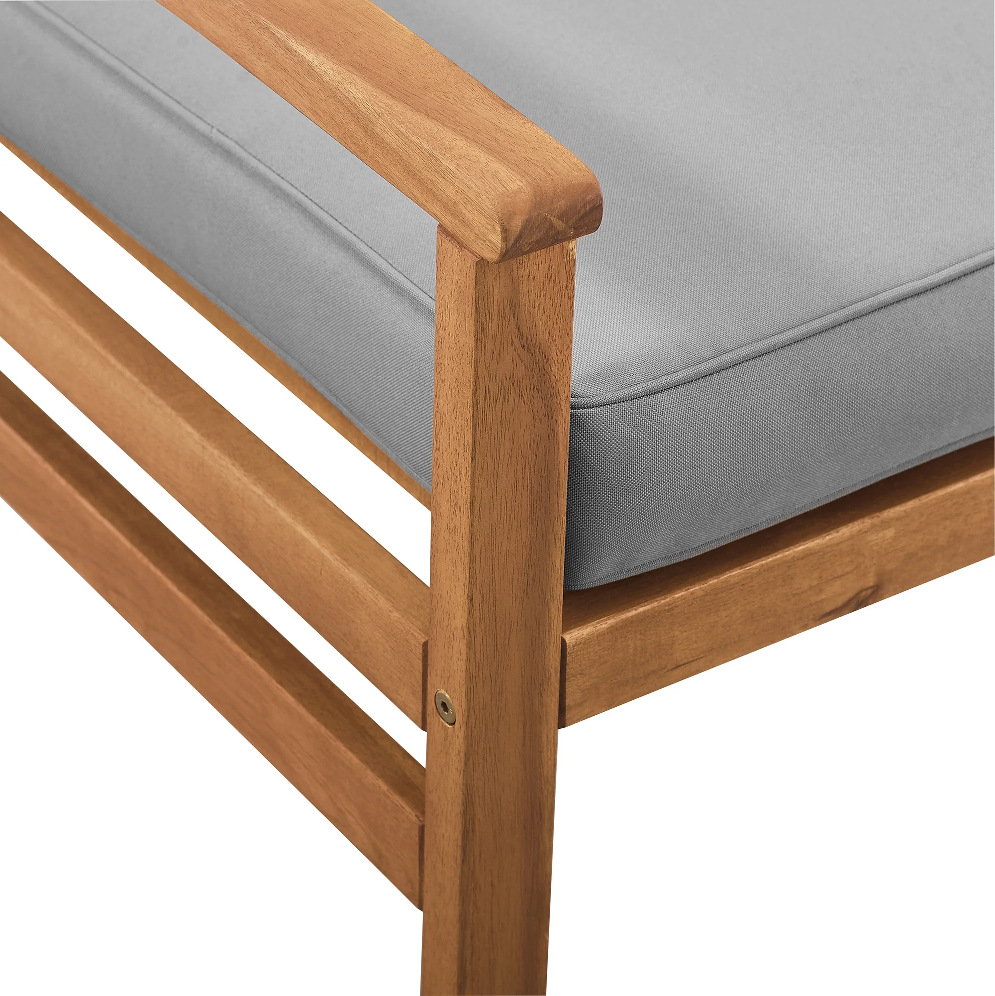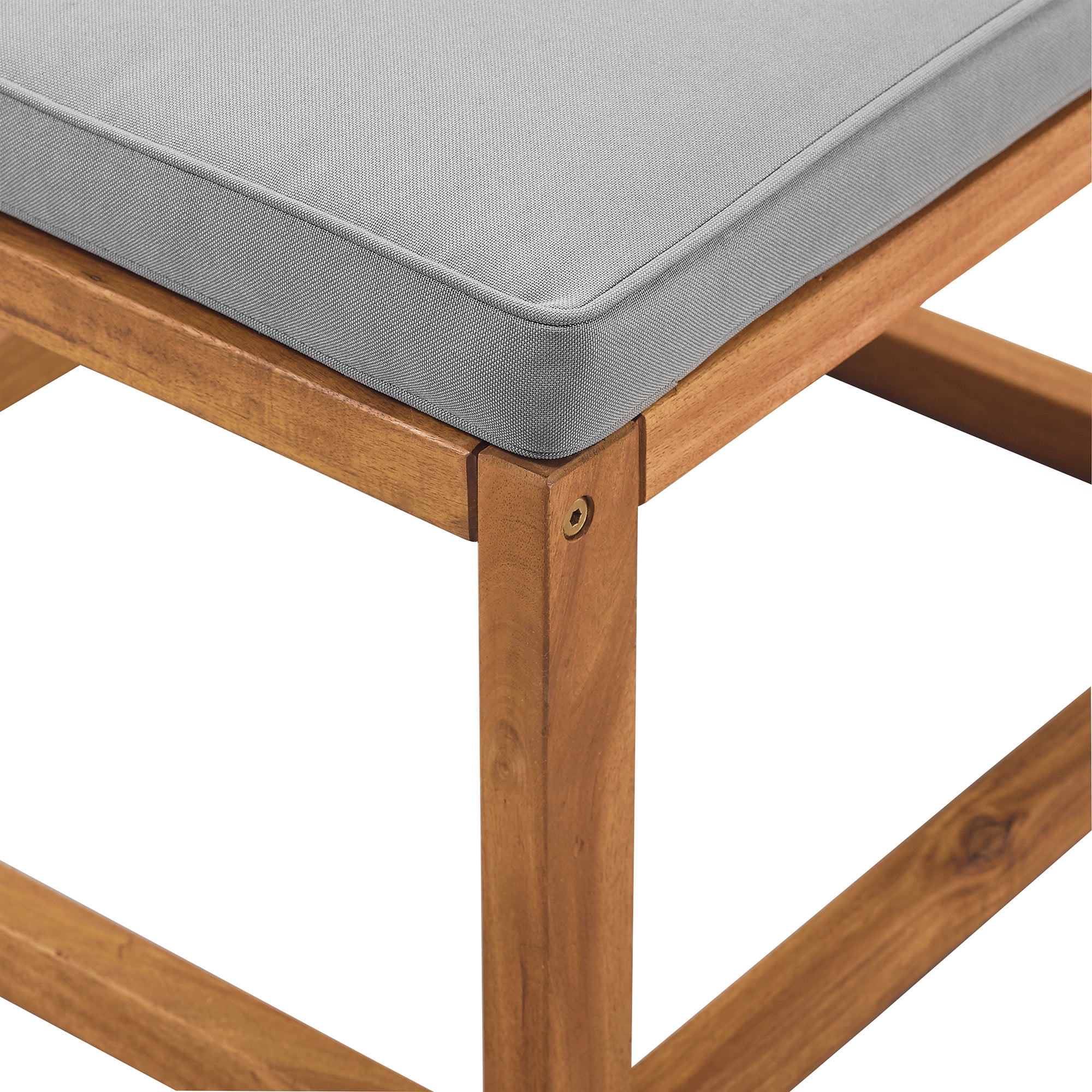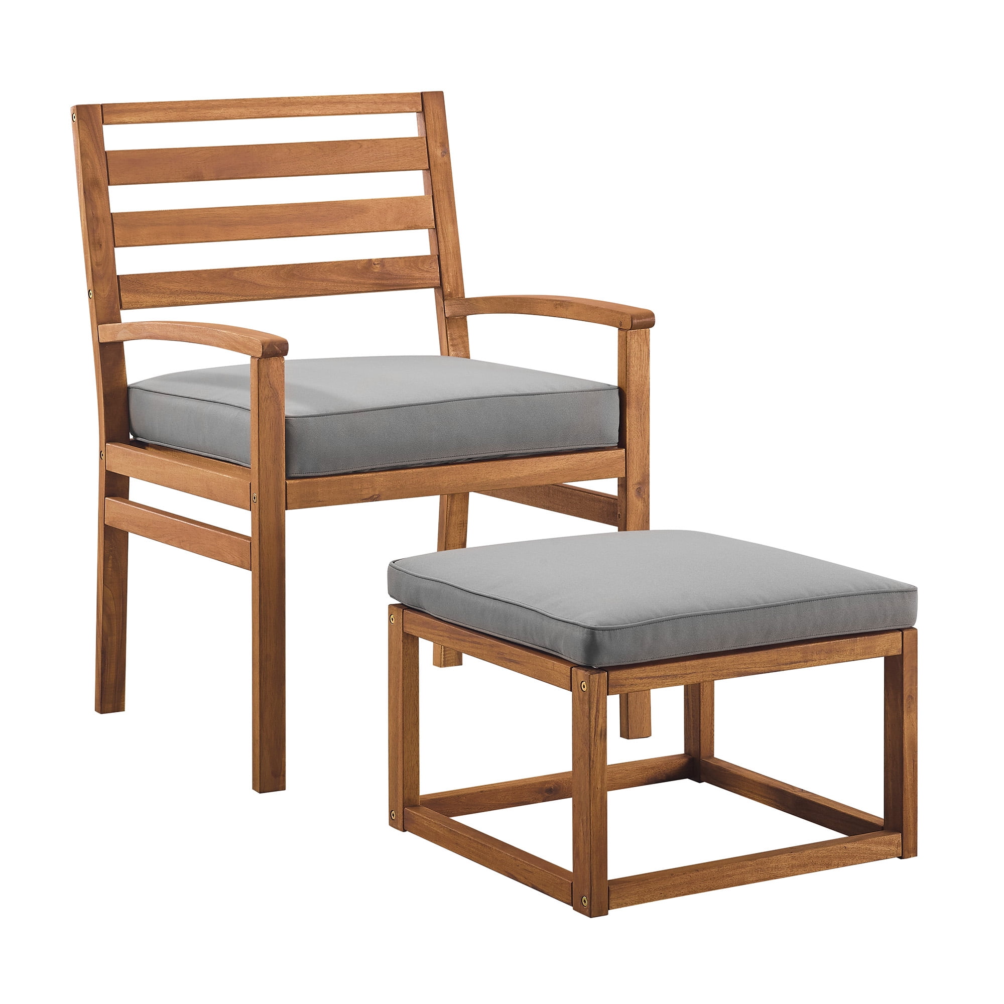 Walker Edison Acacia Wood Outdoor Patio Chair & Pull Out Ottoman – Brown/Grey